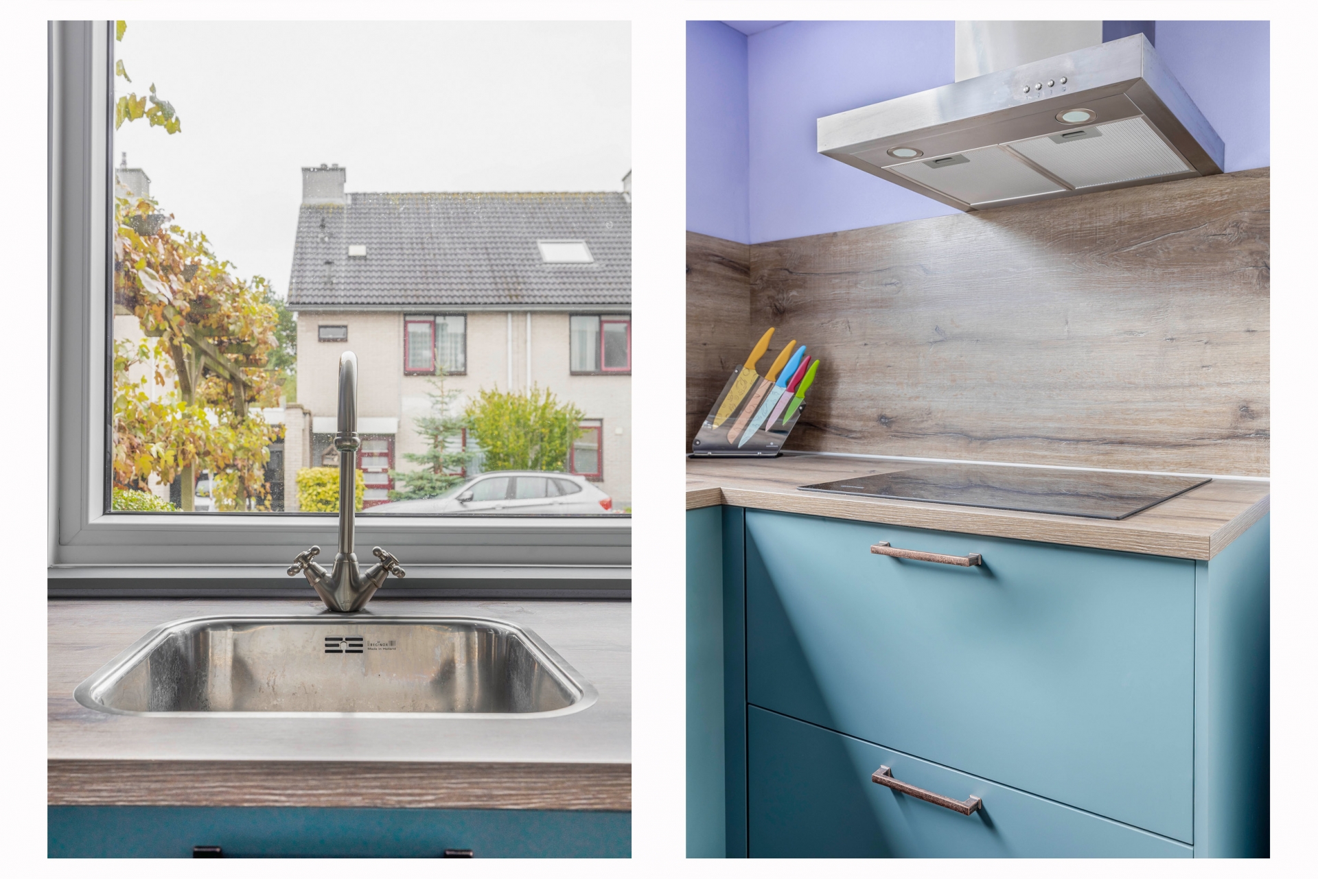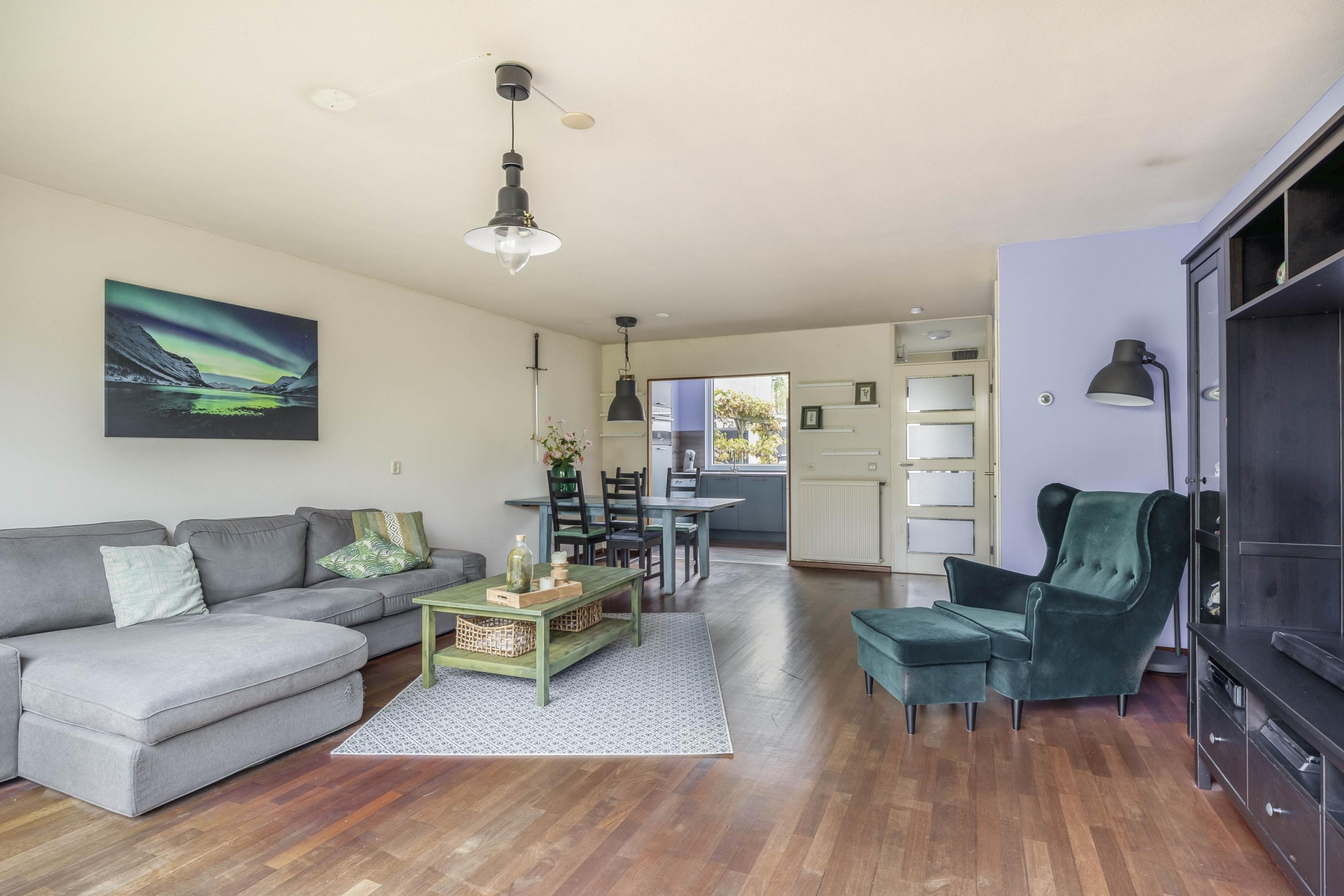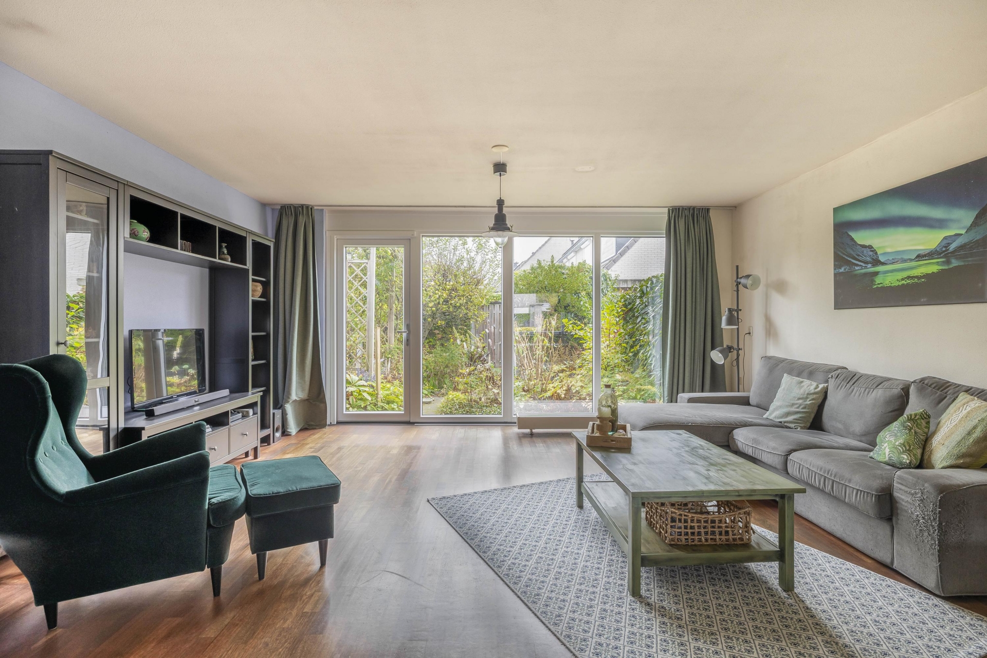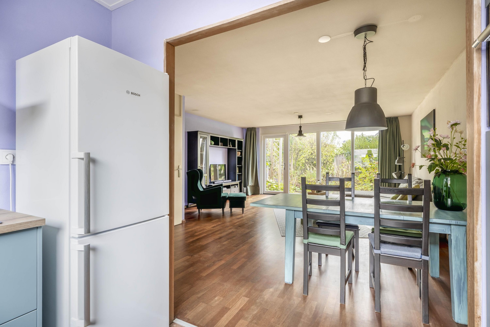 De benedenverdieping biedt een lichte en open woonkamer met grote raampartijen en een fijne verbinding met de tuin. De moderne keuken uit 2019 ligt aan de voorzijde van het huis en is voorzien van alle gemakken. Denk aan een strak werkblad, inbouwapparatuur en slimme opbergruimte – koken is hier gewoon een plezier.