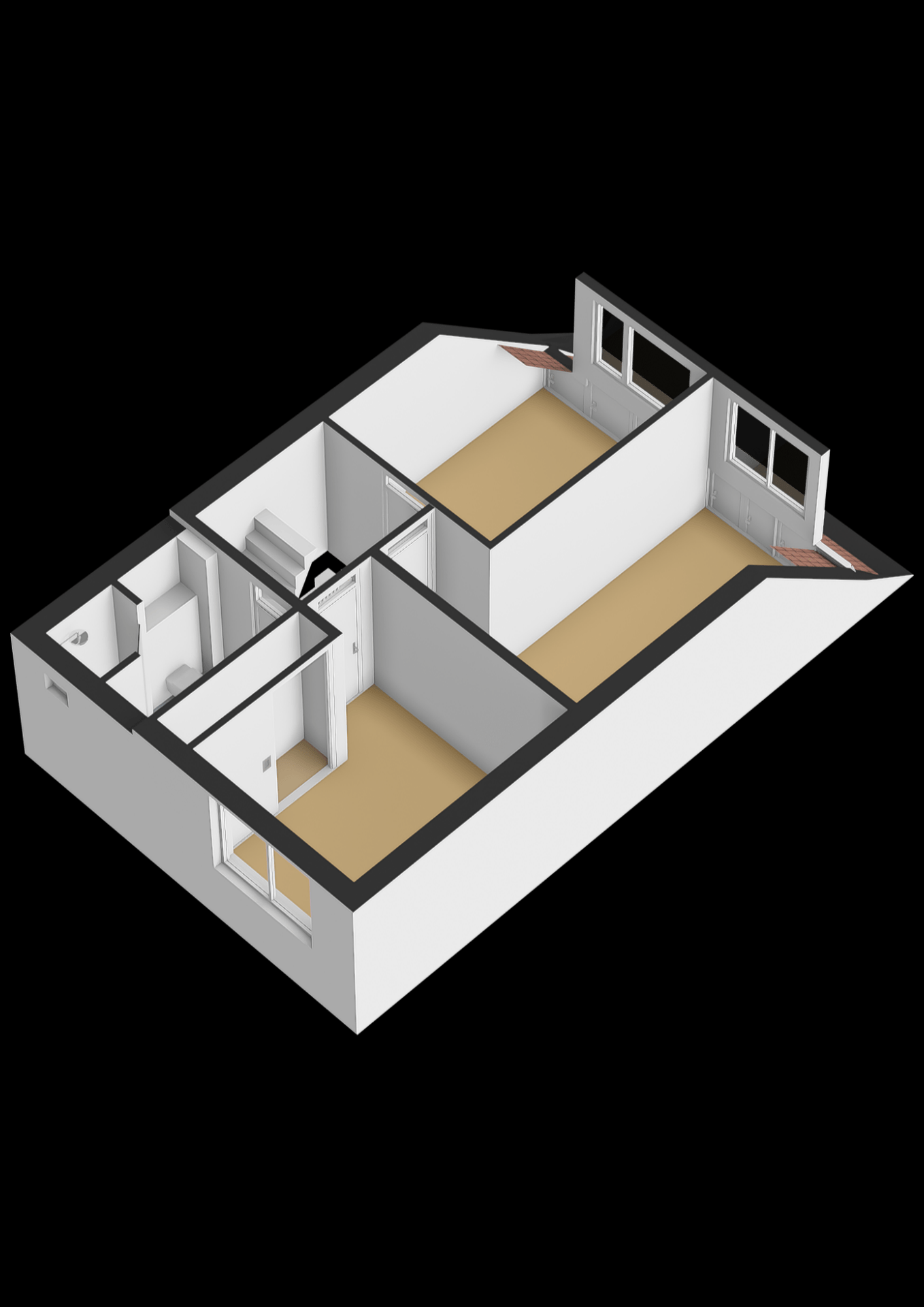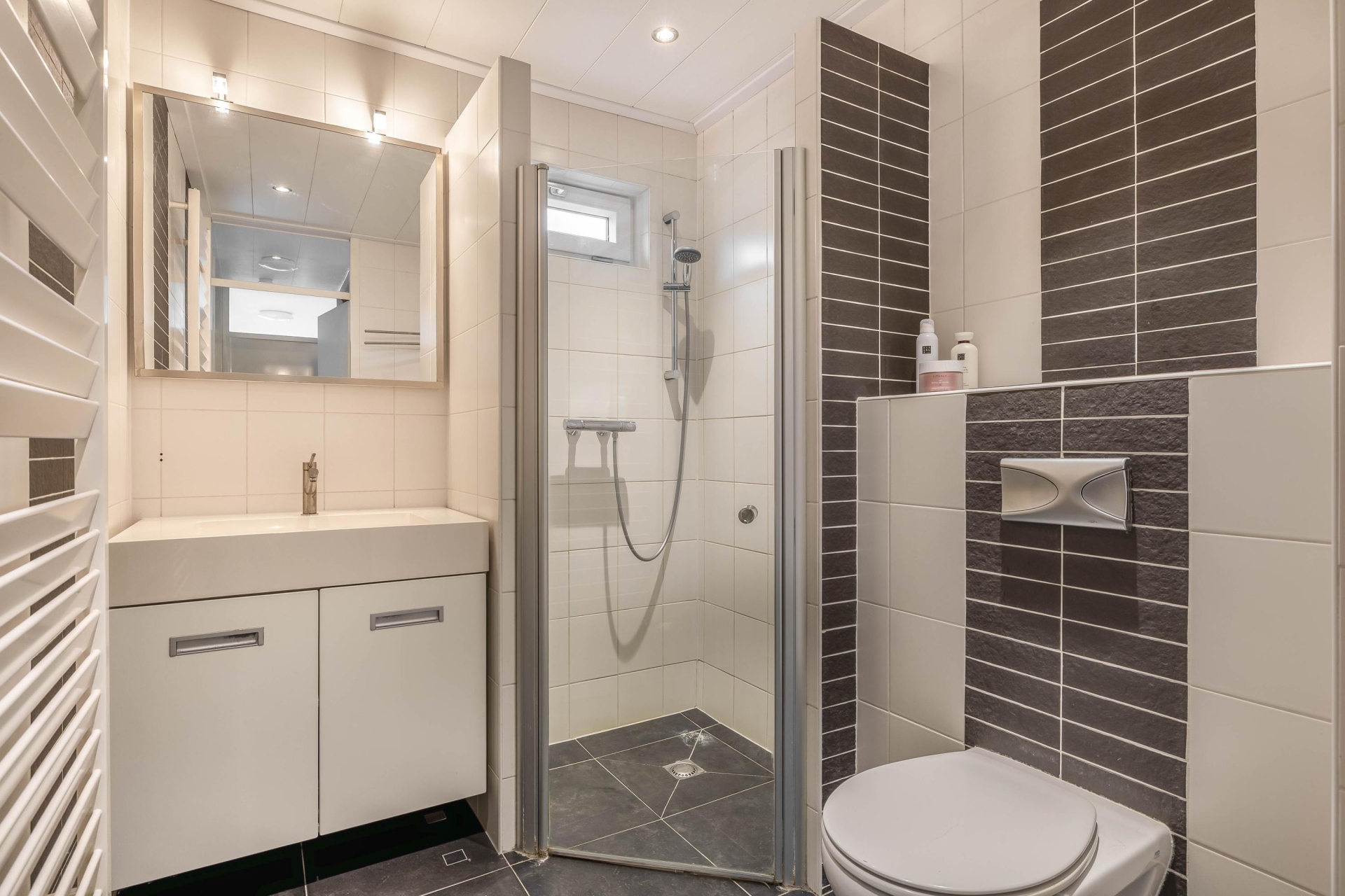 Op de eerste verdieping bevinden zich drie slaapkamers en de badkamer. De kamers zijn netjes afgewerkt en door de kunststof kozijnen met dubbel glas is het overal aangenaam. De badkamer is compact maar slim ingedeeld, met een inloopdouche, modern wastafelmeubel en wandcloset.