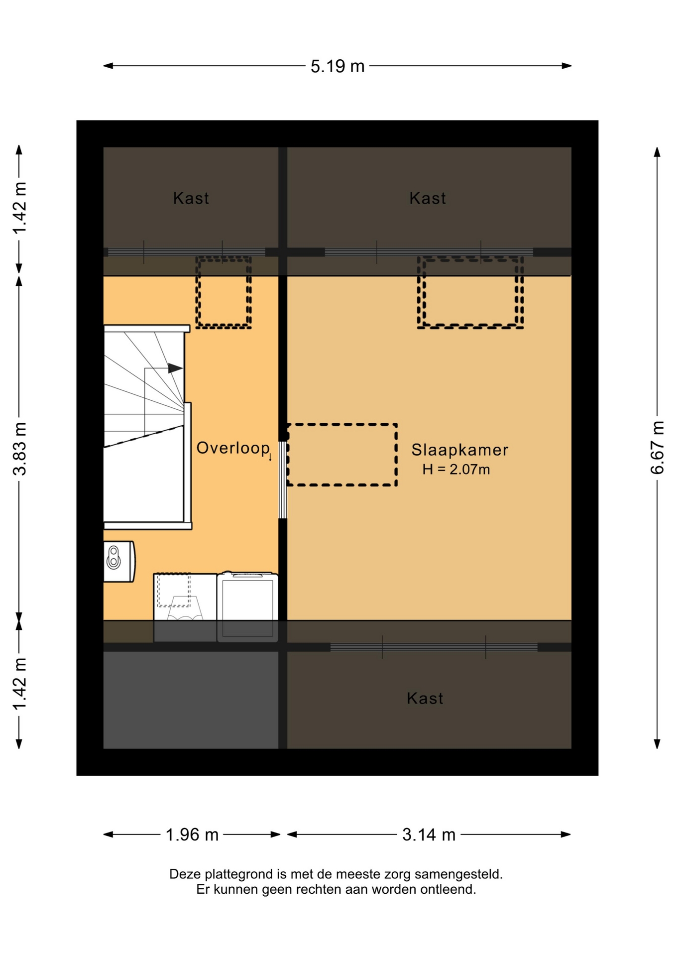 “Deze informatie is door ons met de nodige zorgvuldigheid samengesteld. Onzerzijds wordt echter geen enkele aansprakelijkheid aanvaard voor enige onvolledigheid, onjuistheid of anderszins, dan wel de gevolgen daarvan. Alle opgegeven maten en oppervlakten zijn indicatief.”