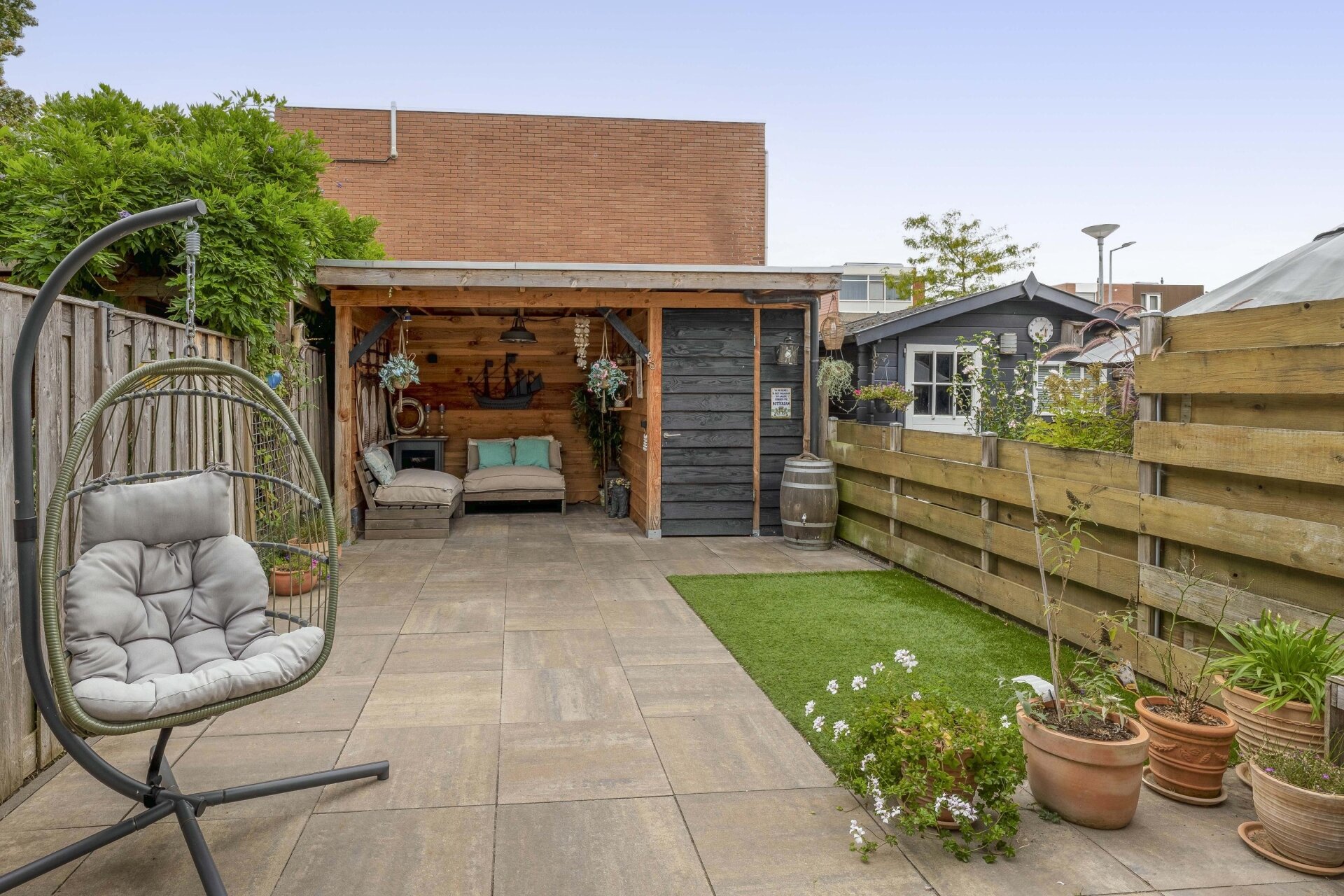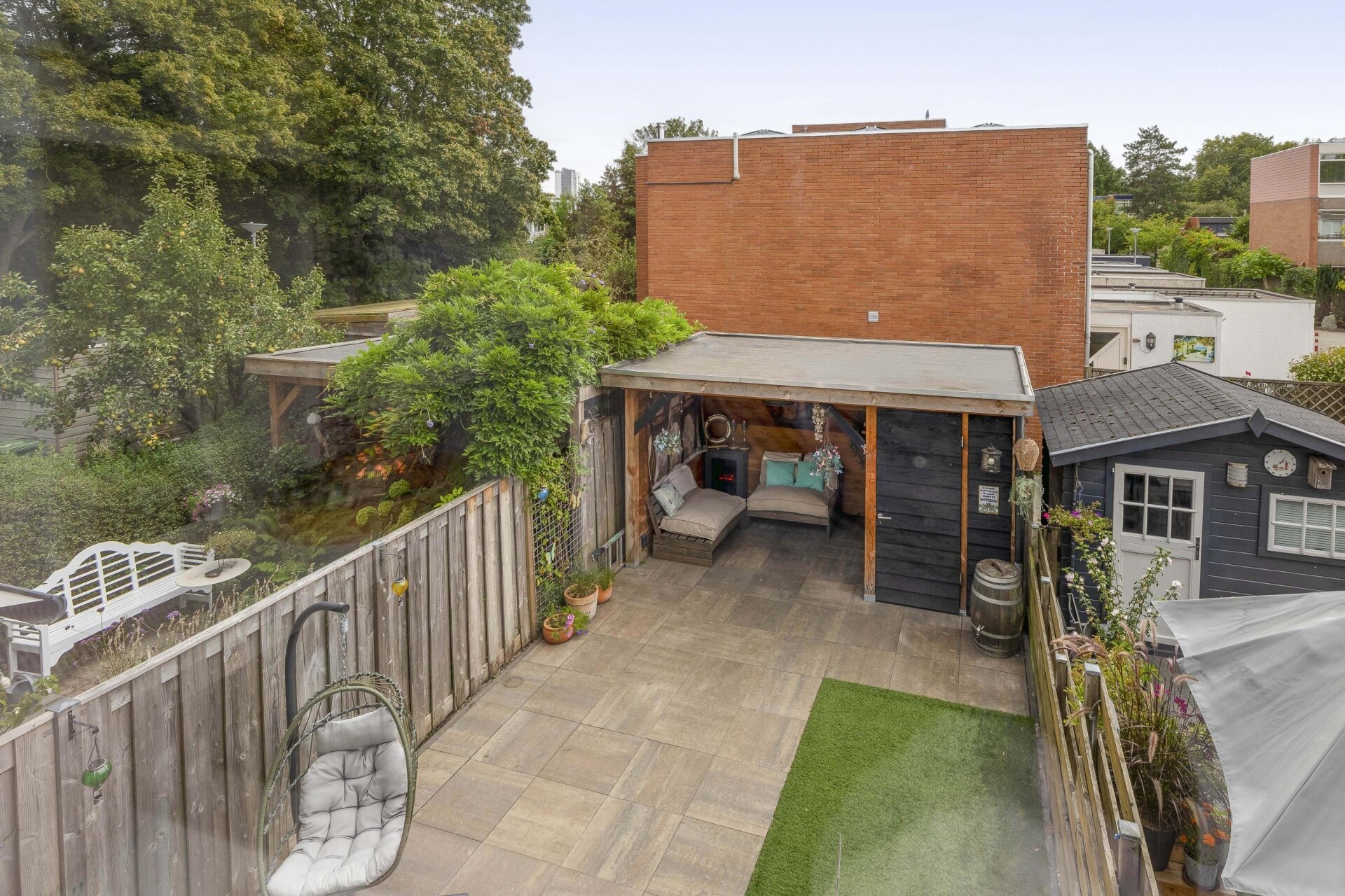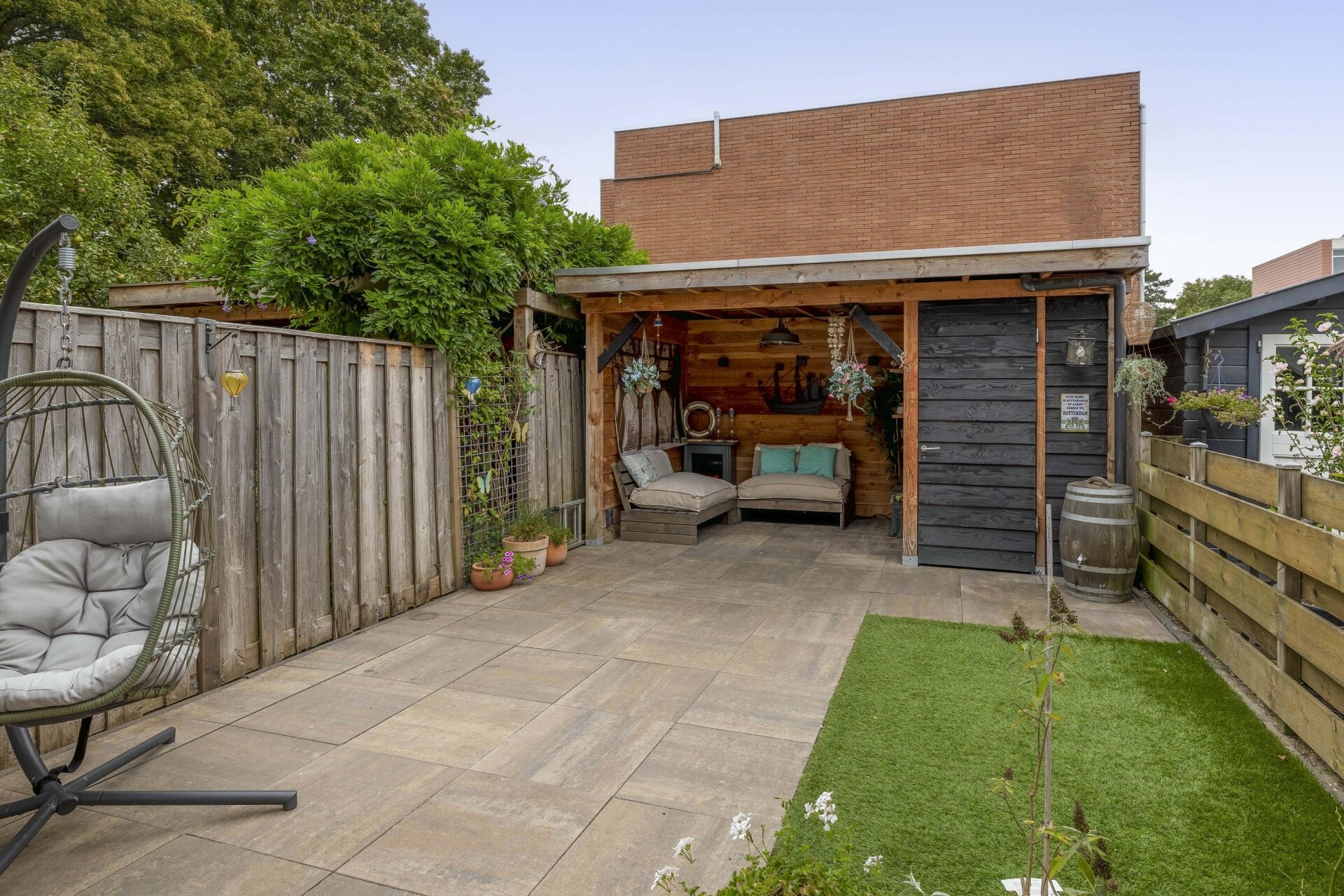 - Ruime achtertuin met een sfeervolle overkapping gelegen op het zuiden;
