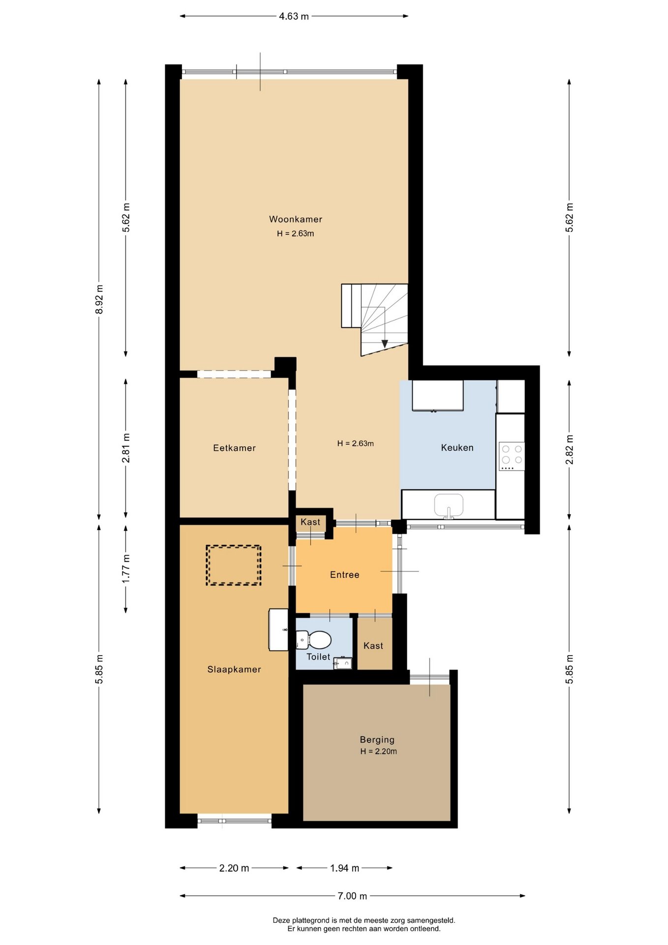 “Deze informatie is door ons met de nodige zorgvuldigheid samengesteld. Onzerzijds wordt echter geen enkele aansprakelijkheid aanvaard voor enige onvolledigheid, onjuistheid of anderszins, dan wel de gevolgen daarvan. Alle opgegeven maten en oppervlakten zijn indicatief.”
