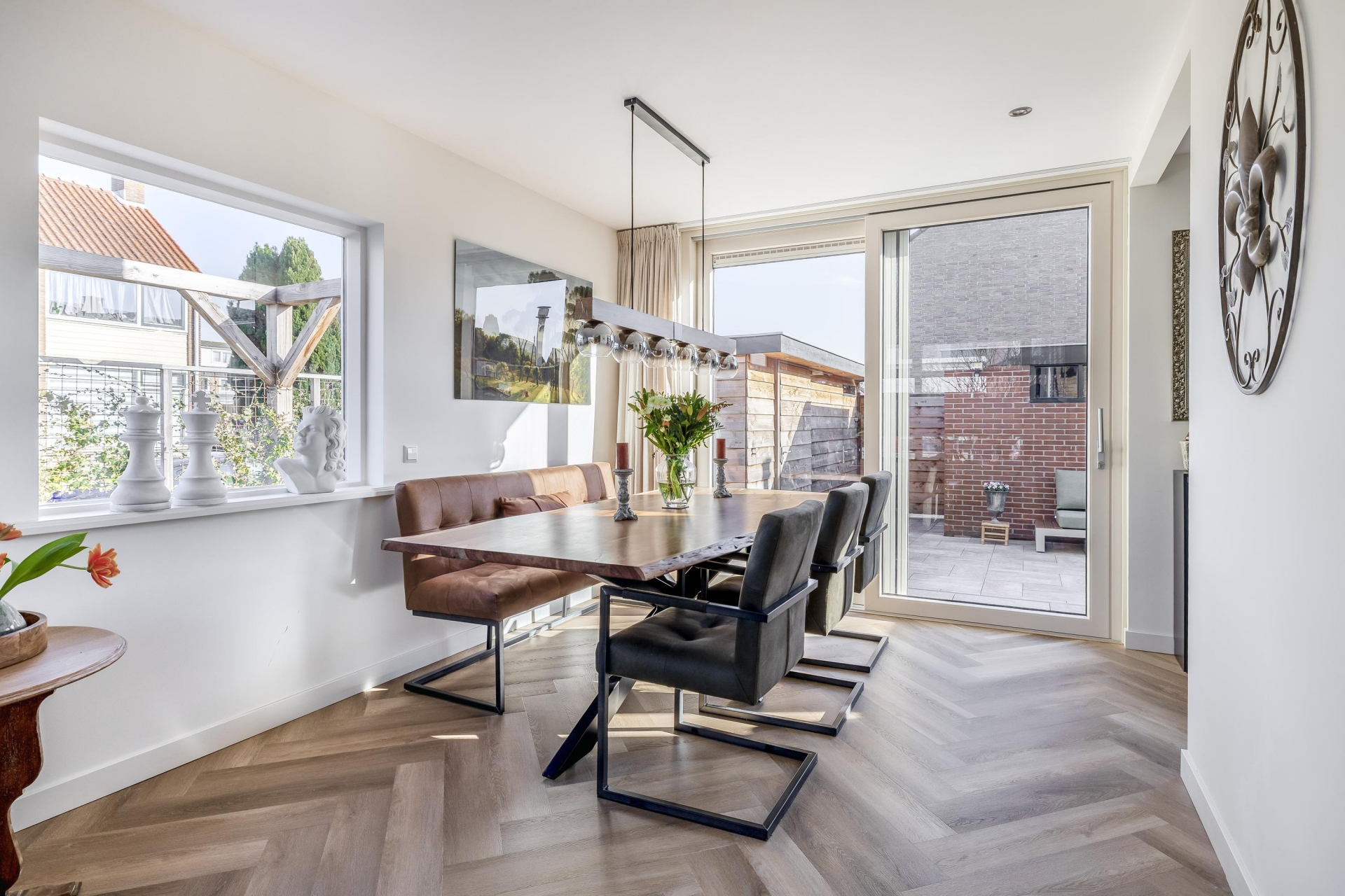 De afwerking is modern en neutraal, waardoor verschillende woonstijlen hier goed tot hun recht komen. Vanuit de woonkamer heb je een fijne verbinding met de keuken. Hierdoor blijven koken, eten en wonen mooi met elkaar verbonden, wat het dagelijks gebruik extra comfortabel maakt.