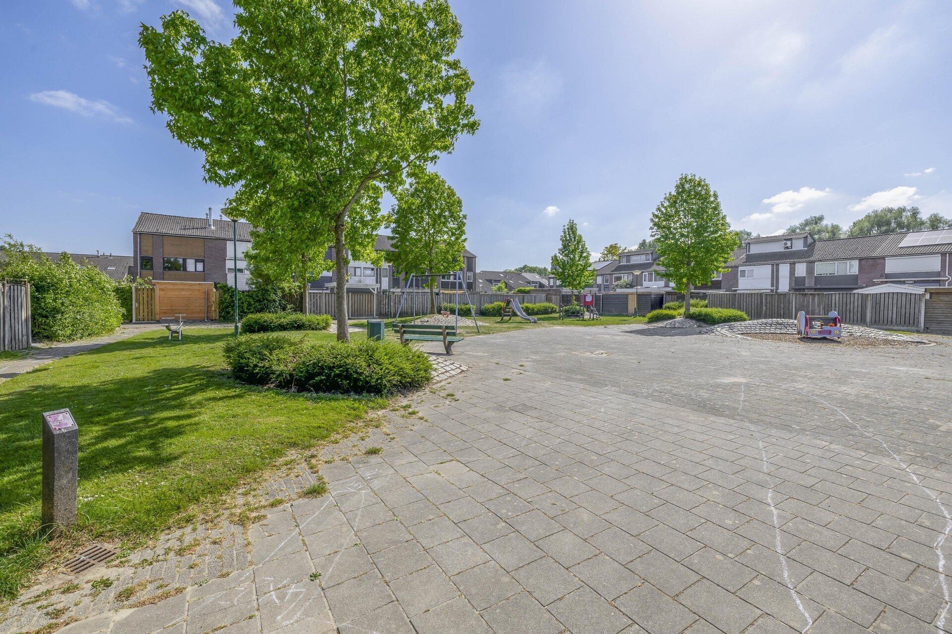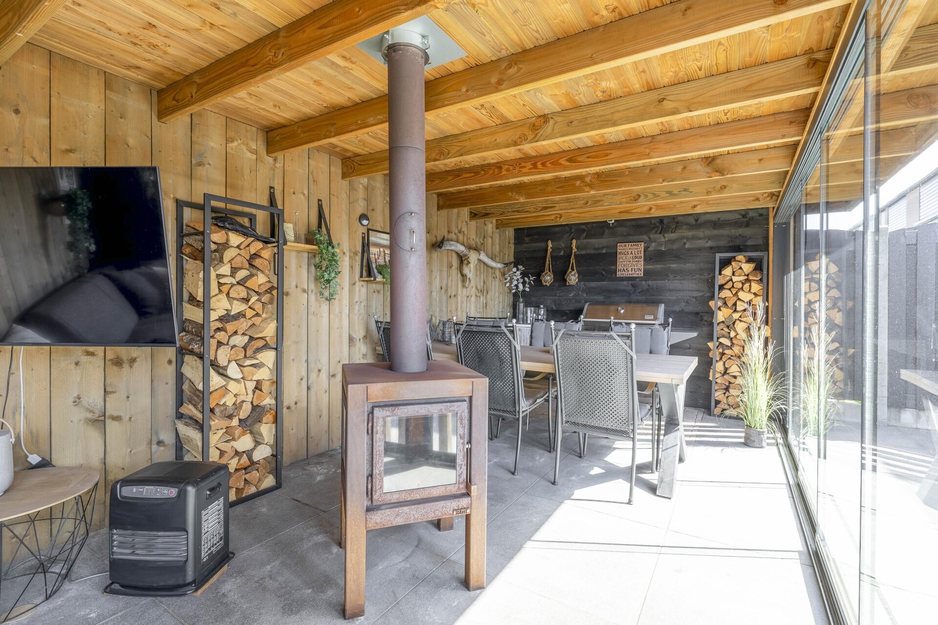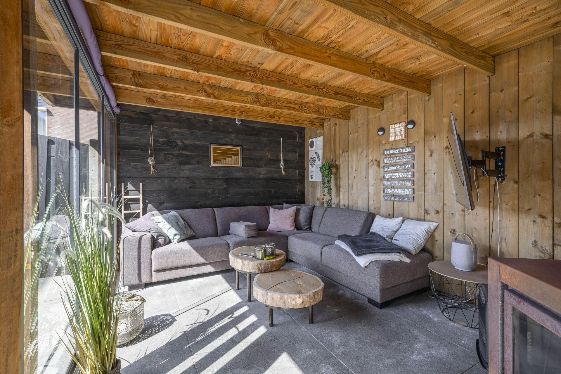 Wat direct opvalt is de ligging op de hoek, waardoor je niet alleen meer privacy hebt, maar ook profiteert van een tuin aan drie zijden: voor, zij en achter. Hierdoor heb je op elk moment van de dag wel een plek in de zon of juist schaduw. In de achtertuin is een ruime, strak afgewerkte overkapping geplaatst – perfect voor lange zomeravonden, een loungehoek of zelfs als beschutte speelplek voor de kinderen. De tuin is netjes aangelegd en biedt volop ruimte voor ontspanning. Praktisch is het ook: je parkeert je auto gewoon op je eigen oprit.