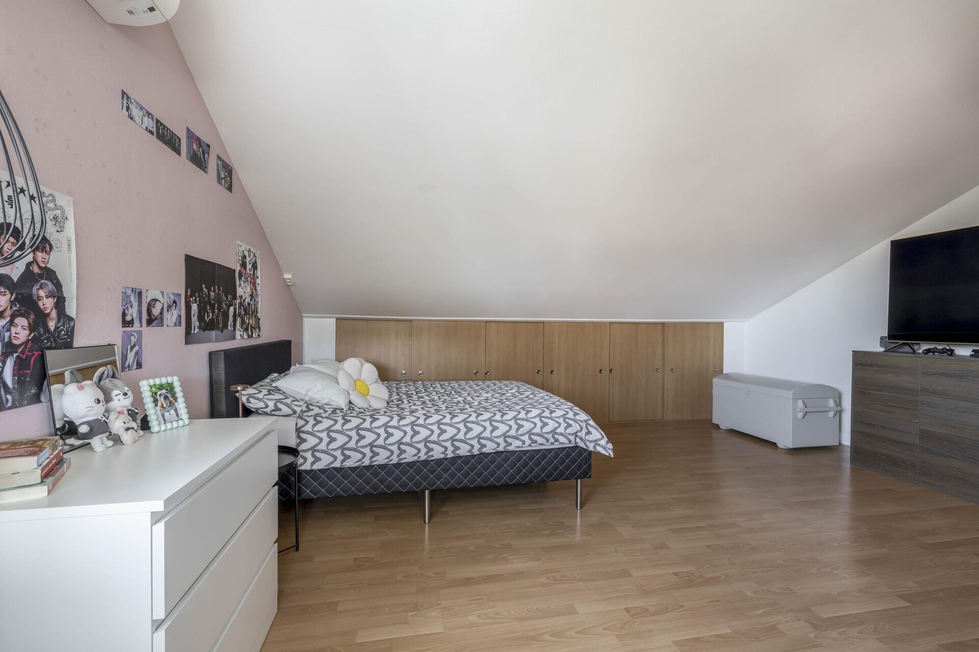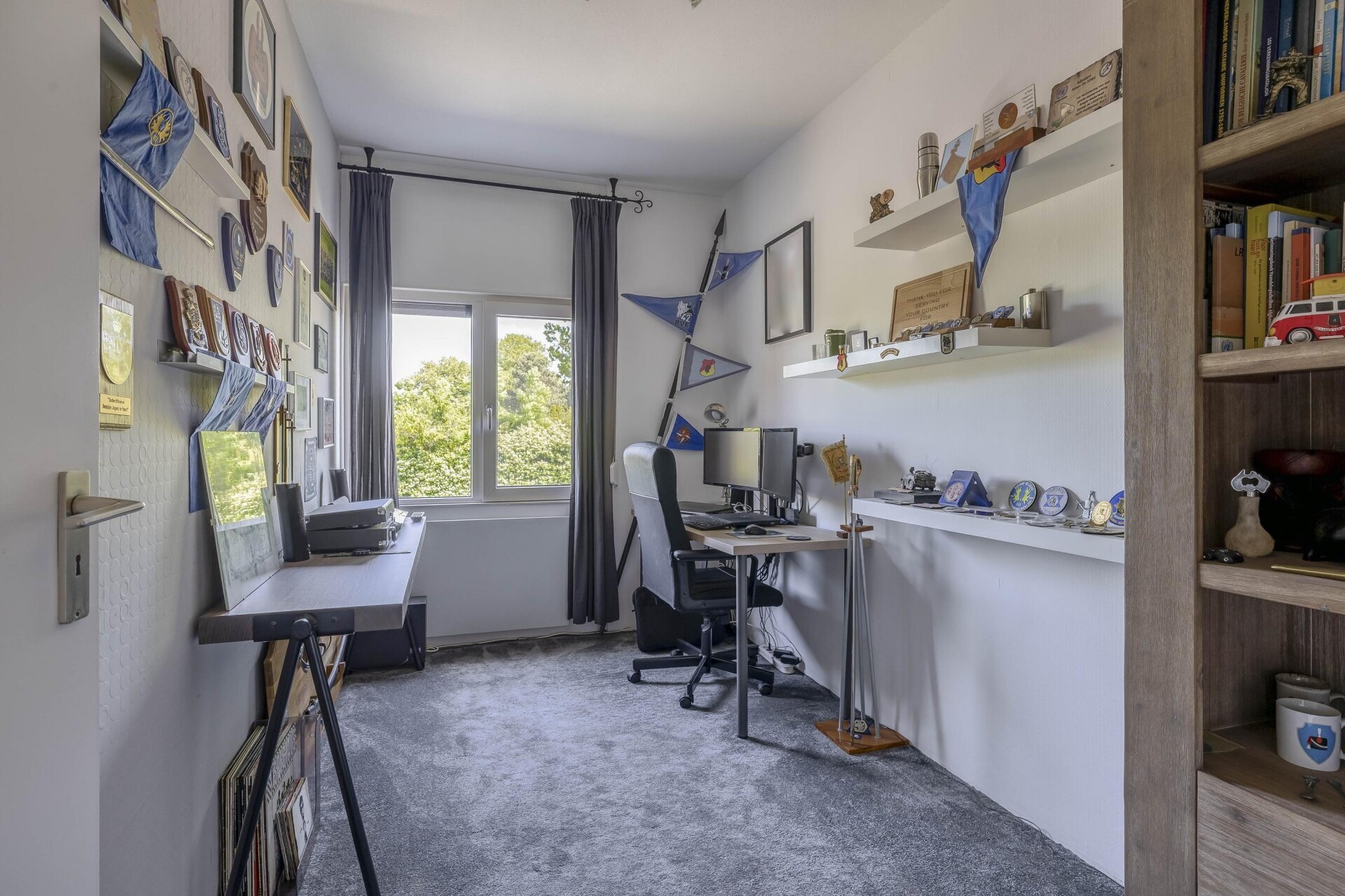 Met vier slaapkamers verdeeld over de eerste en tweede verdieping is dit huis uitermate geschikt voor een gezin. Op de eerste verdieping bevinden zich drie slaapkamers die ook prima dienst kunnen doen als werk- of studeerkamer. De grootste slaapkamer bevindt zich op de tweede verdieping en beslaat bijna de volledige etage. Deze ruimte is nu in gebruik als master bedroom, maar is groot genoeg om eenvoudig op te splitsen in twee volwaardige slaapkamers. Daarmee creëer je in totaal vijf slaapkamers – ideaal voor grotere gezinnen of wie graag extra werk- of hobbyruimte heeft. De badkamer is netjes en praktisch ingedeeld.