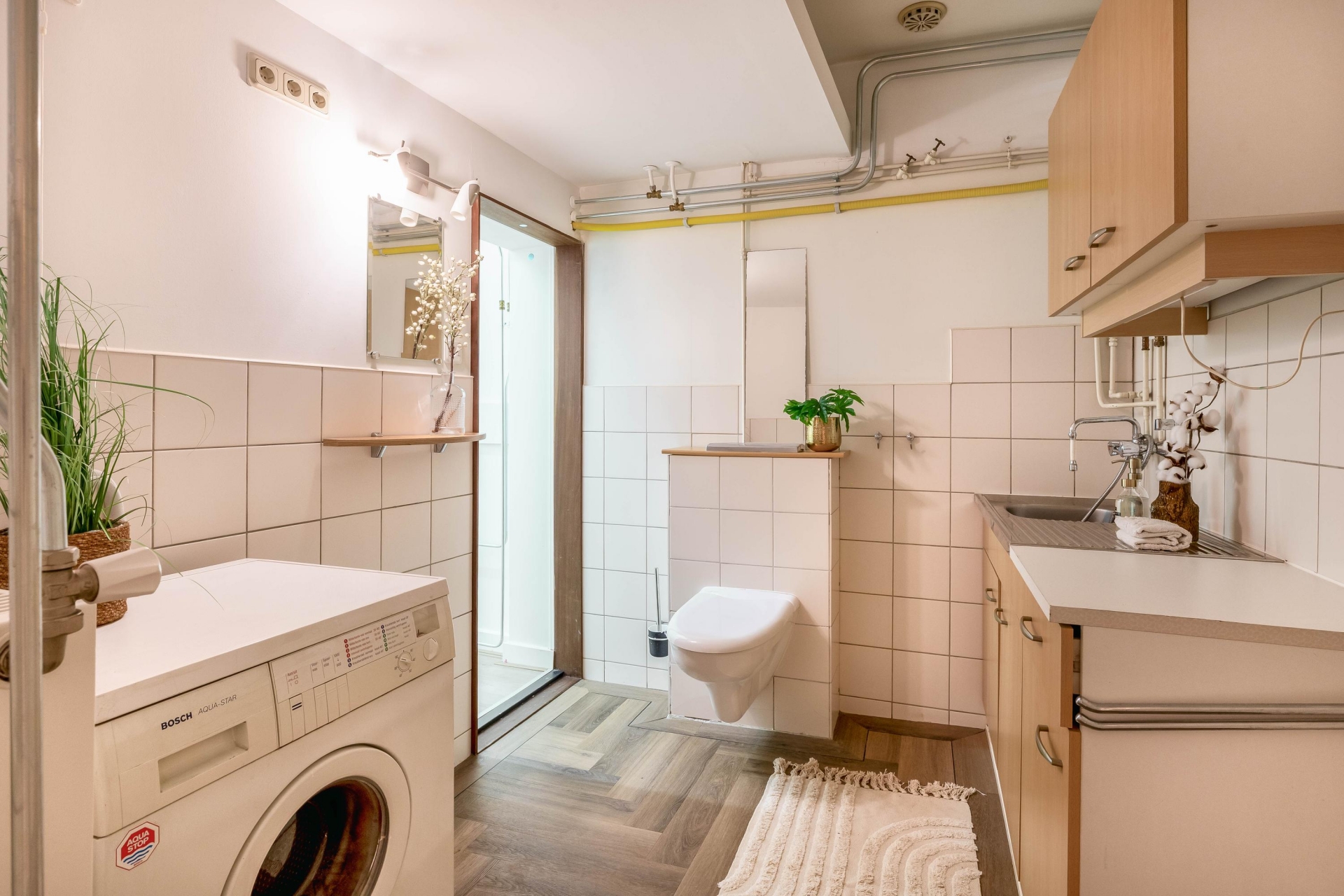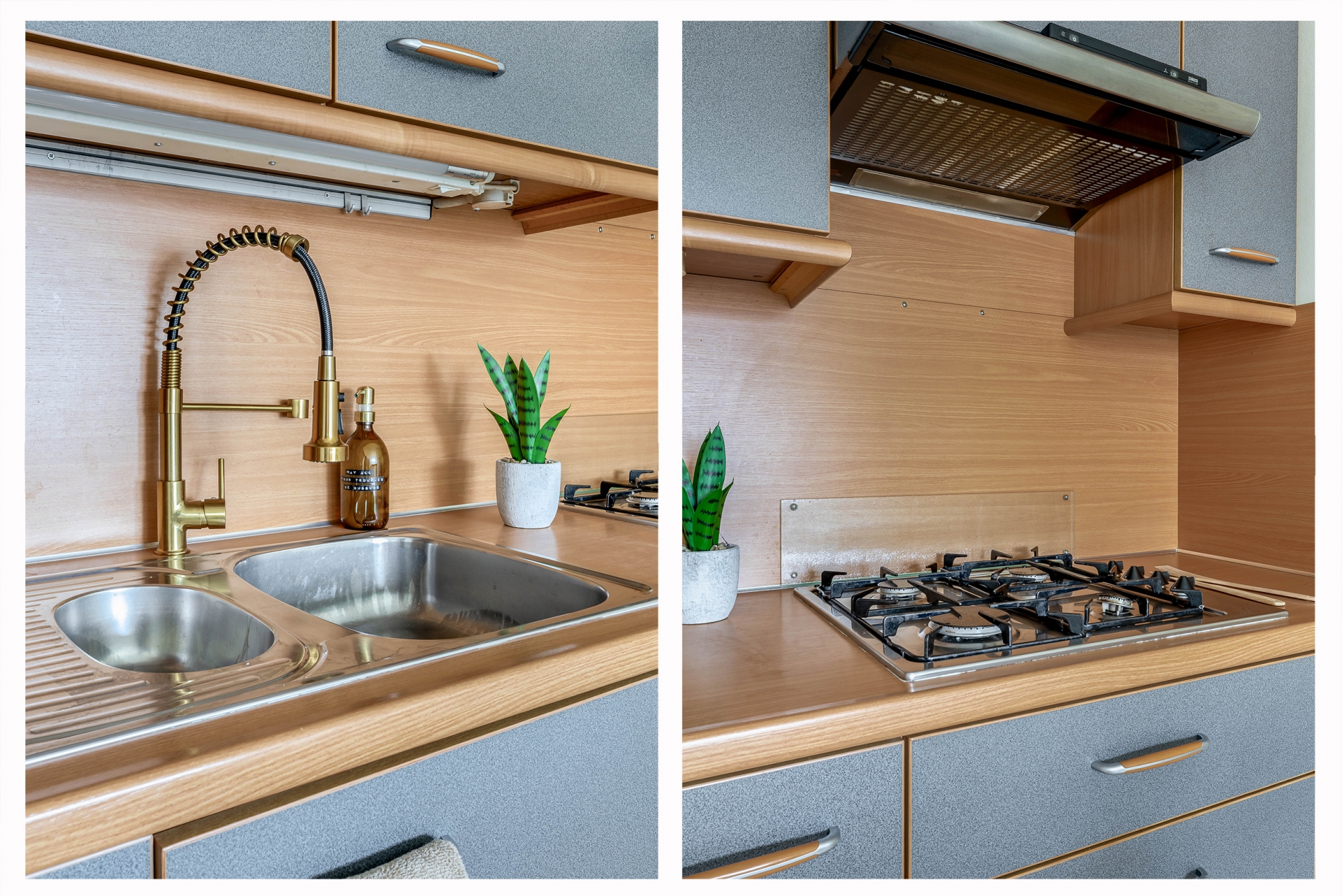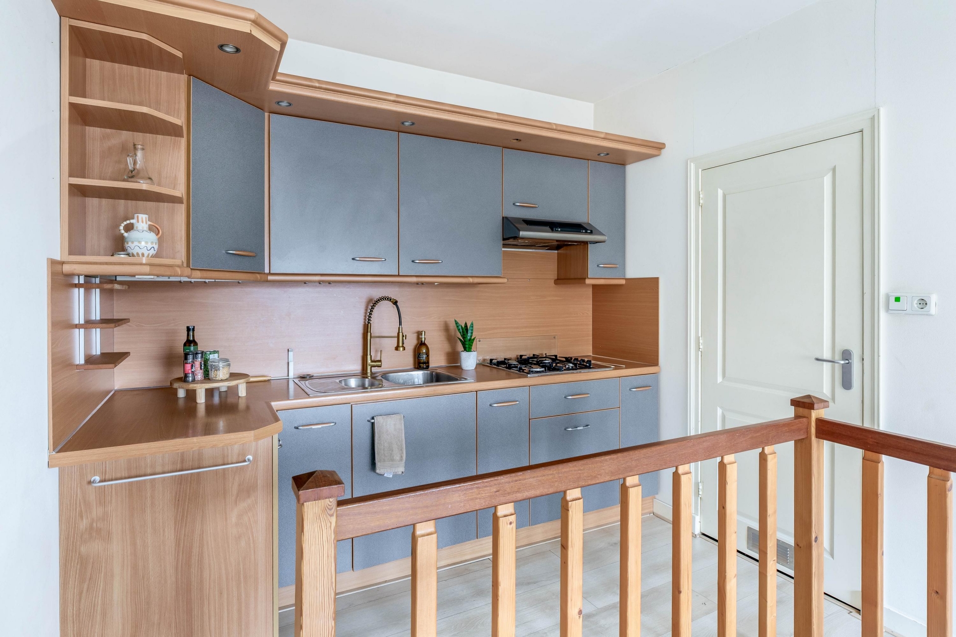 De eerste verdieping is verrassend ingedeeld en ademt sfeer. De ruime overloop biedt toegang tot een tweede keuken, voorzien van een 4-pits gaskookplaat en volop ruimte om gezellig te koken. Vanuit hier stap je zo het terras op, gelegen op het noordoosten. Perfect voor een ontbijtje in de ochtendzon of een momentje voor jezelf later op de dag.