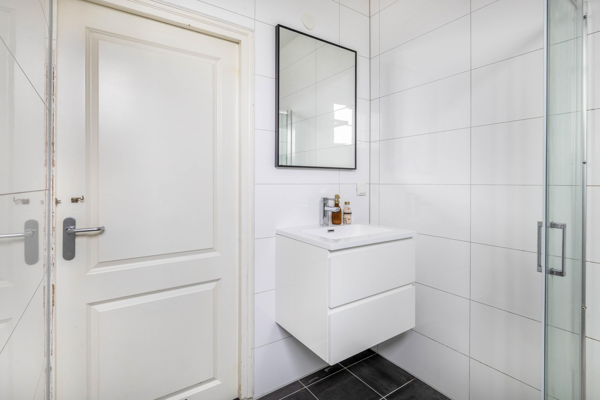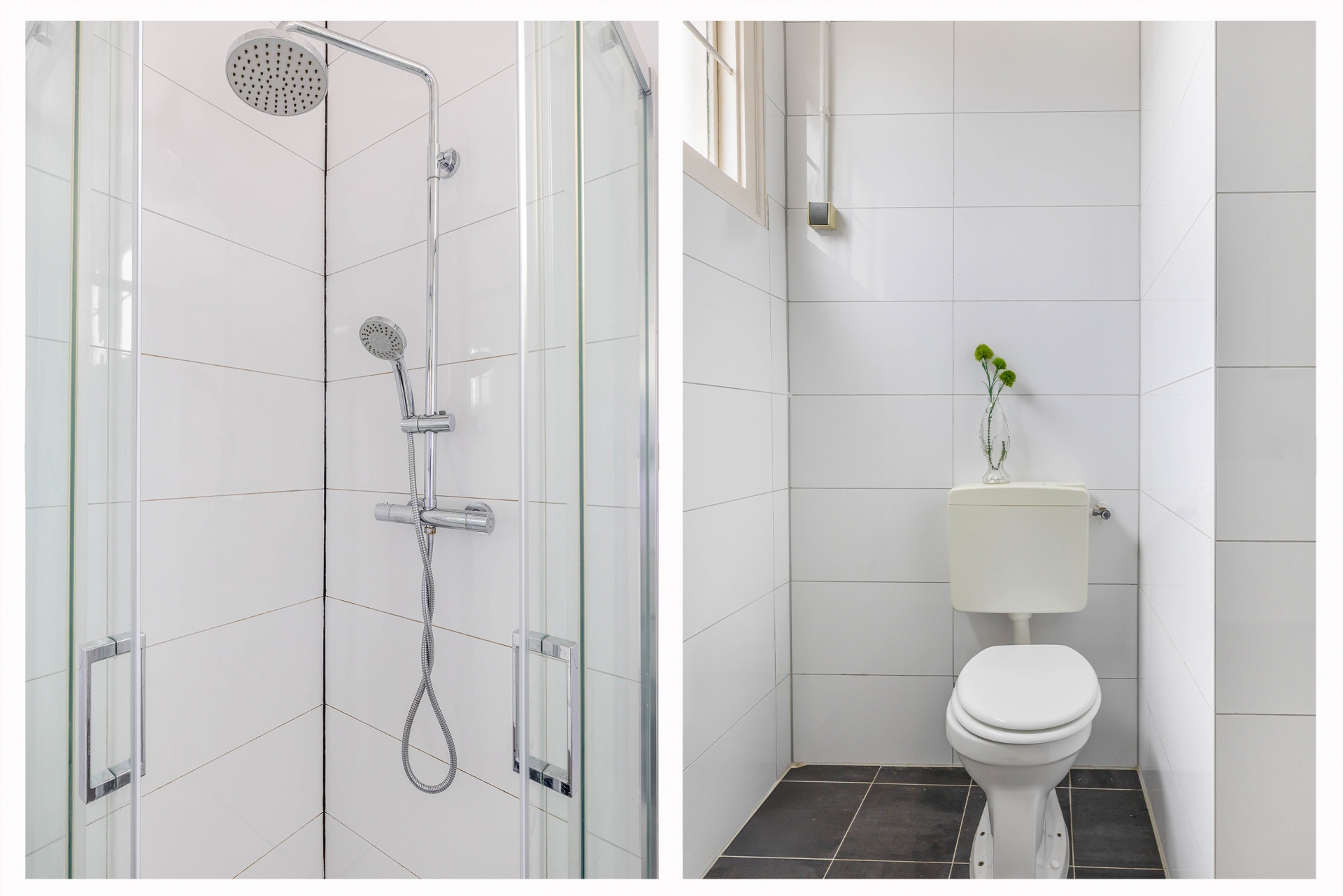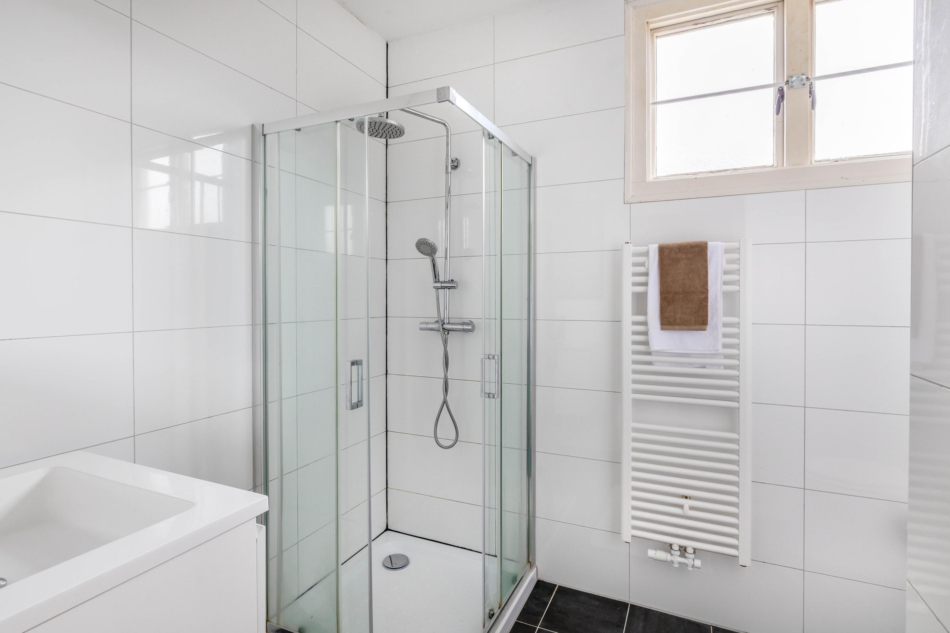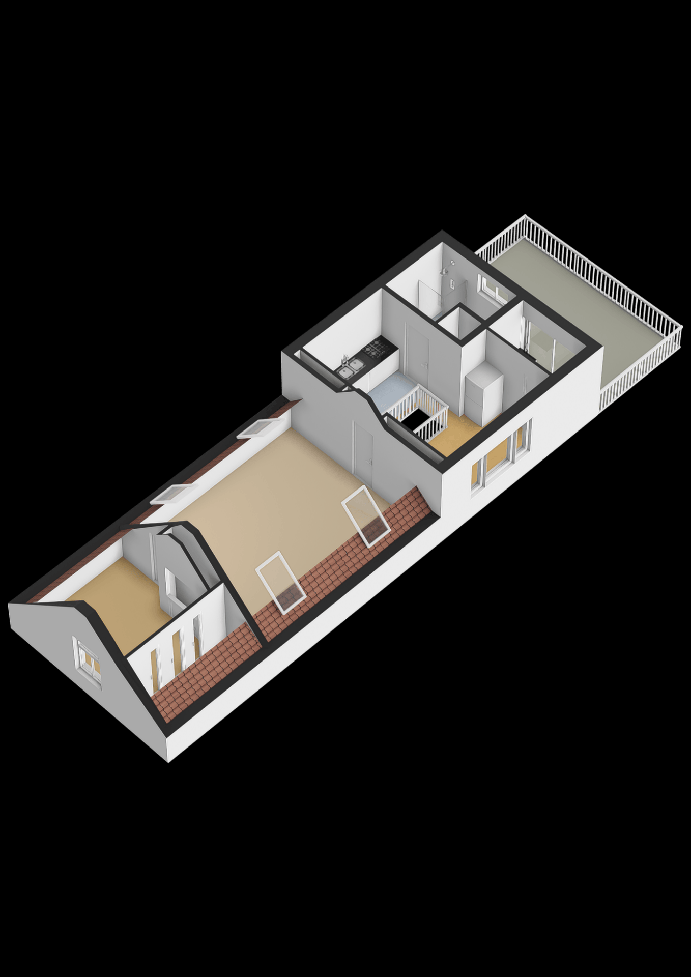 Aan deze verdieping grenst ook de badkamer, voorzien van een toilet, badkamermeubel en douchecabine. De afwerking met houten kozijnen en enkel glas geeft de ruimte een authentiek tintje. In de woonkamer op deze verdieping zorgen vier dakramen voor volop licht en sfeer. Aan de achterzijde vind je een royale slaapkamer met grote inbouwkast, ideaal als master bedroom. De gehele verdieping is afgewerkt met laminaatstroken.