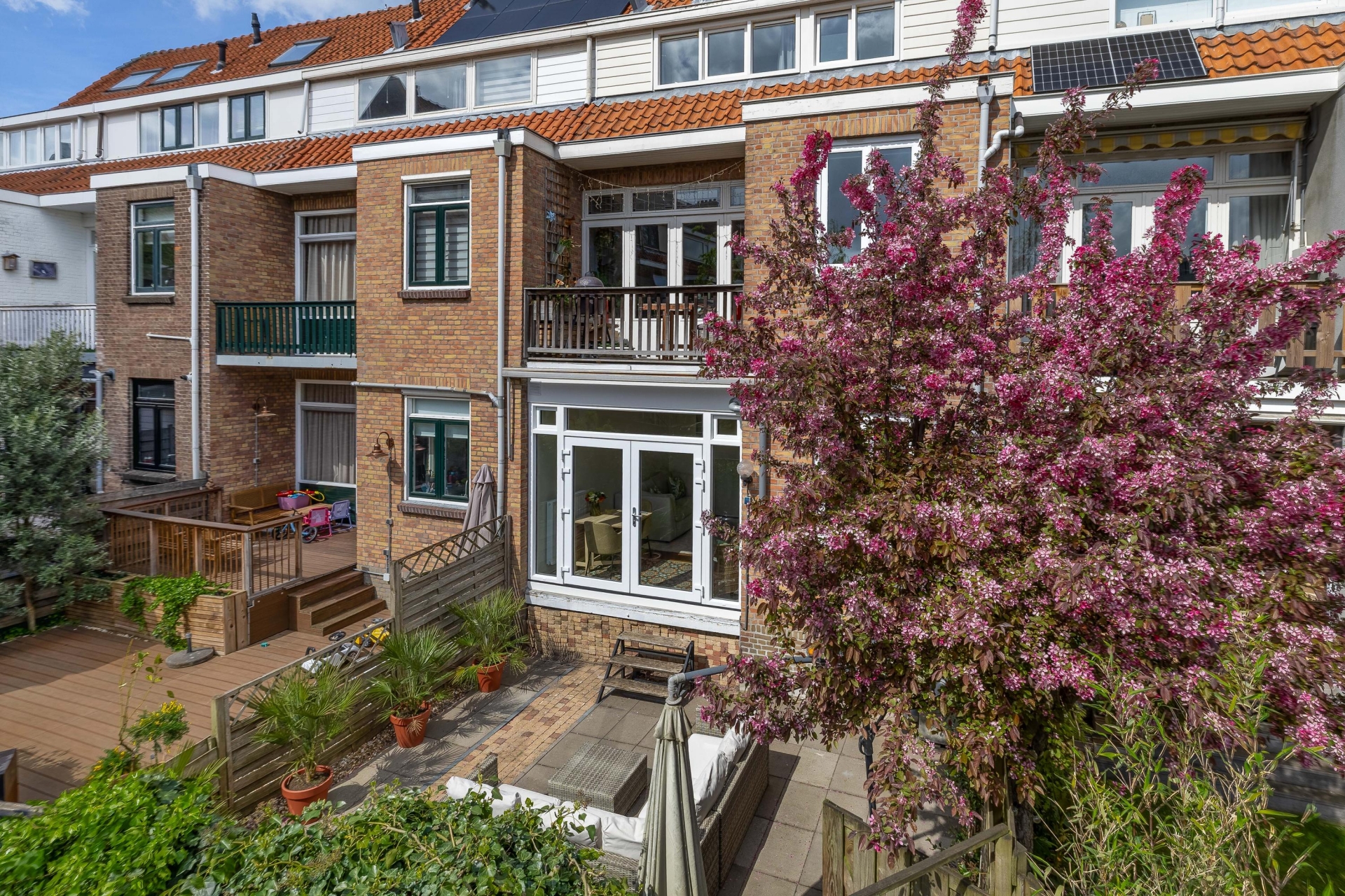 De tuin is absoluut een van de sterke punten van dit huis. Met een oppervlakte van ca. 38 m² en een ligging op het zuiden zit je hier vrijwel de hele dag in de zon. Of je nu wilt ontspannen op de loungeset, buiten wilt eten of vrienden over de vloer hebt: dit is zo’n plek waar je graag tijd doorbrengt.