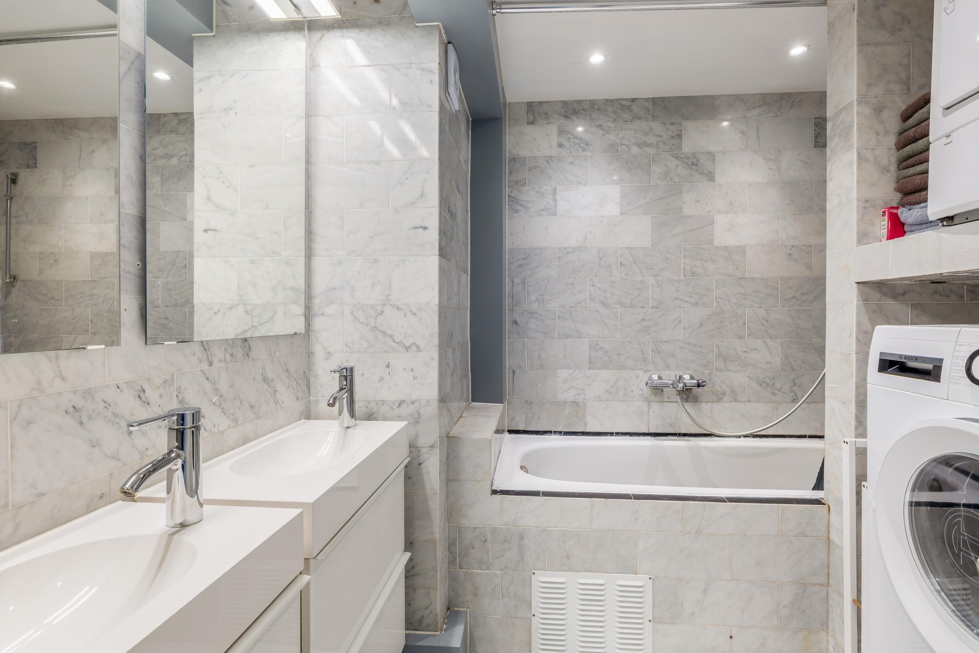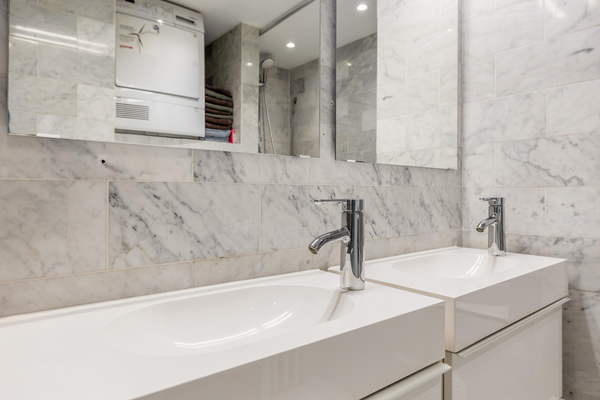 Op de 2e verdieping zijn 3 ruime slaapkamers gelegen. De master bedroom ligt aan de voorzijde en de 2 andere kamers zijn beide aan de achterzijde gesitueerd. Centraal is de inpandige badkamer, welke volledig betegeld is. De badkamer beschikt over een dubbele wastafel met meubel, bad met douchefunctie en de aansluiting voor de wasmachine en droger. Over de gehele verdieping, m.u.v. de badkamer, is een laminaatvloer gelegen.
