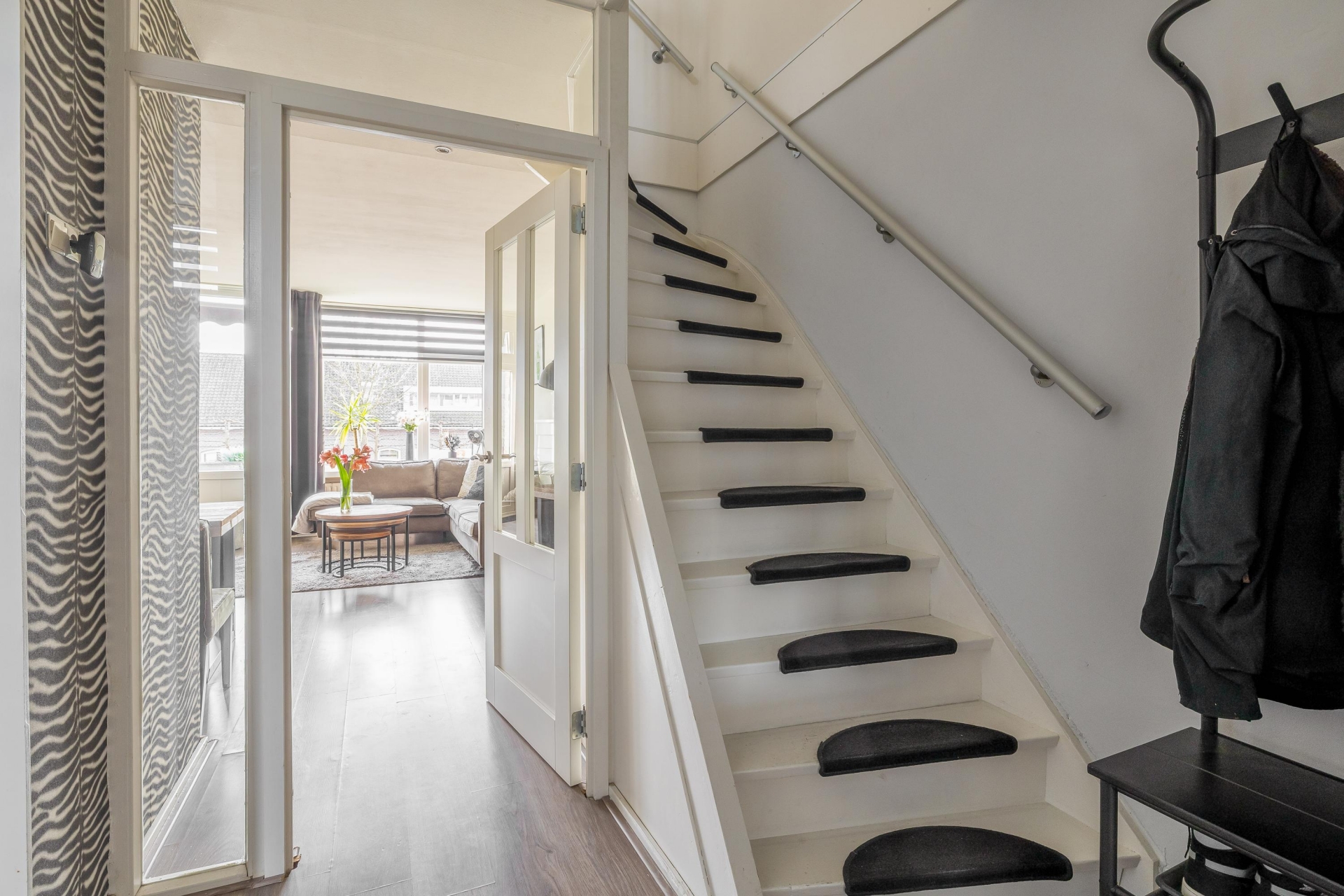 Open portiek met trapopgang naar de 1e verdieping. Tevens toegang tot de inpandige berging.