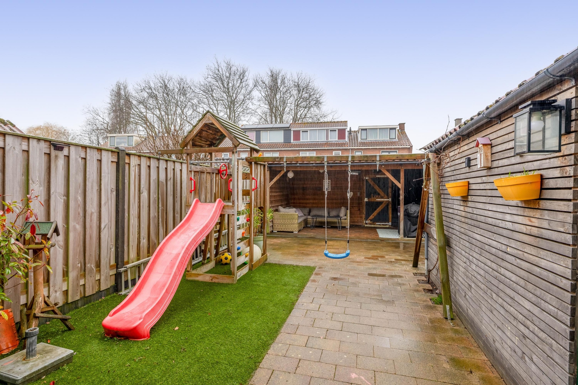 De achtertuin is gelegen op het zuidwesten, wat betekent dat je hier vrijwel de hele dag van de zon kunt genieten. Een heerlijke plek om na het werk nog even buiten te zitten of in het weekend te ontspannen. De tuin is onderhoudsvriendelijk aangelegd en biedt voldoende privacy.