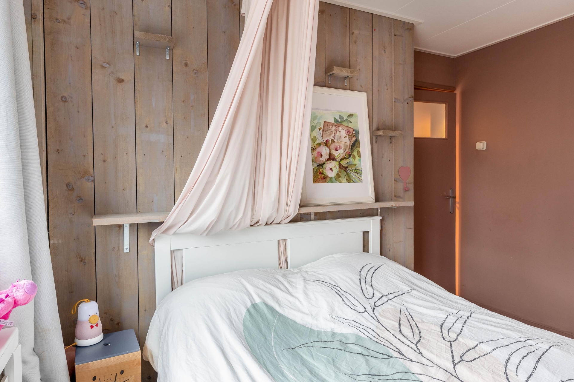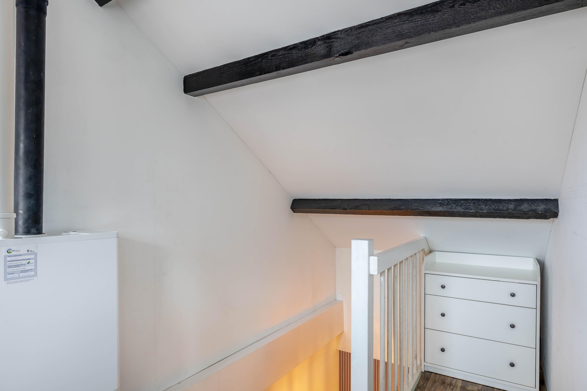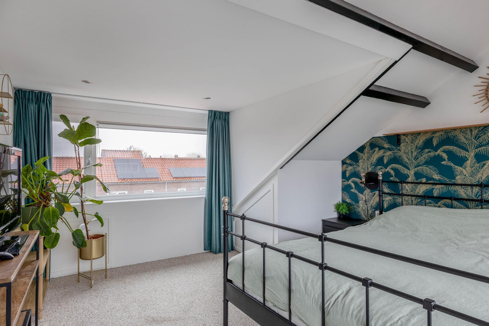 Dankzij de nokverhoging met dakkapellen op de 2e verdieping is ook hier een volwaardige 3e kamer ontstaan, met extra licht en bergruimte achter de knieschotten. Een fijne plek voor wie thuiswerkt of juist behoefte heeft aan een rustige slaapkamer.