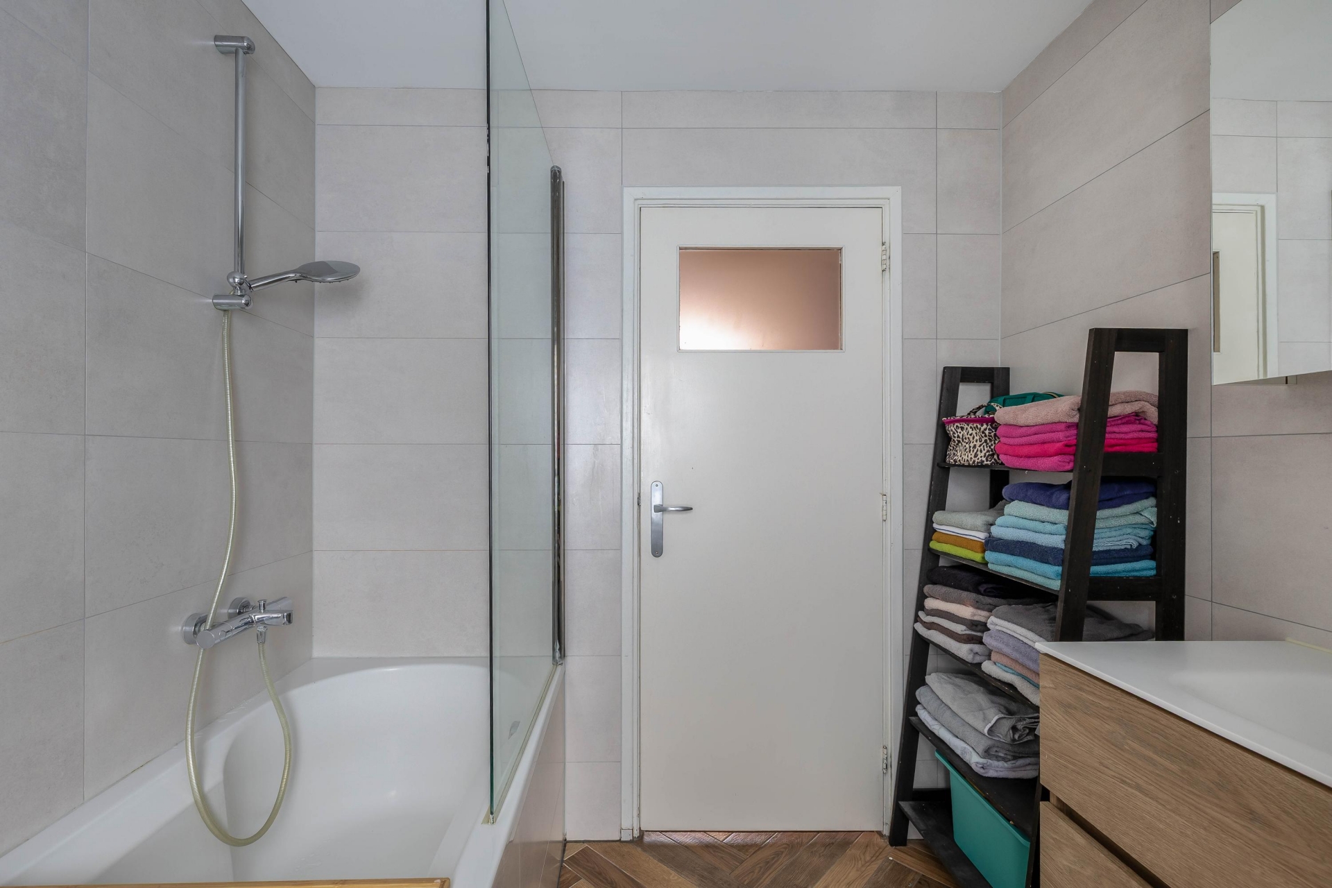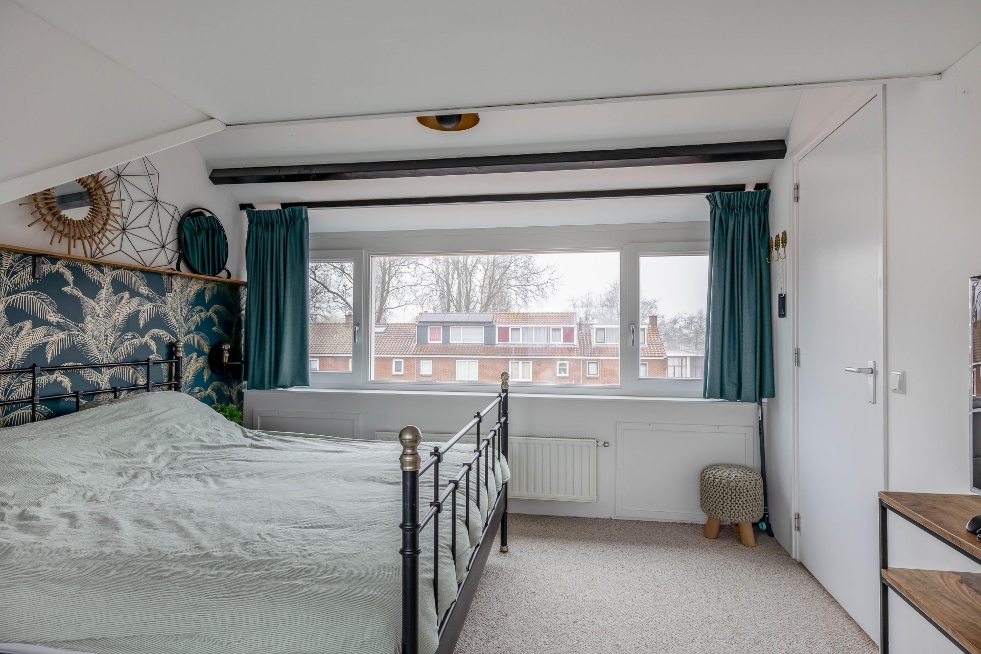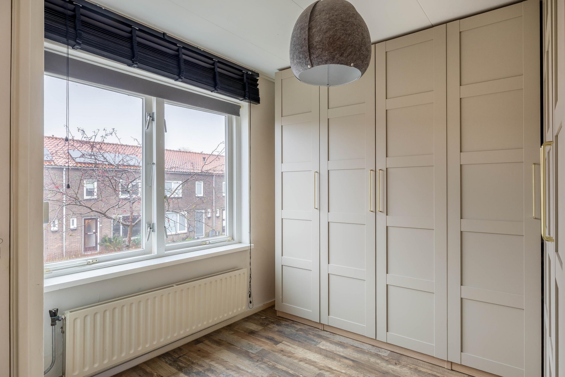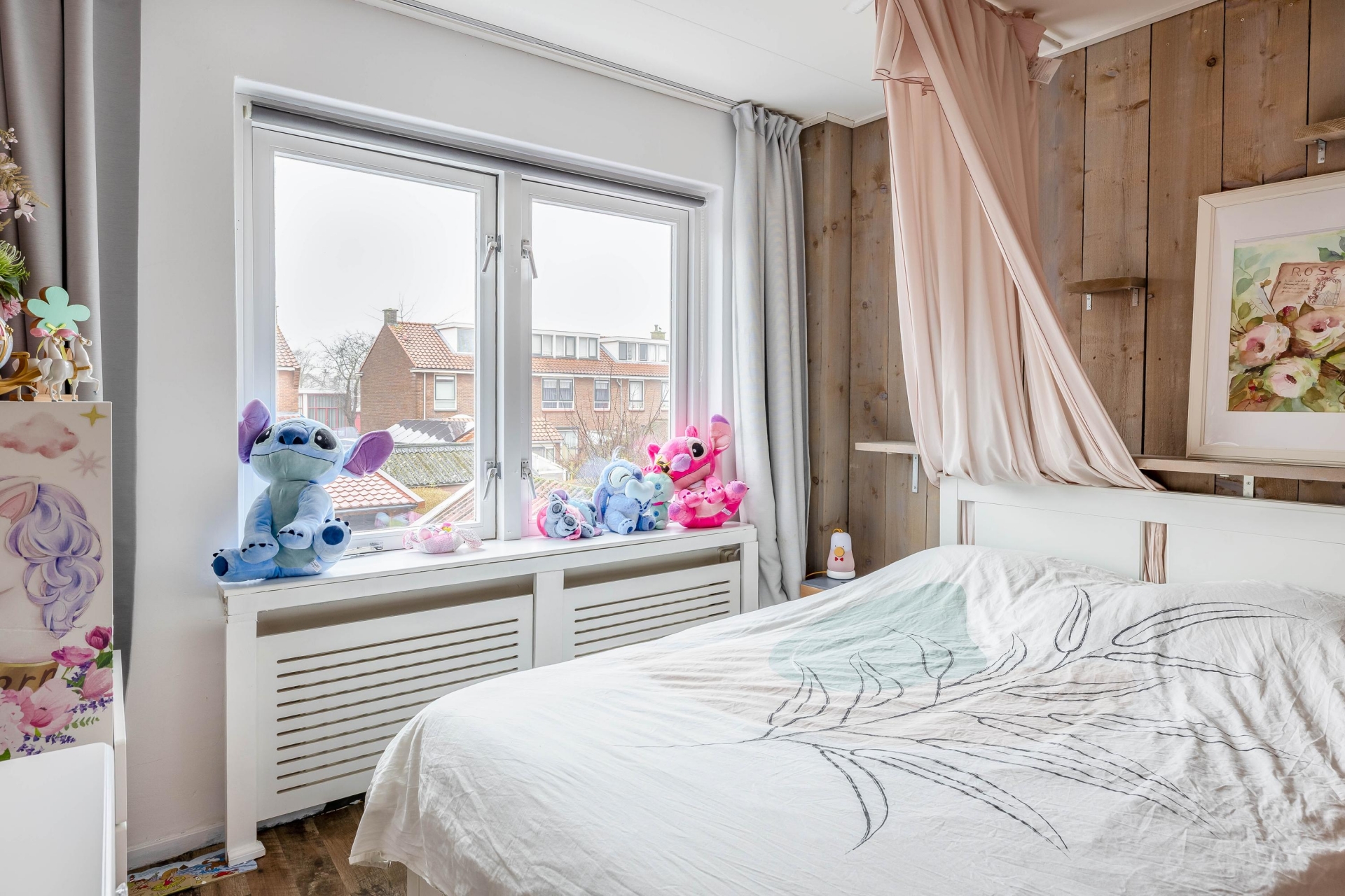 Dankzij de nokverhoging met dakkapellen op de 2e verdieping is ook hier een volwaardige 3e kamer ontstaan, met extra licht en bergruimte achter de knieschotten. Een fijne plek voor wie thuiswerkt of juist behoefte heeft aan een rustige slaapkamer.