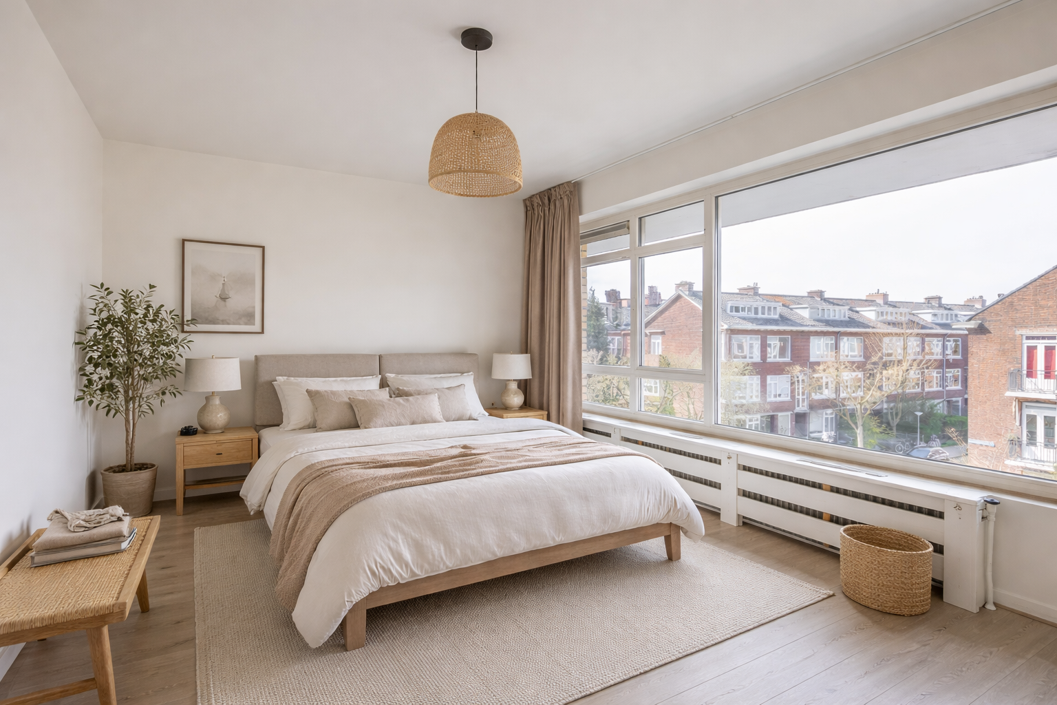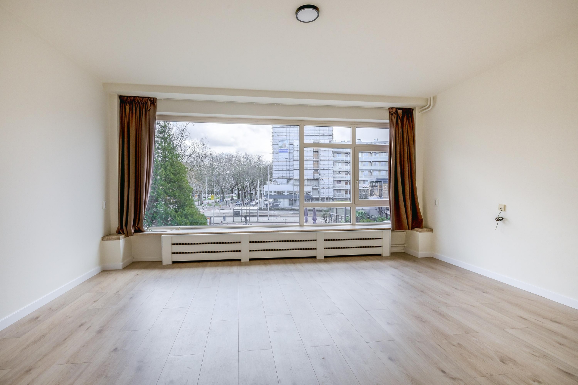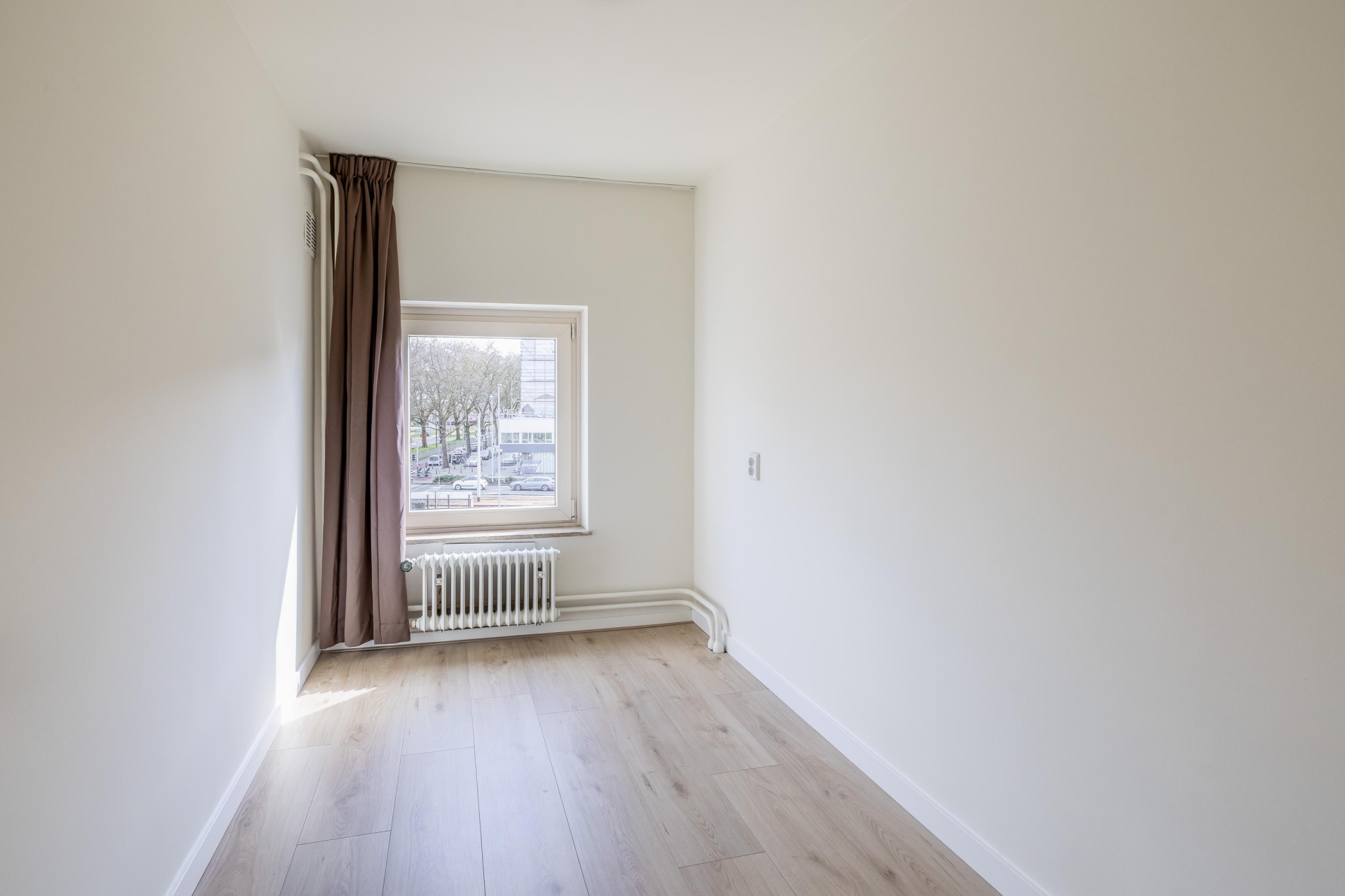 De woonkamer is prettig licht dankzij de grote raampartijen en biedt een levendig uitzicht op het Bentinckplein. De ruimte is praktisch in te delen met een comfortabele zithoek en een eethoek. Door de recente renovatie en het schilderwerk voelt het geheel fris en verzorgd aan. De nieuwe laminaatvloer zorgt voor een rustige en moderne basis die je eenvoudig naar eigen smaak kunt inrichten.