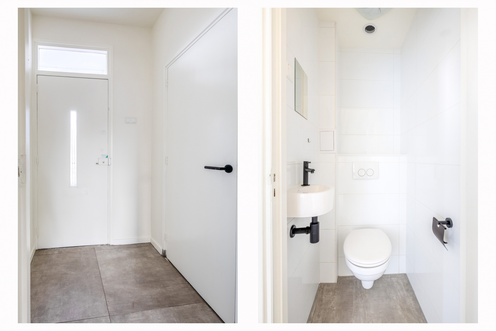 Via de entree op de eerste verdieping kom je binnen in de hal, waar je toegang hebt tot de bijkeuken/wasruimte en het separate toilet. Vanuit hier loop je door naar de woonkamer aan de voorzijde.