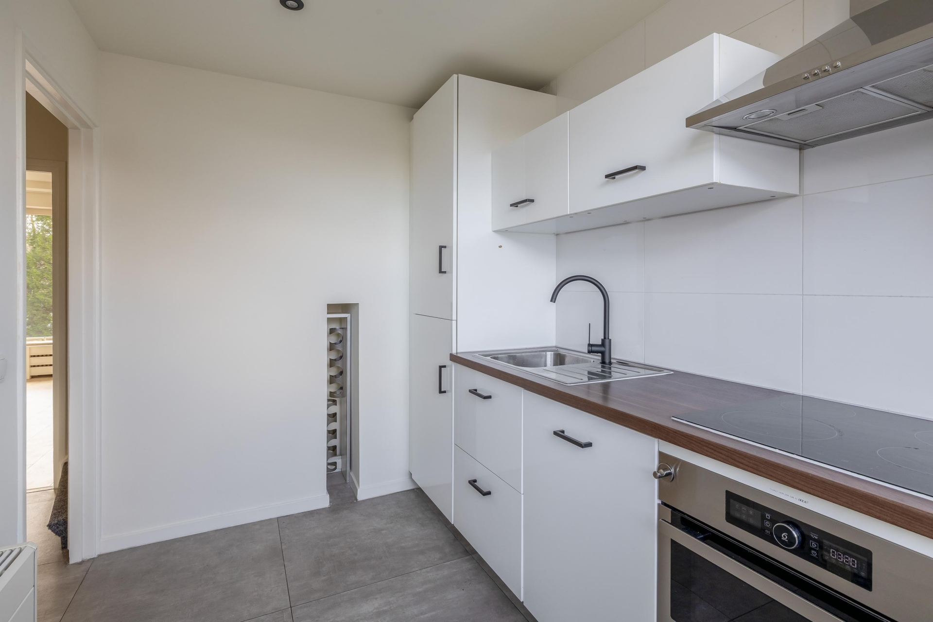 De keuken bevindt zich apart van de woonkamer en is daarmee een fijne, afgesloten ruimte. Ideaal als je graag kookt zonder dat geuren zich door het hele huis verspreiden. De keuken is voorzien van diverse inbouwapparatuur, waaronder een inductiekookplaat, afzuigkap, vaatwasser, oven en een koel-vriescombinatie.