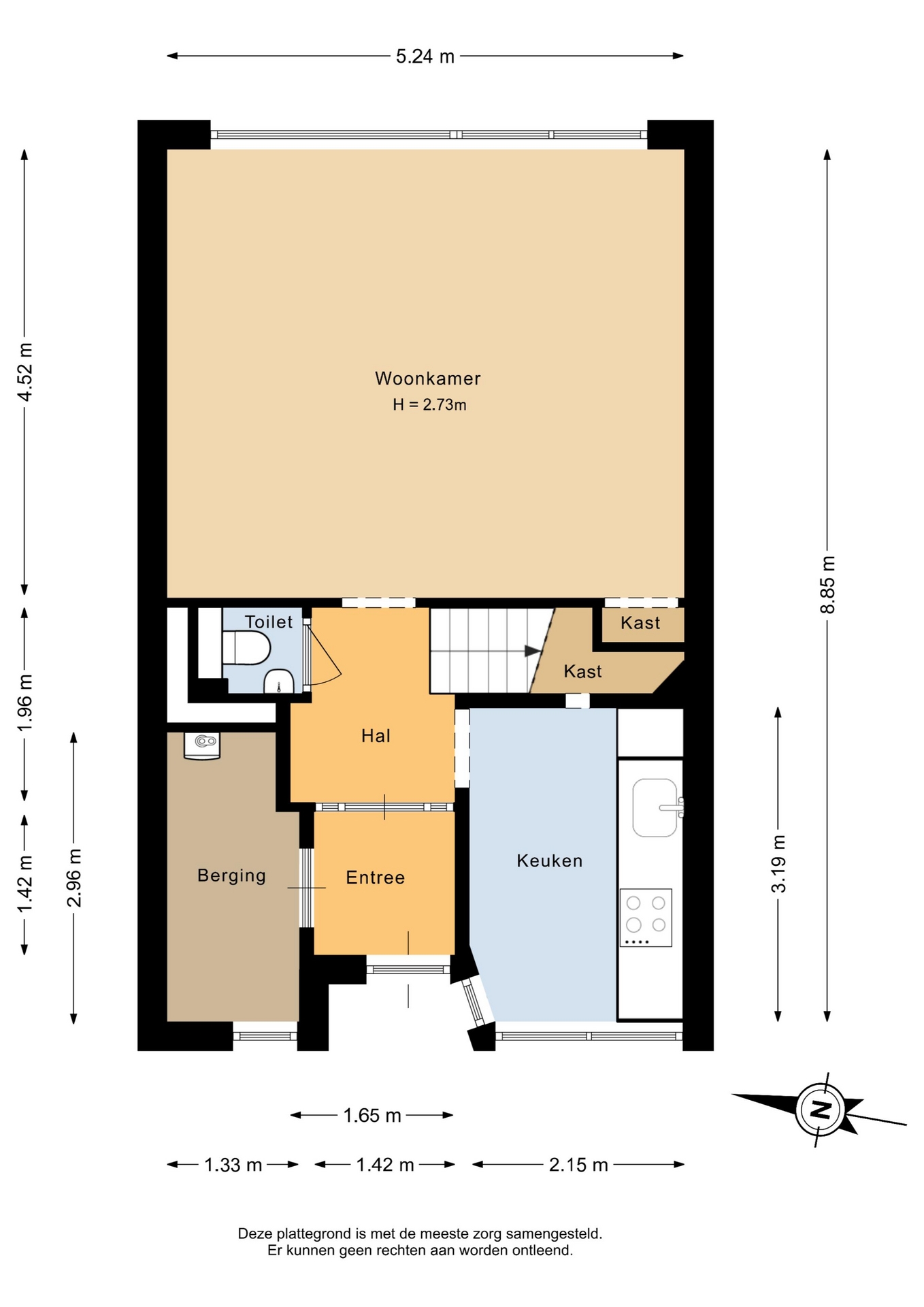 “Deze informatie is door ons met de nodige zorgvuldigheid samengesteld. Onzerzijds wordt echter geen enkele aansprakelijkheid aanvaard voor enige onvolledigheid, onjuistheid of anderszins, dan wel de gevolgen daarvan. Alle opgegeven maten en oppervlakten zijn indicatief.”