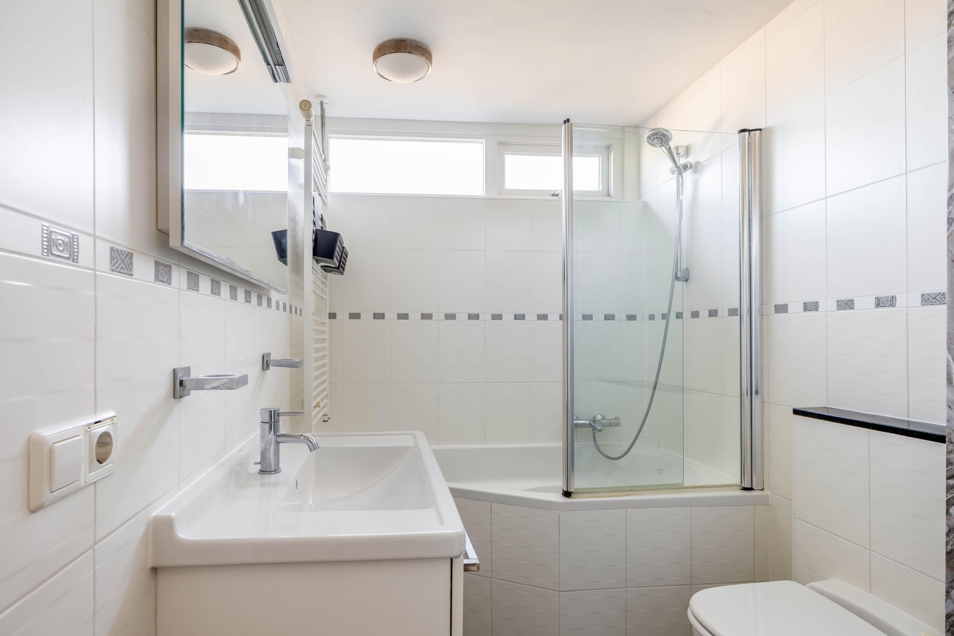 De badkamer is vernieuwd in 2017 en heeft een complete en verzorgde indeling. Hier vind je een ligbad, een toilet en een wastafelmeubel. De neutrale afwerking zorgt ervoor dat de ruimte tijdloos oogt en gemakkelijk naar eigen smaak aan te vullen is.