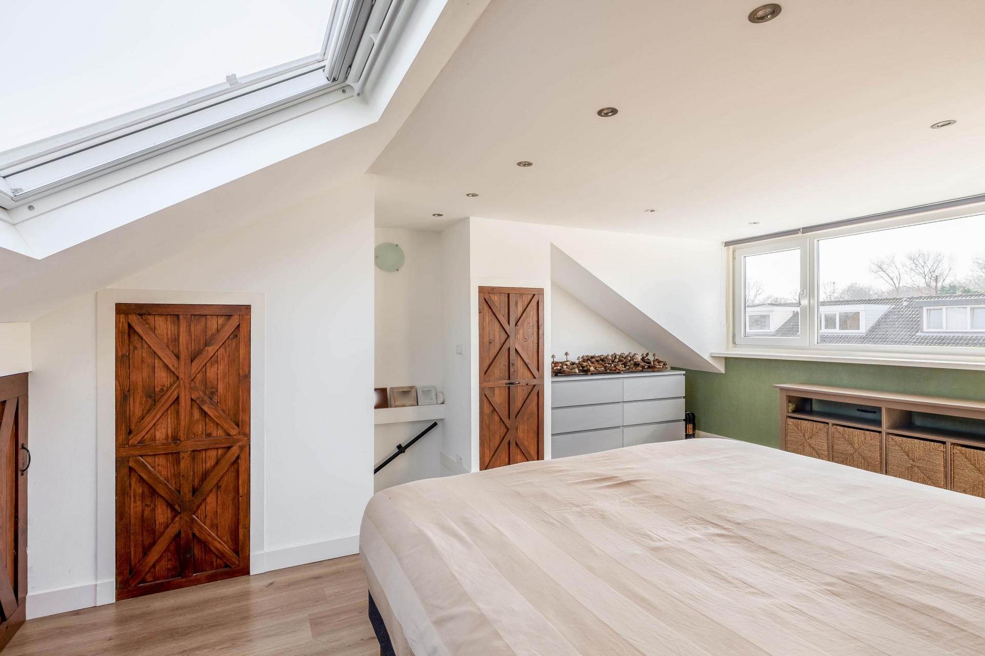 De tweede verdieping, voorzien van dakkapel en de nodige opbergruimte, biedt nog een zeer ruime slaapkamer.