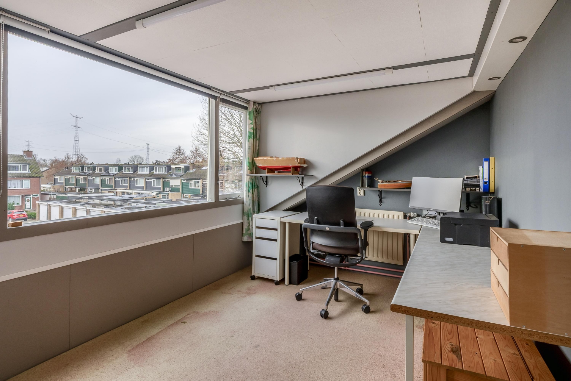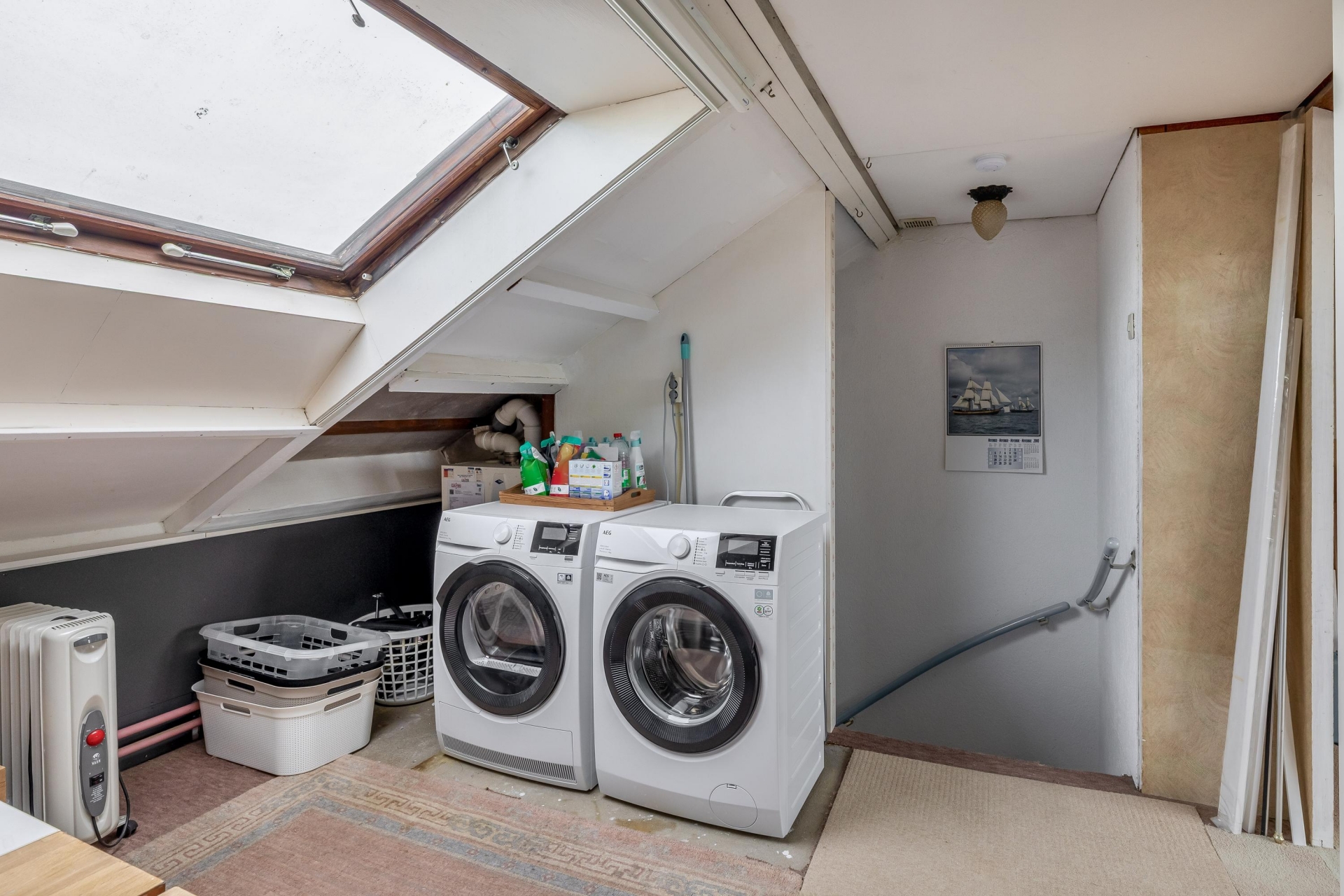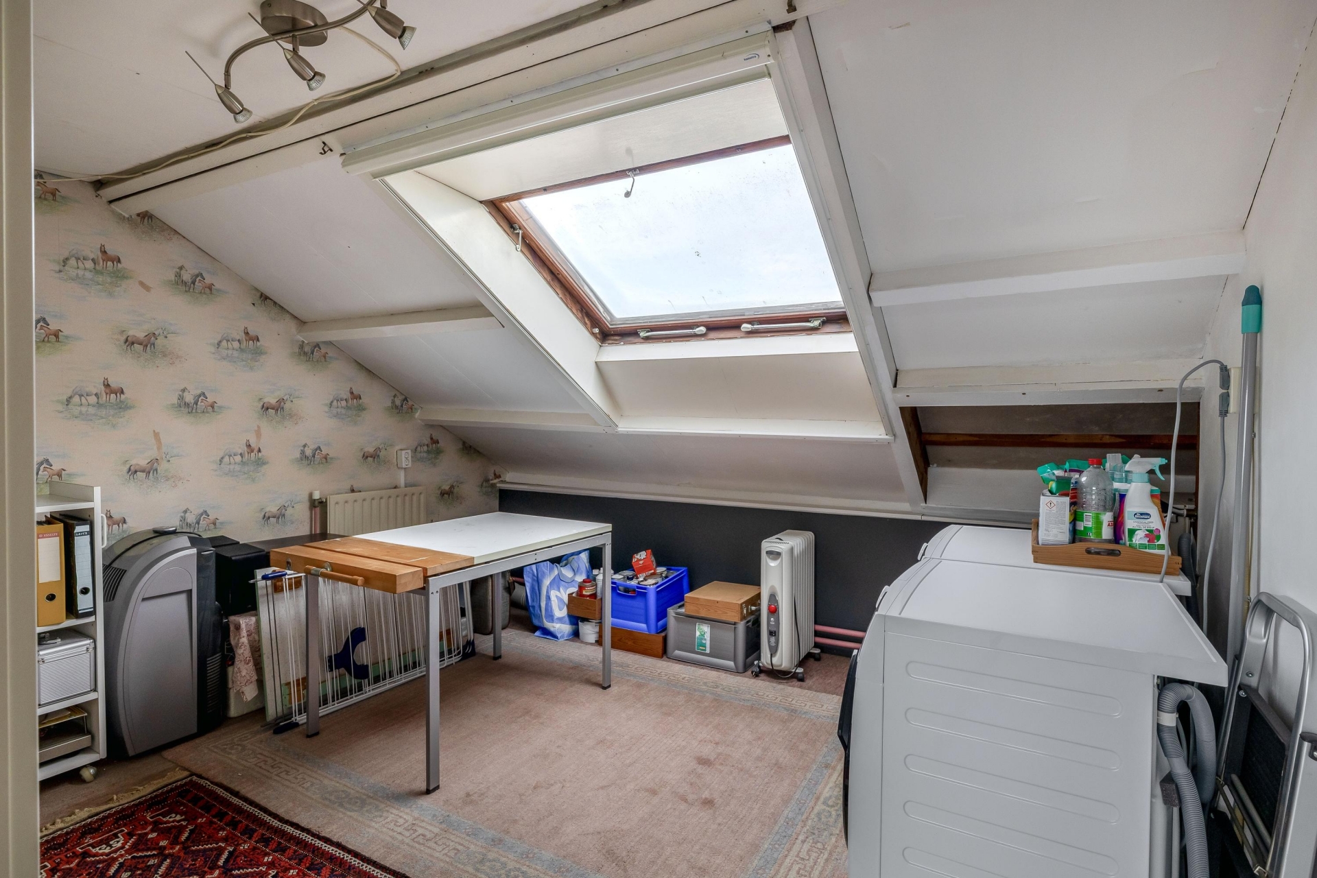 Op de eerste verdieping zijn er twee ruime slaapkamers, waarvan de grootste over de volle breedte aan de voorzijde ligt. Vroeger waren dit 2 slaapkamers. De toegangsdeur naar de grote slaapkamer met het kozijn zijn werkgewerkt maar dus nog wel aanwezig. Ook de badkamer is op deze verdieping te vinden. Op zolder is er een royale voorzolder met dakkapel en een extra (slaap)kamer. Hier is eenvoudig een extra slaapkamer of thuiskantoor te realiseren.