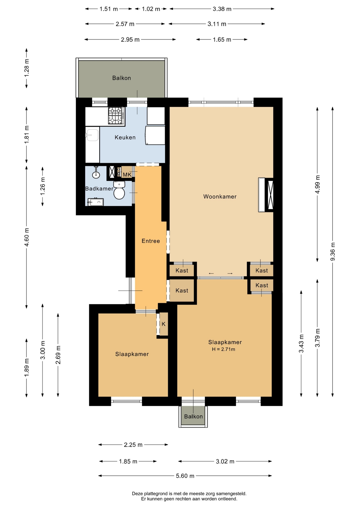 “Deze informatie is door ons met de nodige zorgvuldigheid samengesteld. Onzerzijds wordt echter geen enkele aansprakelijkheid aanvaard voor enige onvolledigheid, onjuistheid of anderszins, dan wel de gevolgen daarvan. Alle opgegeven maten en oppervlakten zijn indicatief.”