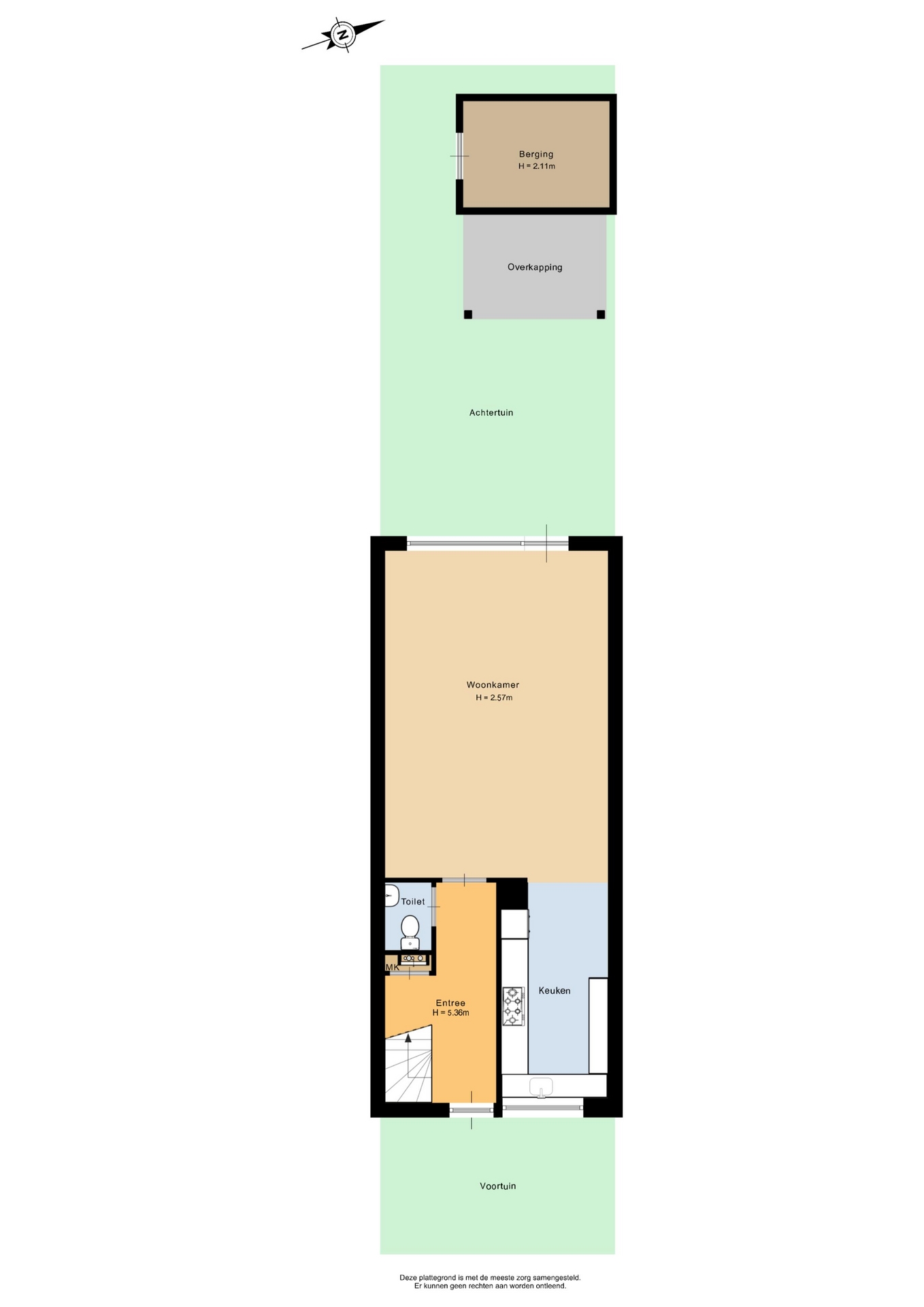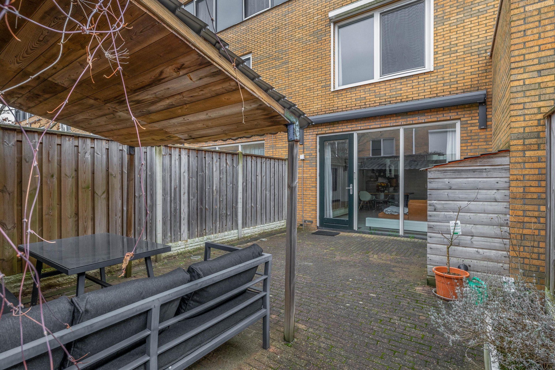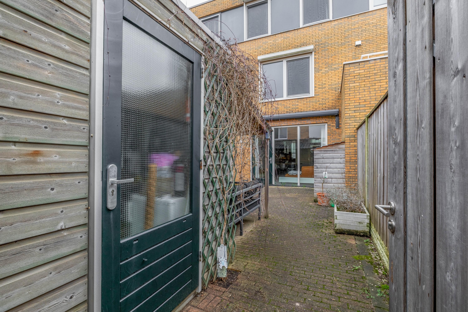 De achtertuin van ca. 50 m² is netjes aangelegd en gelegen op het westen – dat betekent in de middag en avond zon! Achter in de tuin staat een houten berging met elektra, ideaal voor fietsen, tuinkussens of klusmateriaal. De overkapping is een fijne extra plek waar je beschut buiten kunt zitten, ook als het weer iets minder is. De tuin is via een achterom bereikbaar, wat praktisch is voor jonge gezinnen.