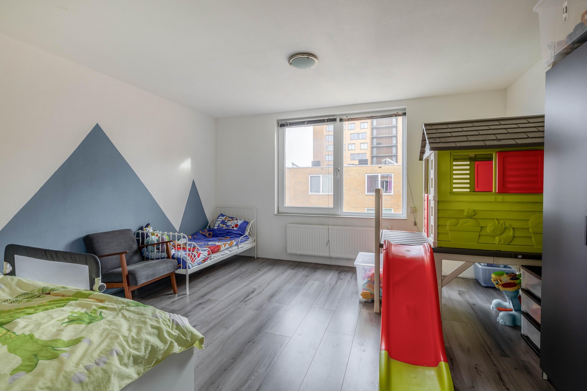 Op de tweede verdieping vind je nog eens drie slaapkamers van goed formaat, ideaal voor kinderen, een thuiswerkplek of logeerkamer. Ook is hier een aparte wasruimte met opstelplaats voor wasmachine, droger, WTW unit en de recent geplaatste Remeha HR combiketel (2024). Dankzij de slimme indeling van de eerste etage is zelfs het realiseren van een vijfde slaapkamer hier goed mogelijk.