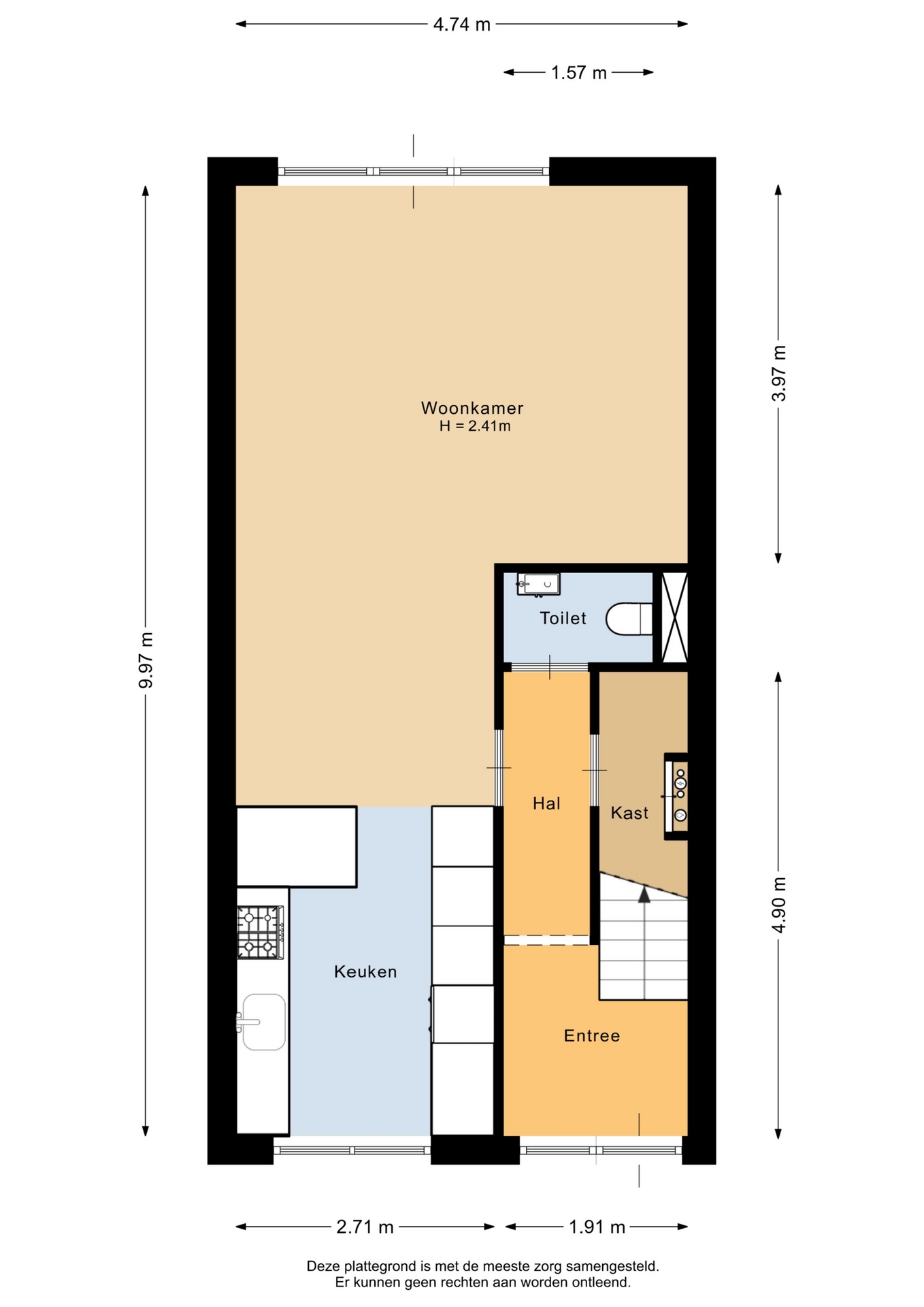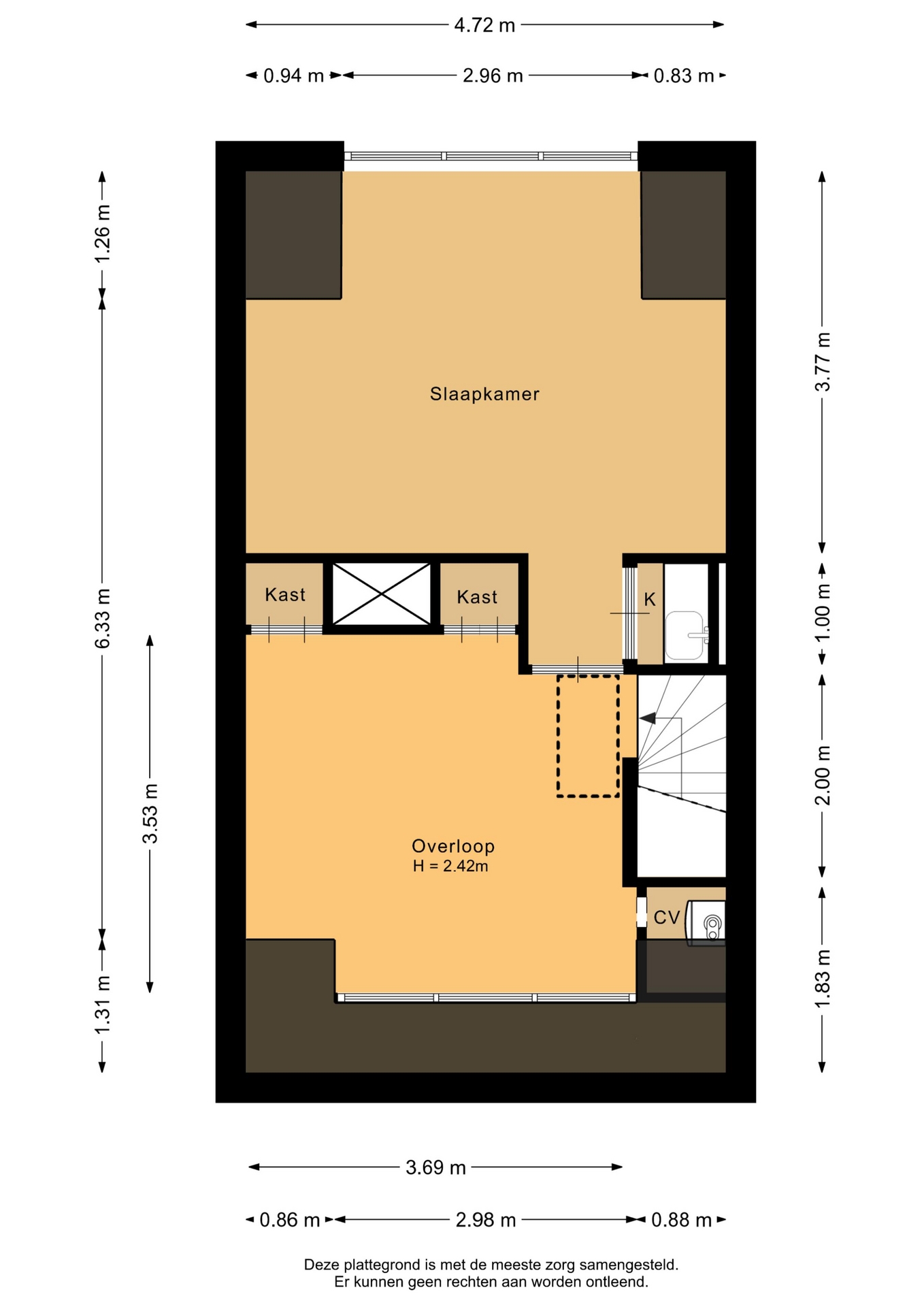 “Deze informatie is door ons met de nodige zorgvuldigheid samengesteld. Onzerzijds wordt echter geen enkele aansprakelijkheid aanvaard voor enige onvolledigheid, onjuistheid of anderszins, dan wel de gevolgen daarvan. Alle opgegeven maten en oppervlakten zijn indicatief.”