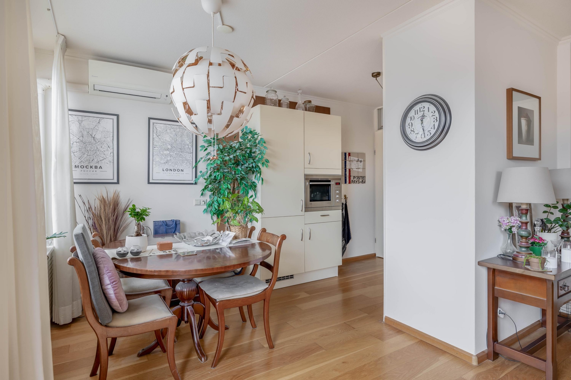De lichte woonkamer biedt volop ruimte voor een gezellige zithoek en heeft direct toegang tot het zonnige terras. De open keuken is voorzien van diverse inbouwapparatuur en sluit naadloos aan bij de woonkamer – ideaal voor wie van koken en samenzijn houdt.