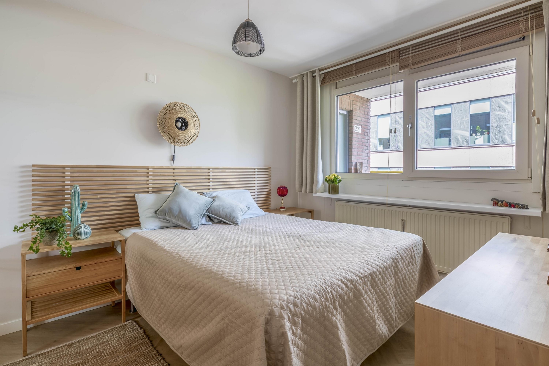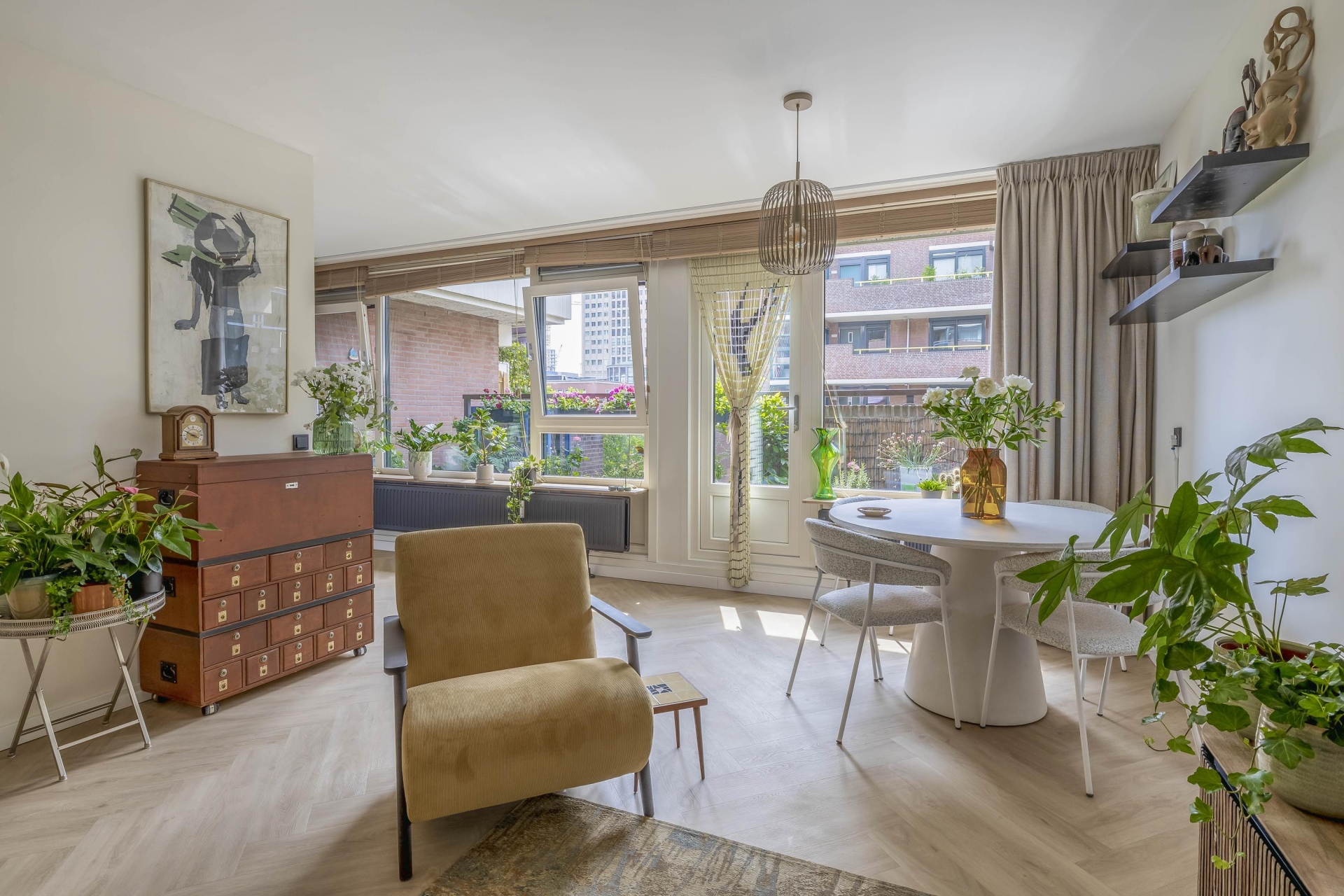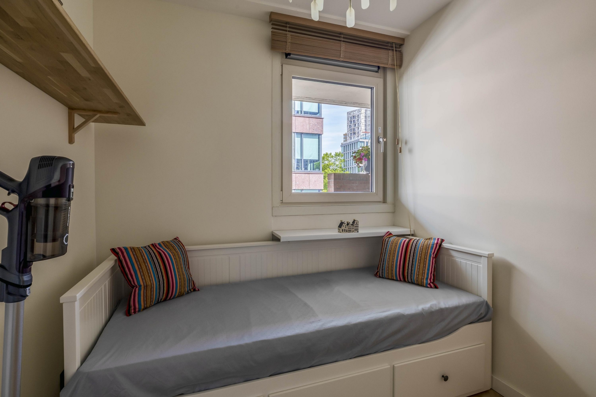 De woonkamer is ruim opgezet en heeft dankzij de grote raampartijen een prettige lichtinval. Vanuit hier stap je het balkon op dat op het westen ligt, een heerlijke plek om te ontspannen met uitzicht over de stad en de avondzon op je gezicht. De open verbinding met de keuken maakt het een ideale ruimte voor wie graag kookt én gezelschap houdt. De twee slaapkamers liggen rustig aan de galerijzijde en zijn uitstekend in te delen als hoofdslaapkamer, werkruimte of logeerkamer.