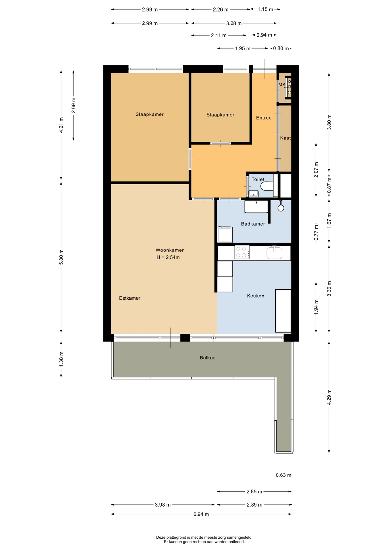“Deze informatie is door ons met de nodige zorgvuldigheid samengesteld. Onzerzijds wordt echter geen enkele aansprakelijkheid aanvaard voor enige onvolledigheid, onjuistheid of anderszins, dan wel de gevolgen daarvan. Alle opgegeven maten en oppervlakten zijn indicatief.”