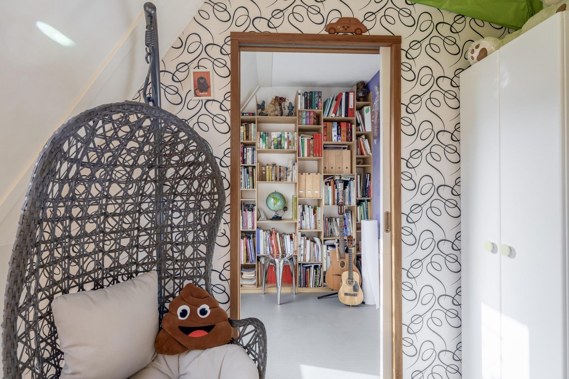 Ruime zolderkamer met dakvenster, bergvliering, bergruimte en opstelplaats wasmachine, droger en CV combiketel.