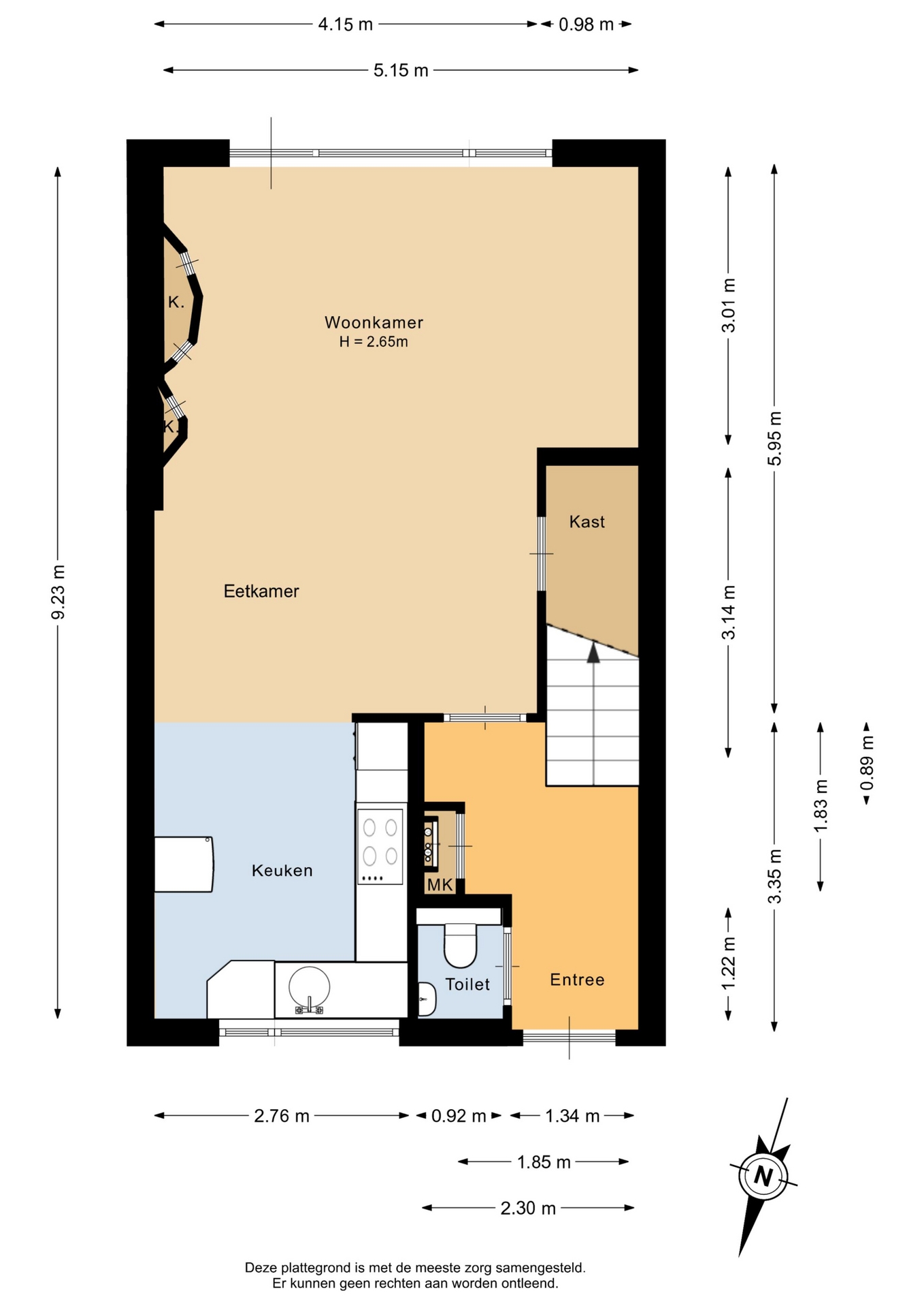 "Deze informatie is door ons met de nodige zorgvuldigheid samengesteld. Onzerzijds wordt echter geen enkele aansprakelijkheid aanvaard voor enige onvolledigheid, onjuistheid of anderszins, dan wel de gevolgen daarvan. Alle opgegeven maten en oppervlakten zijn indicatief. Van toepassing zijn de NVM voorwaarden".