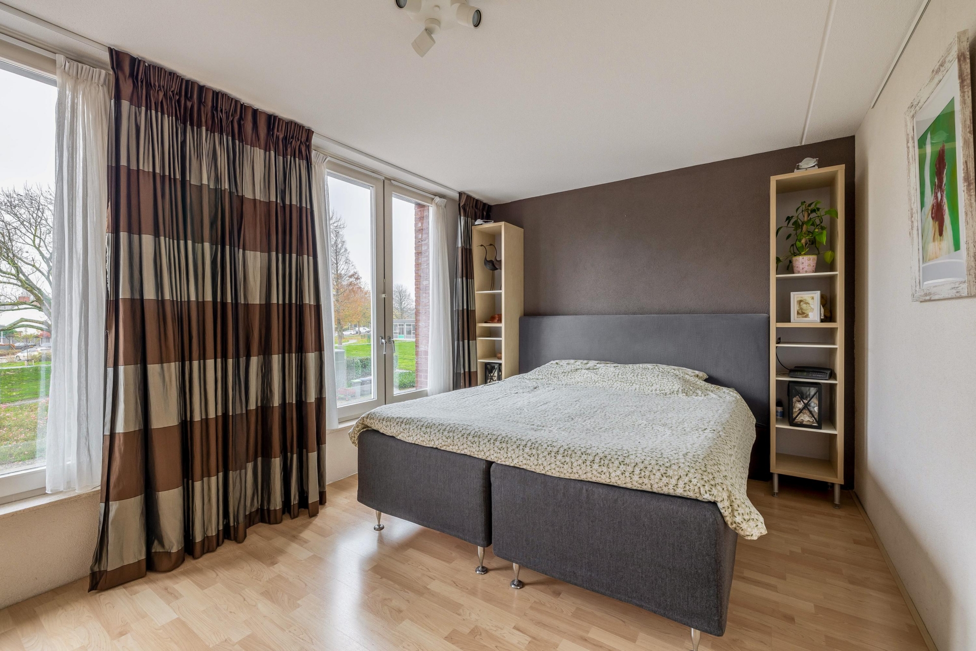 Op de eerste verdieping vind je drie ruime slaapkamers, stuk voor stuk met prettige afmetingen en veel daglicht. De grootste slaapkamer ligt aan de voorzijde. De badkamer is voorzien van een ligbad, toilet, wastafelmeubel en mechanische ventilatie. Alles is keurig onderhouden en functioneel ingedeeld. Ook op deze verdieping is de afwerking verzorgd en neutraal gehouden.