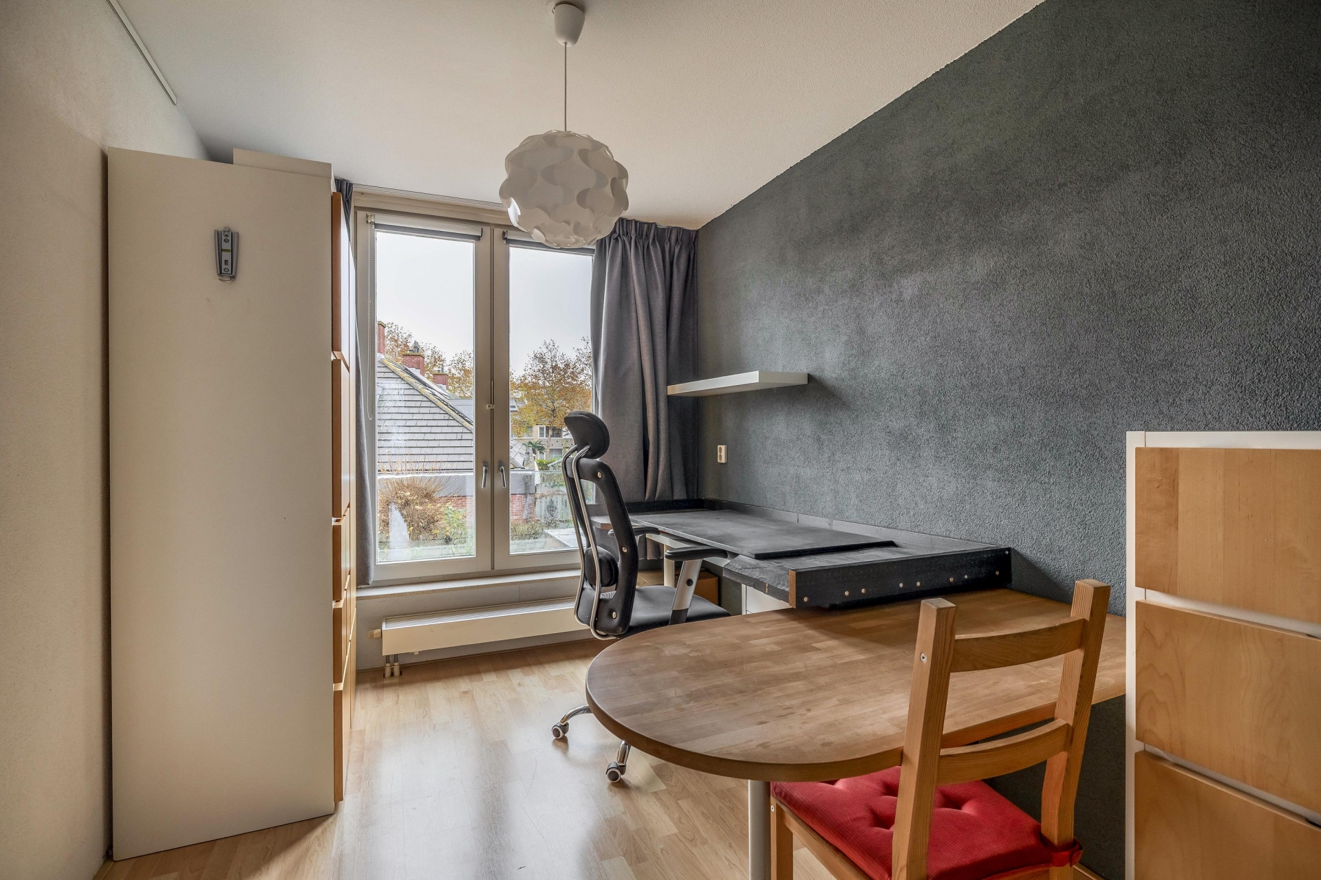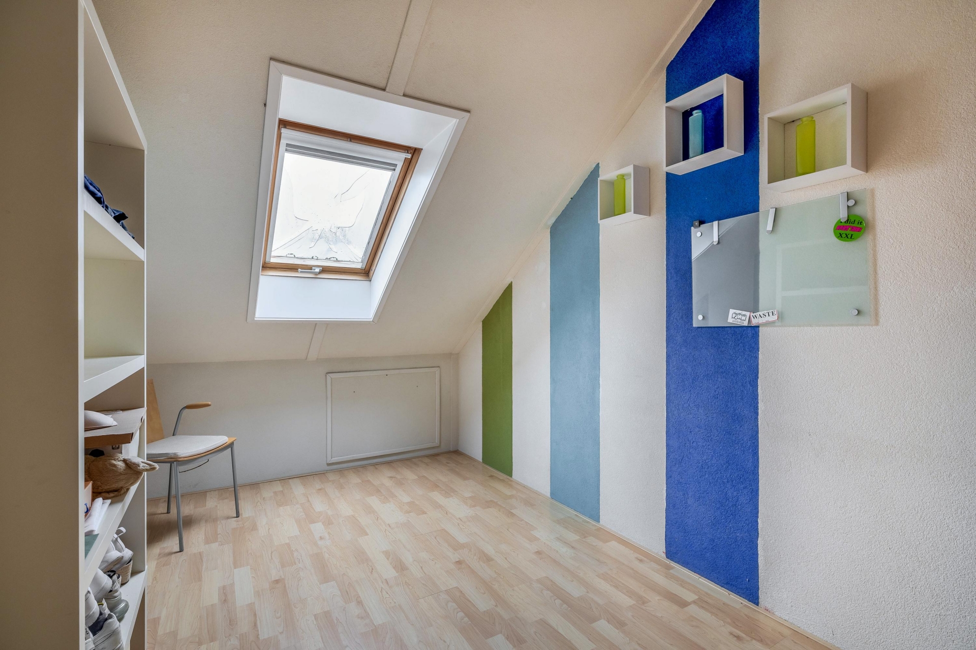 De tweede verdieping is verrassend ruim dankzij de rechte gevels. Hier bevinden zich nog twee kamers, momenteel in gebruik als slaapkamer en werkkamer. Dankzij de aanwezigheid van een dakraam is ook hier sprake van prettig daglicht. Daarnaast is er extra bergruimte en een stookruimte aanwezig. Deze verdieping maakt het huis bijzonder geschikt voor grotere gezinnen of voor wie graag thuis werkt.