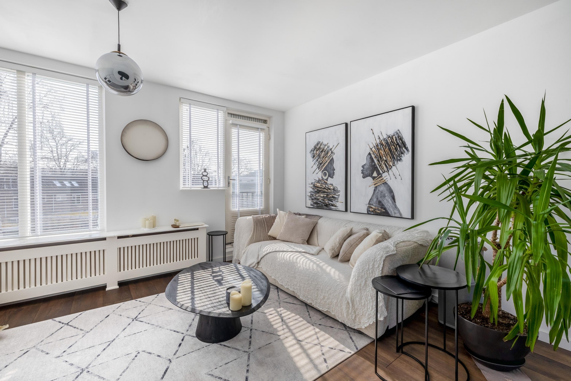 De afwerking is netjes en neutraal gehouden met strakke wanden en een warme vloer die doorloopt door de ruimte. Daardoor voelt het geheel rustig en modern aan en kun je er meteen je eigen stijl aan geven. Ook is er voldoende plek voor een thuiswerkplek, iets wat voor veel starters tegenwoordig een fijne extra is.