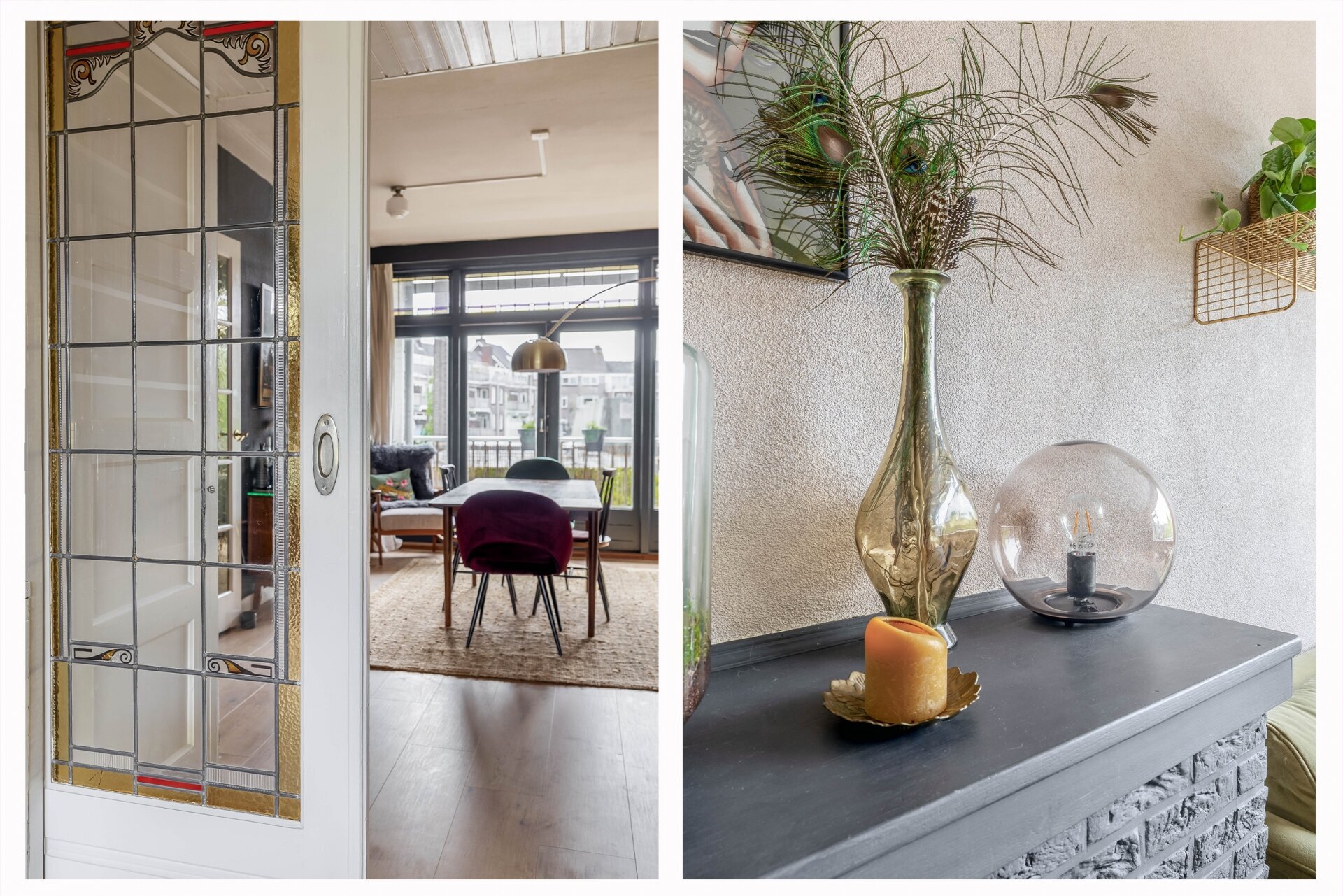 - Gedeeltelijk dubbel en HR glas met glas-in-lood bovenramen