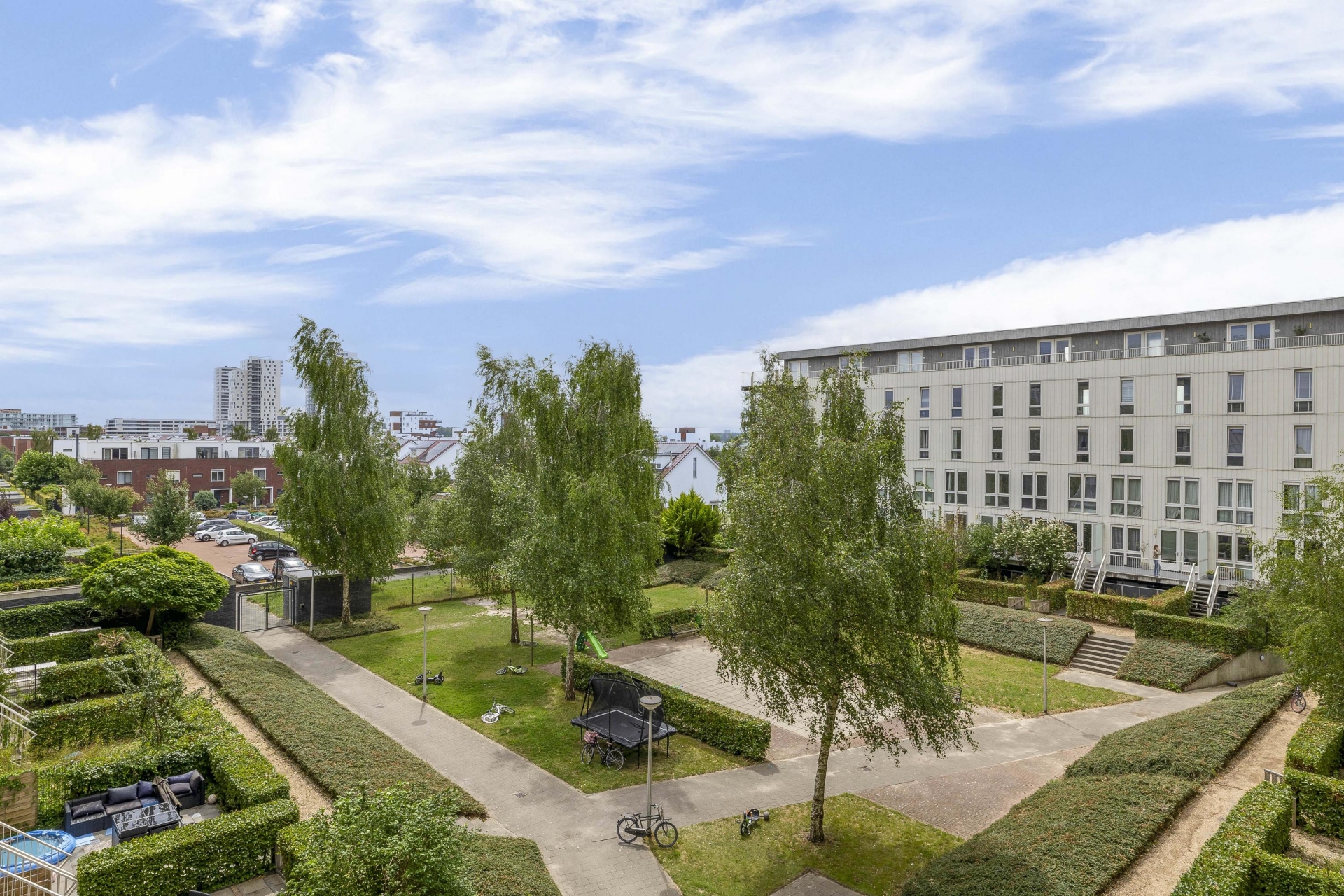 - Eigen parkeerplaats (nummer 38) en berging in afgesloten kelder;