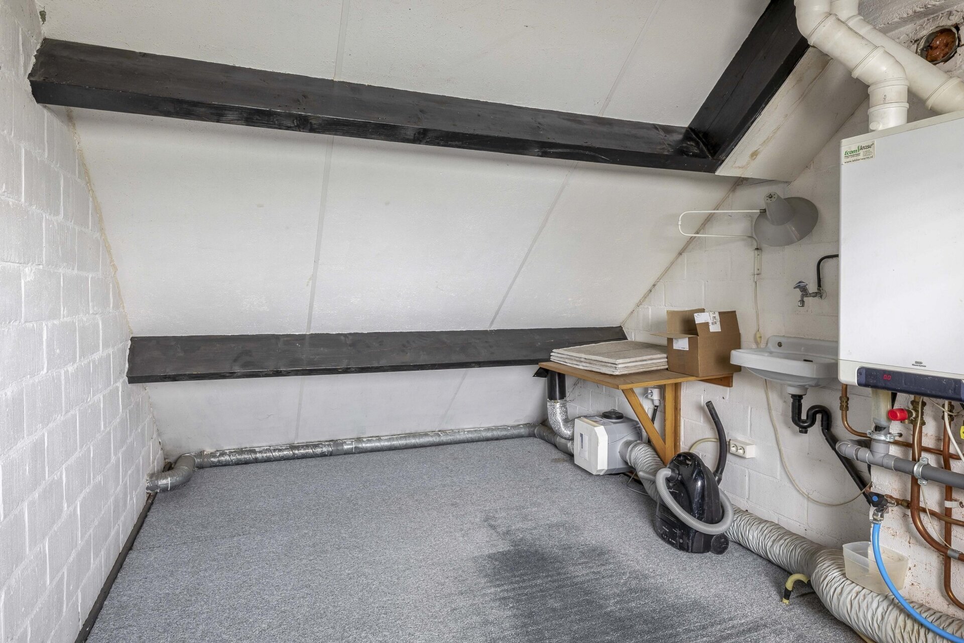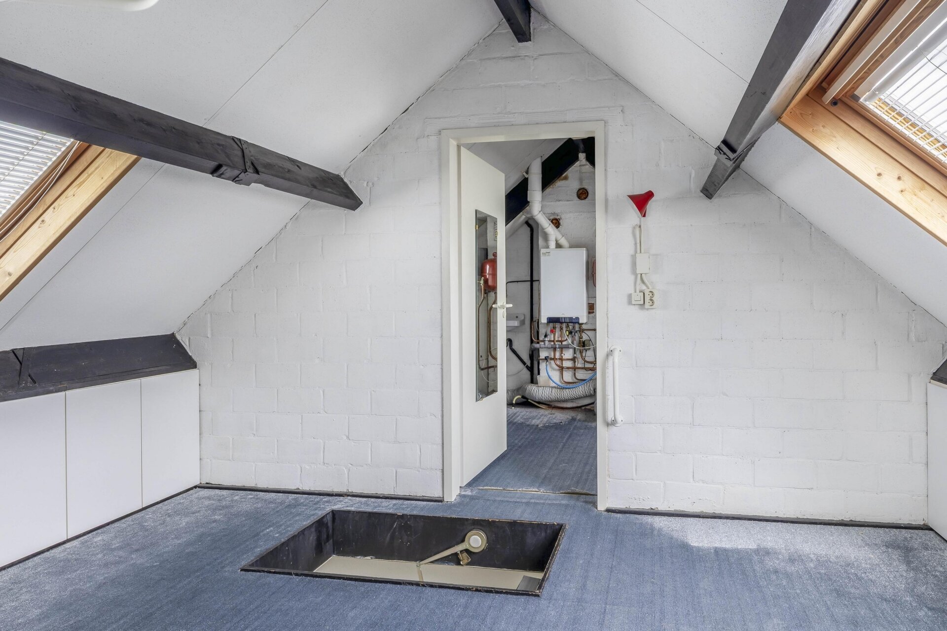 Via een vlizotrap bereik je de grote bergvliering. Hier vind je de opstelling van de Brink ketels voor de hete luchtverwarming en het warme water (beiden Brink, ca 2013). Op deze verdieping liggen nog volop kansen: met een vaste trap en wat aanpassingen creëer je eenvoudig extra slaapkamer(s), een werkkamer of hobbyruimte.