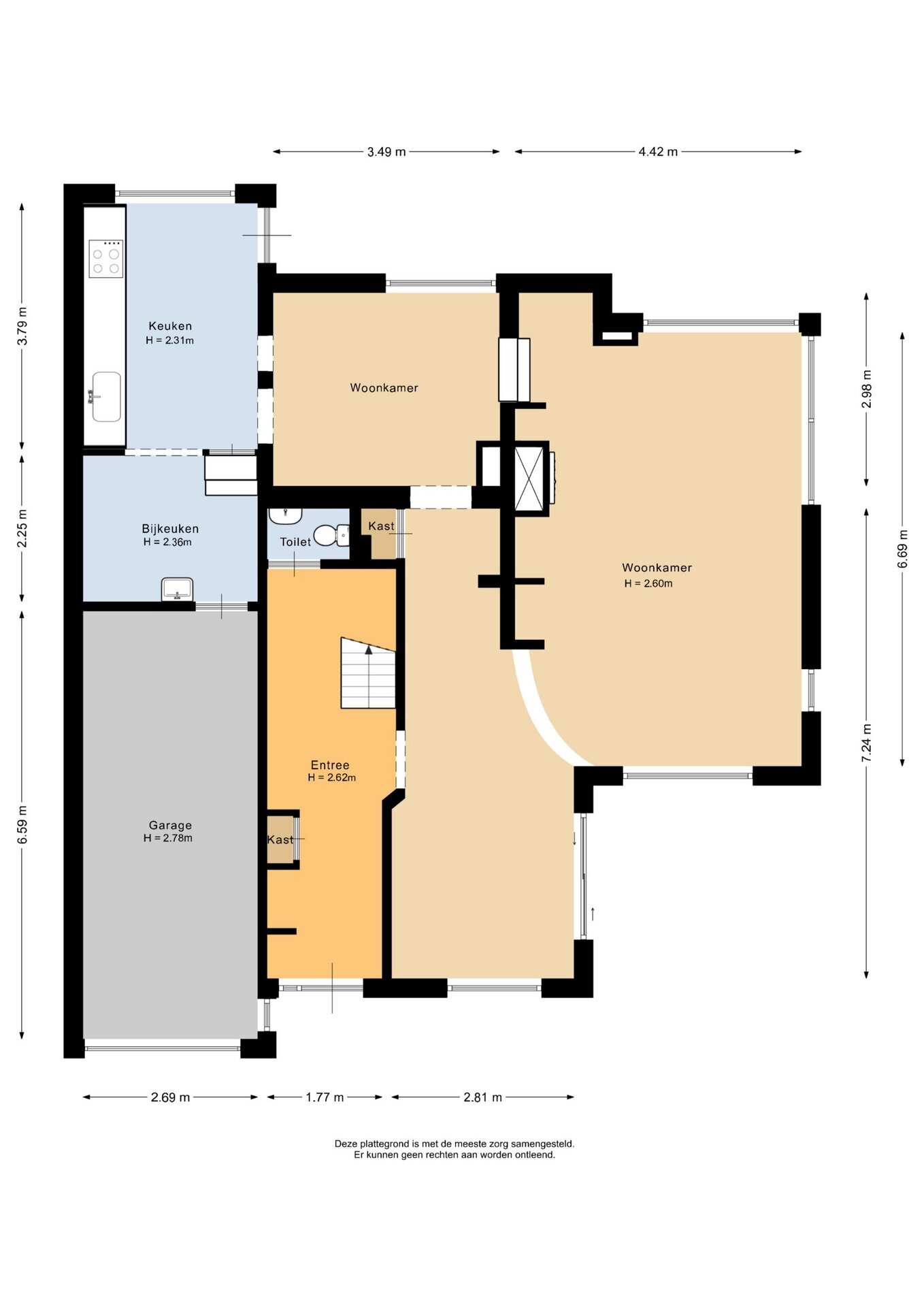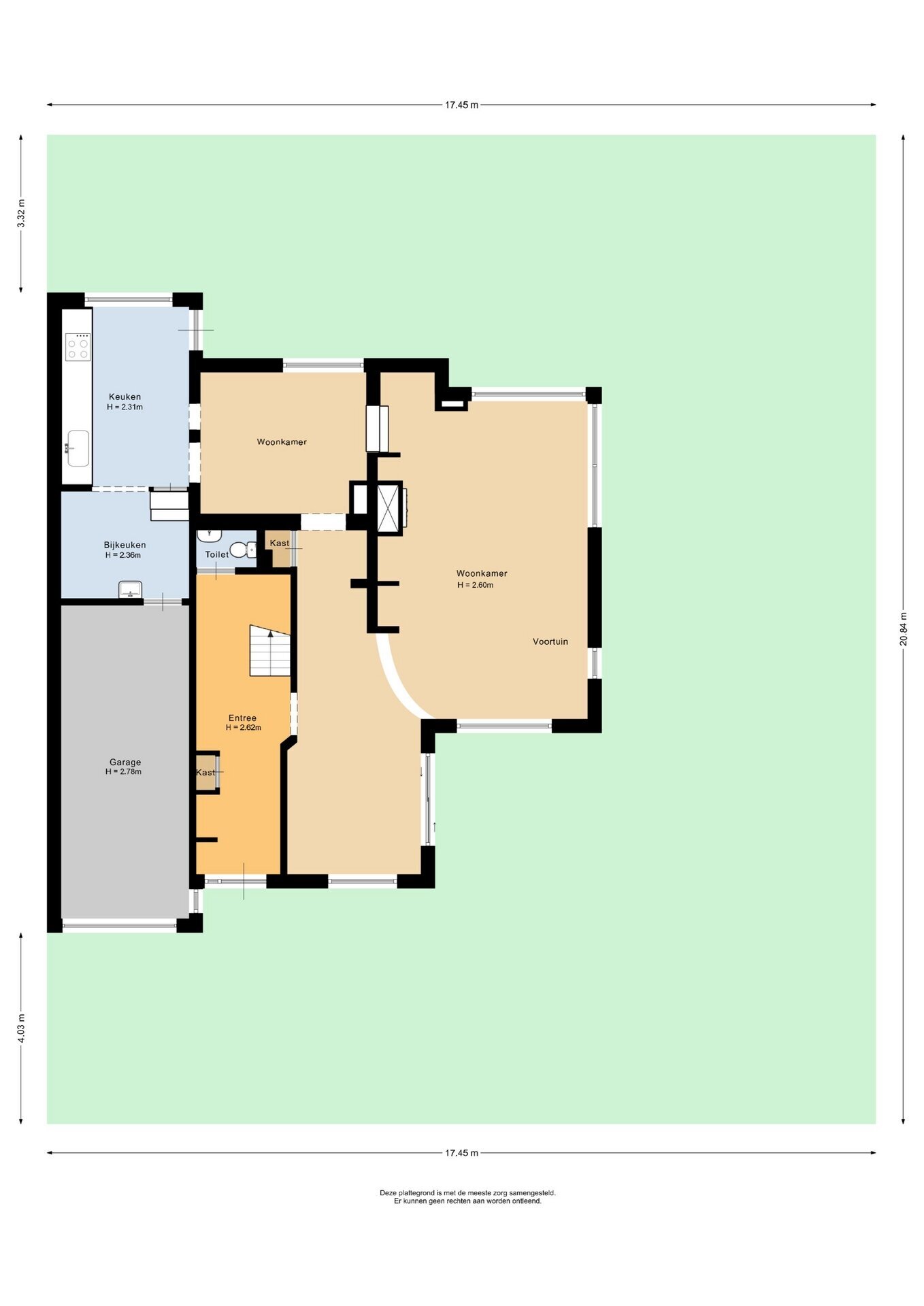 “Deze informatie is door ons met de nodige zorgvuldigheid samengesteld. Onzerzijds wordt echter geen enkele aansprakelijkheid aanvaard voor enige onvolledigheid, onjuistheid of anderszins, dan wel de gevolgen daarvan. Alle opgegeven maten en oppervlakten zijn indicatief.”