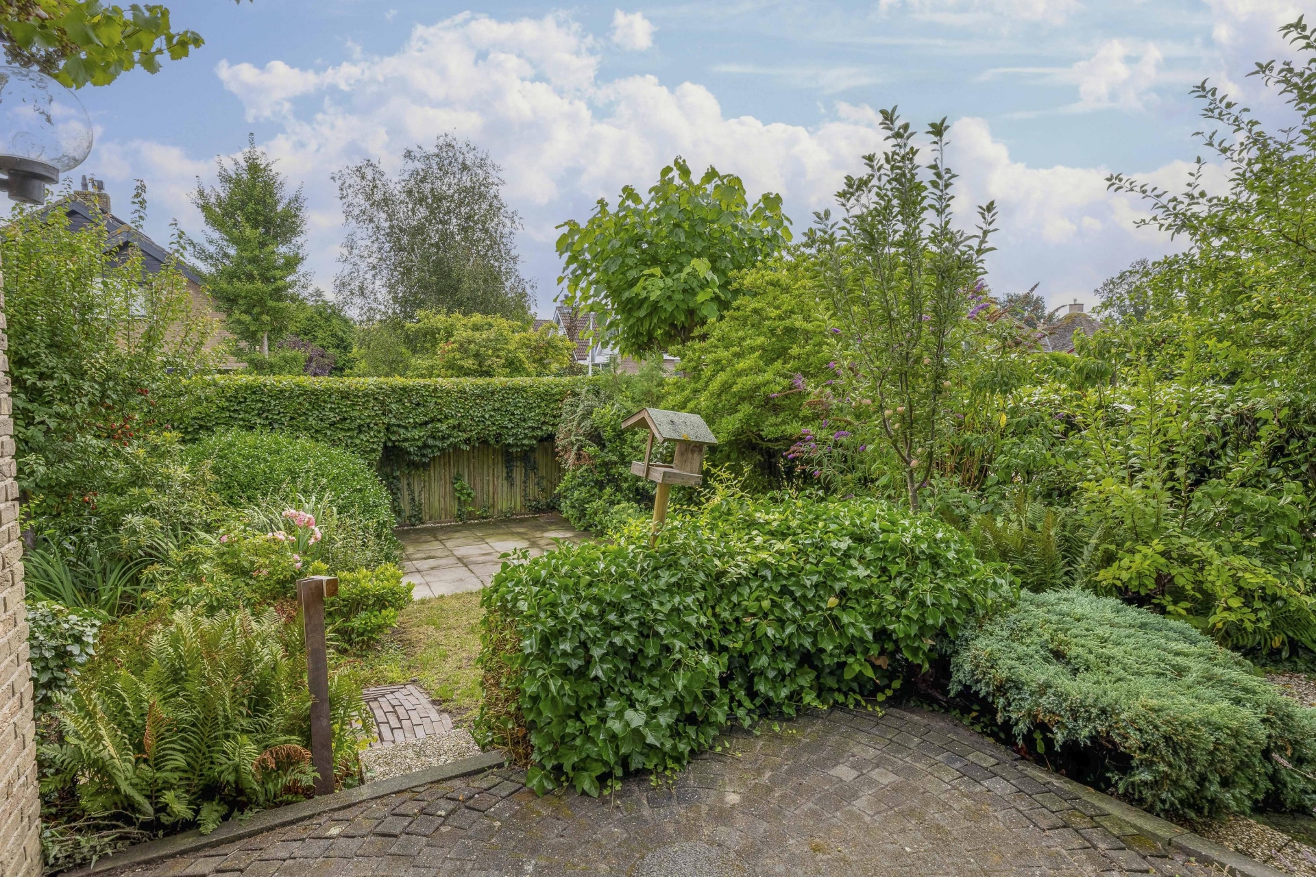 De woning beschikt over een tuin aan de voor-, zij- én achterzijde. Volgroeid groen, verzorgde borders en meerdere terrassen maken dit een heerlijke plek om te ontspannen en te genieten. Dankzij de gunstige ligging op het zuidoosten en zuidwesten is er altijd een plek in de zon of juist in de schaduw te vinden.
