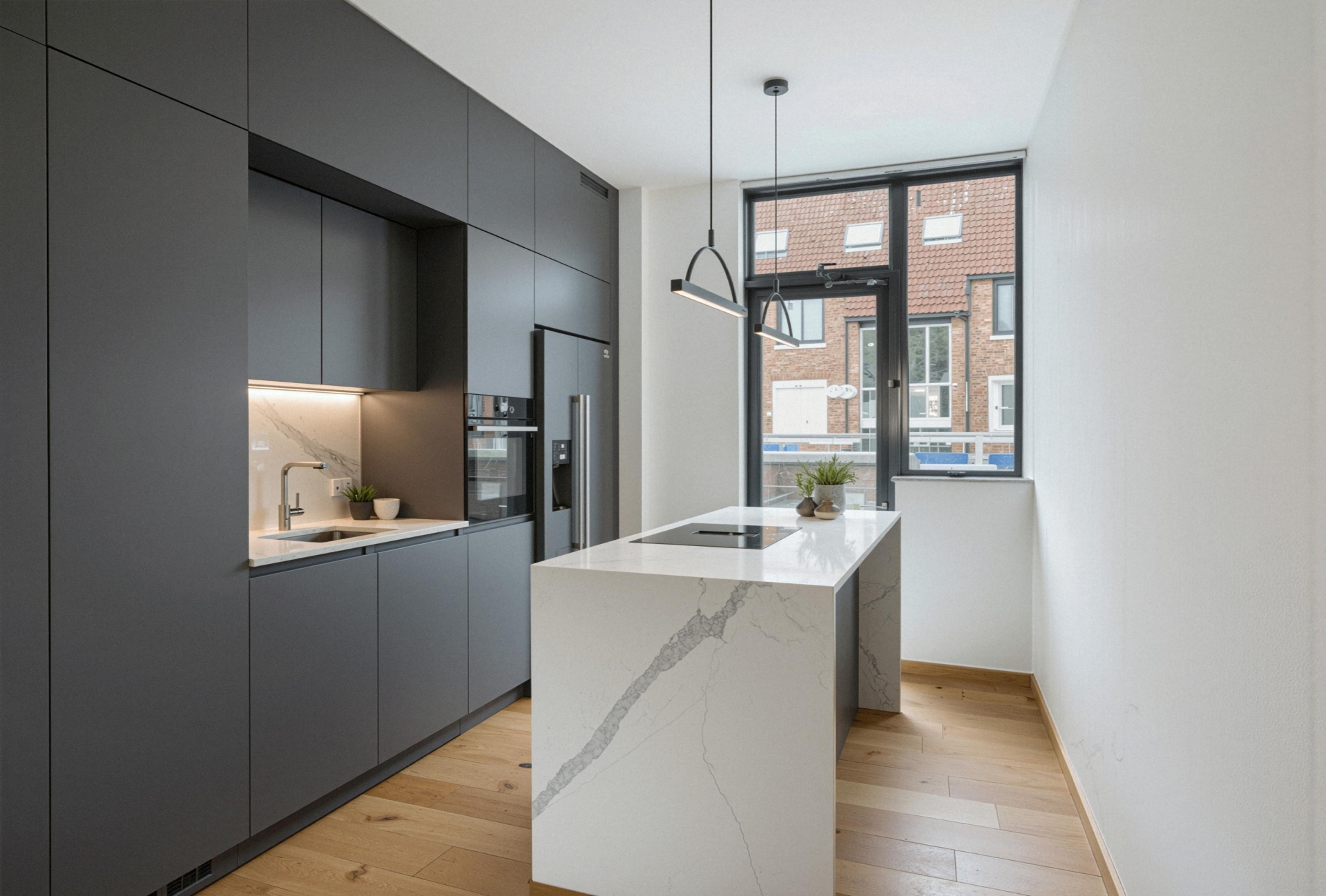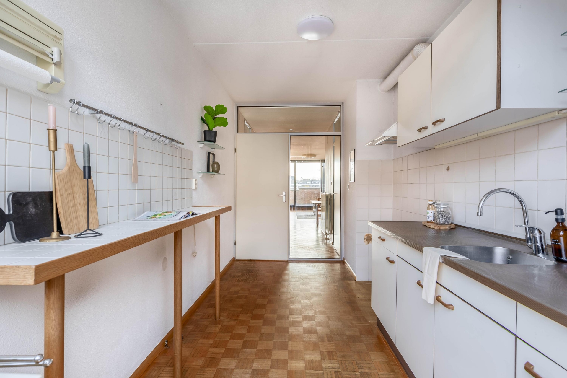 Wat direct opvalt zodra je binnenkomt, is de open, lichte sfeer in de woonkamer. De grote glazen schuifpui zorgt niet alleen voor veel daglicht, maar biedt ook direct toegang tot het aangename balkon op het zuidoosten. Hier geniet je van een vrij uitzicht. De woonkamer is royaal van formaat en biedt genoeg ruimte voor een gezellige zithoek én een ruime eettafel. Of je nu een avond op de bank ploft of vrienden uitnodigt voor een diner: deze ruimte past zich moeiteloos aan jouw plannen aan. Buiten zitten is hier een feestje. De balkons zijn groot en zonnig en liggen op het zuidoosten (achterzijde) en noordwesten (voorzijde), perfect voor een kop koffie in de ochtend of juist een borrel in de namiddagzon.