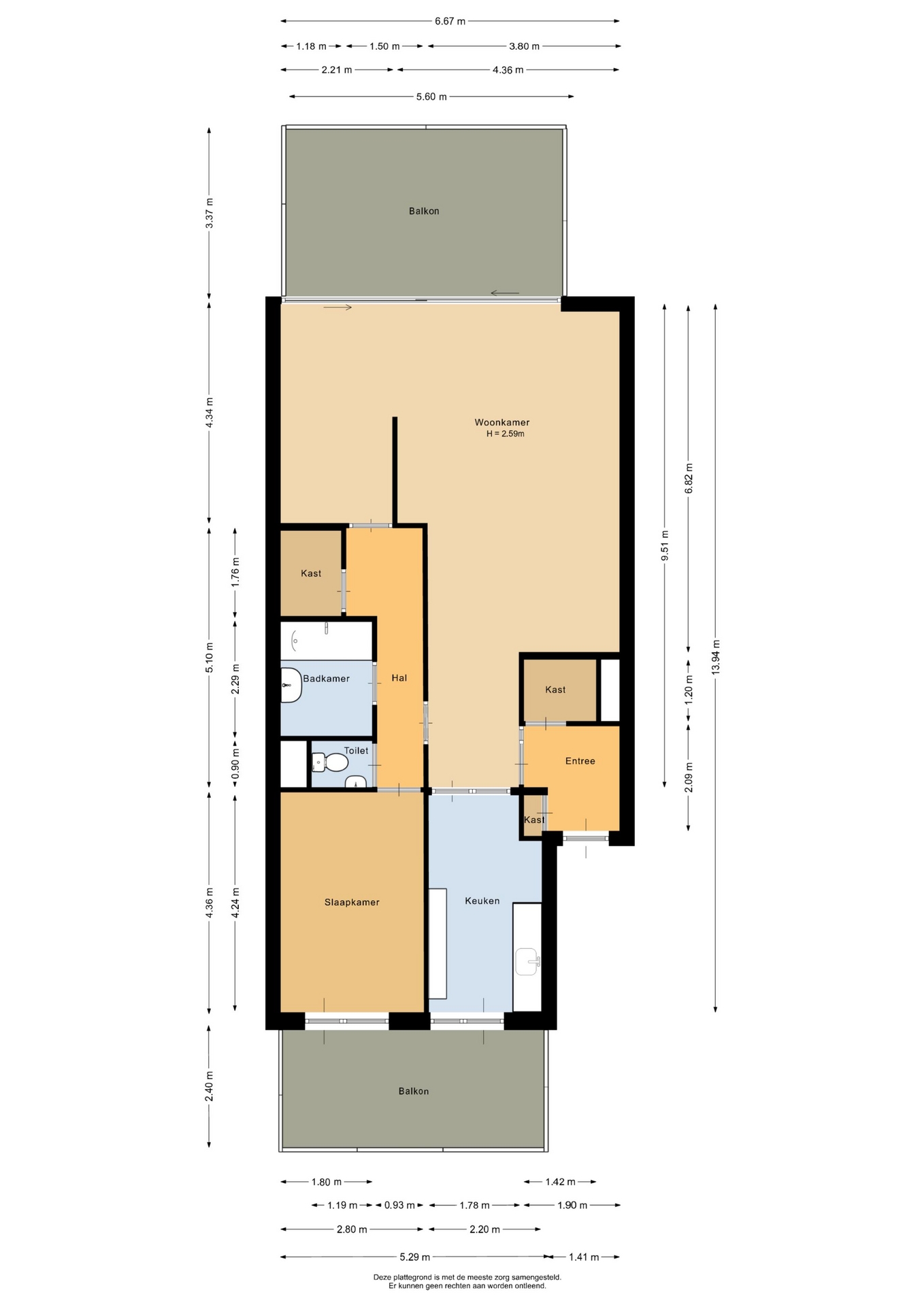 “Deze informatie is door ons met de nodige zorgvuldigheid samengesteld. Onzerzijds wordt echter geen enkele aansprakelijkheid aanvaard voor enige onvolledigheid, onjuistheid of anderszins, dan wel de gevolgen daarvan. Alle opgegeven maten en oppervlakten zijn indicatief.”