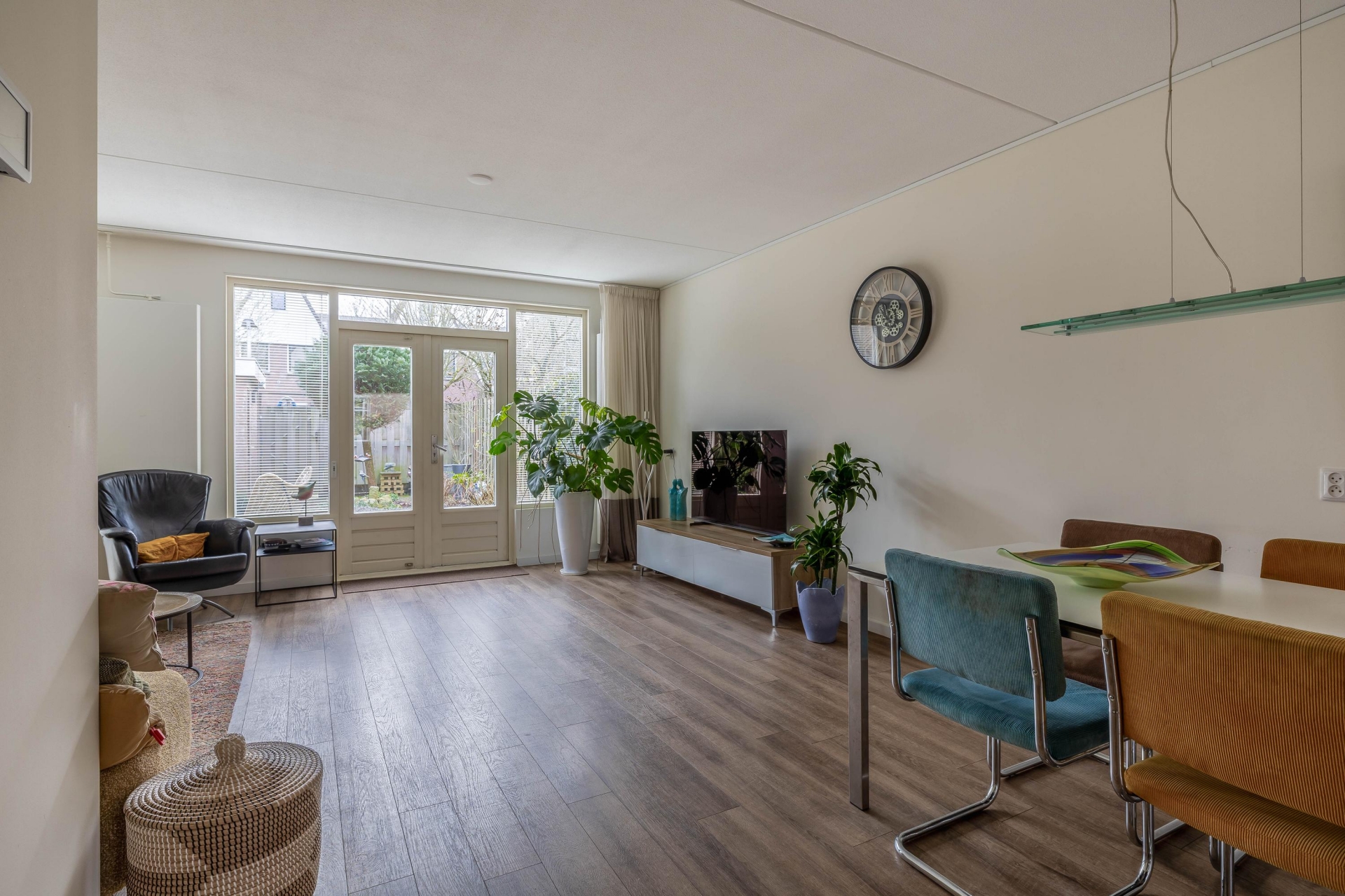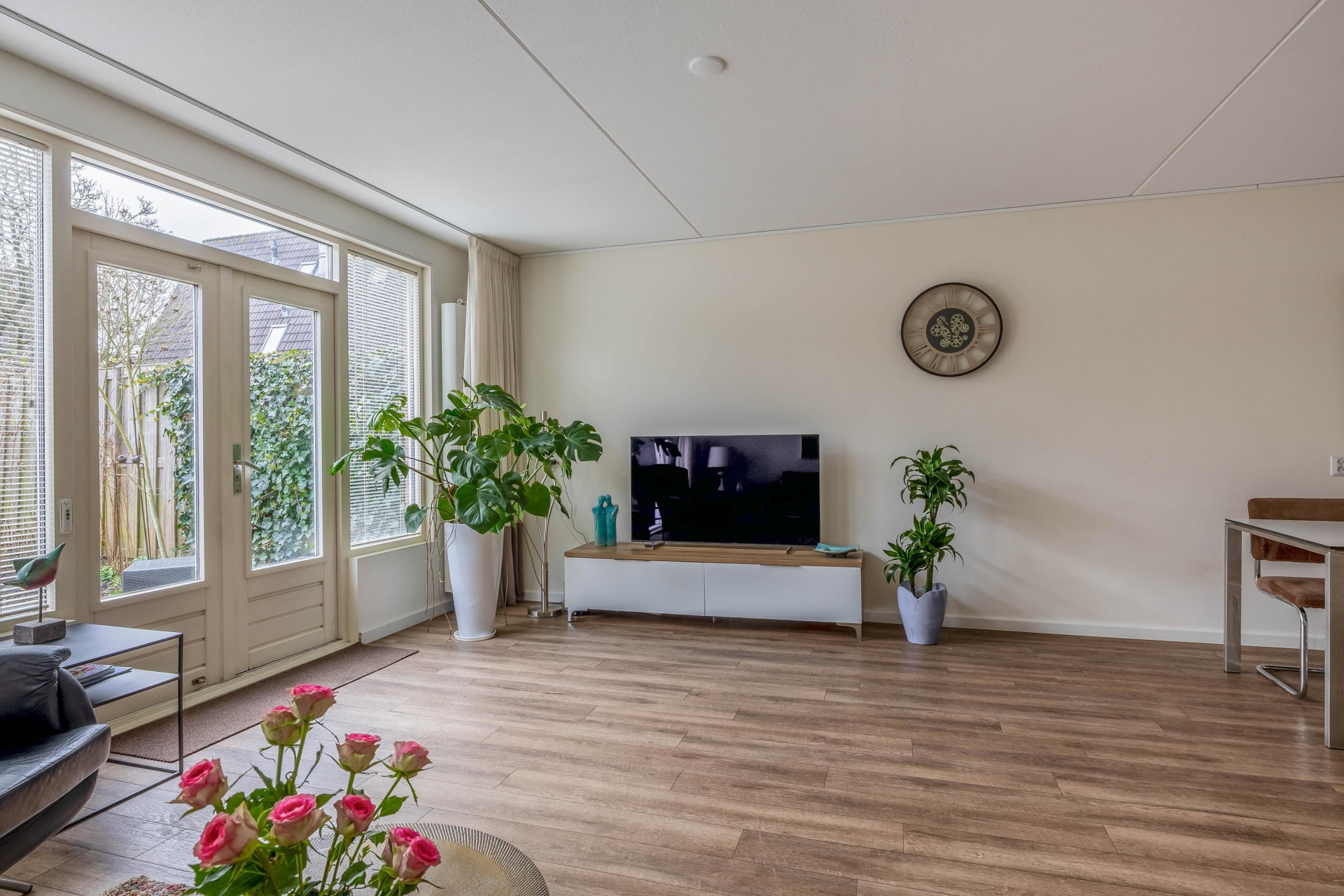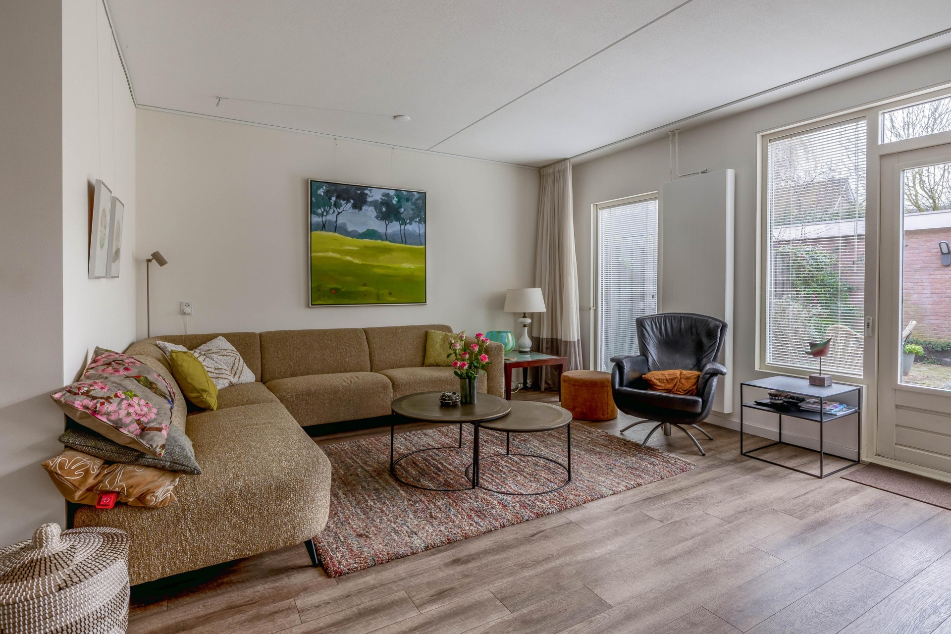 - Lichte, tuingerichte woonkamer met open keuken;