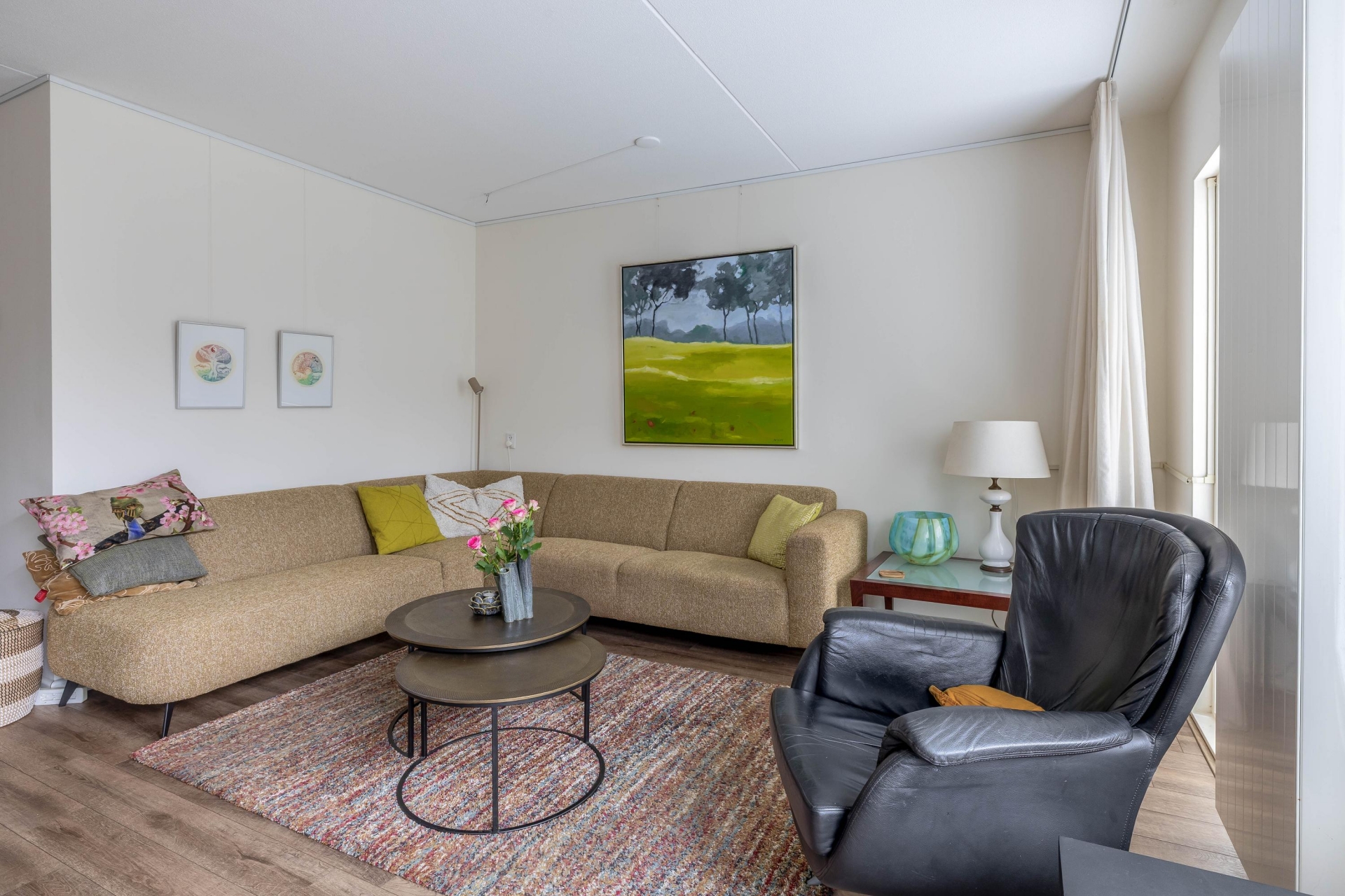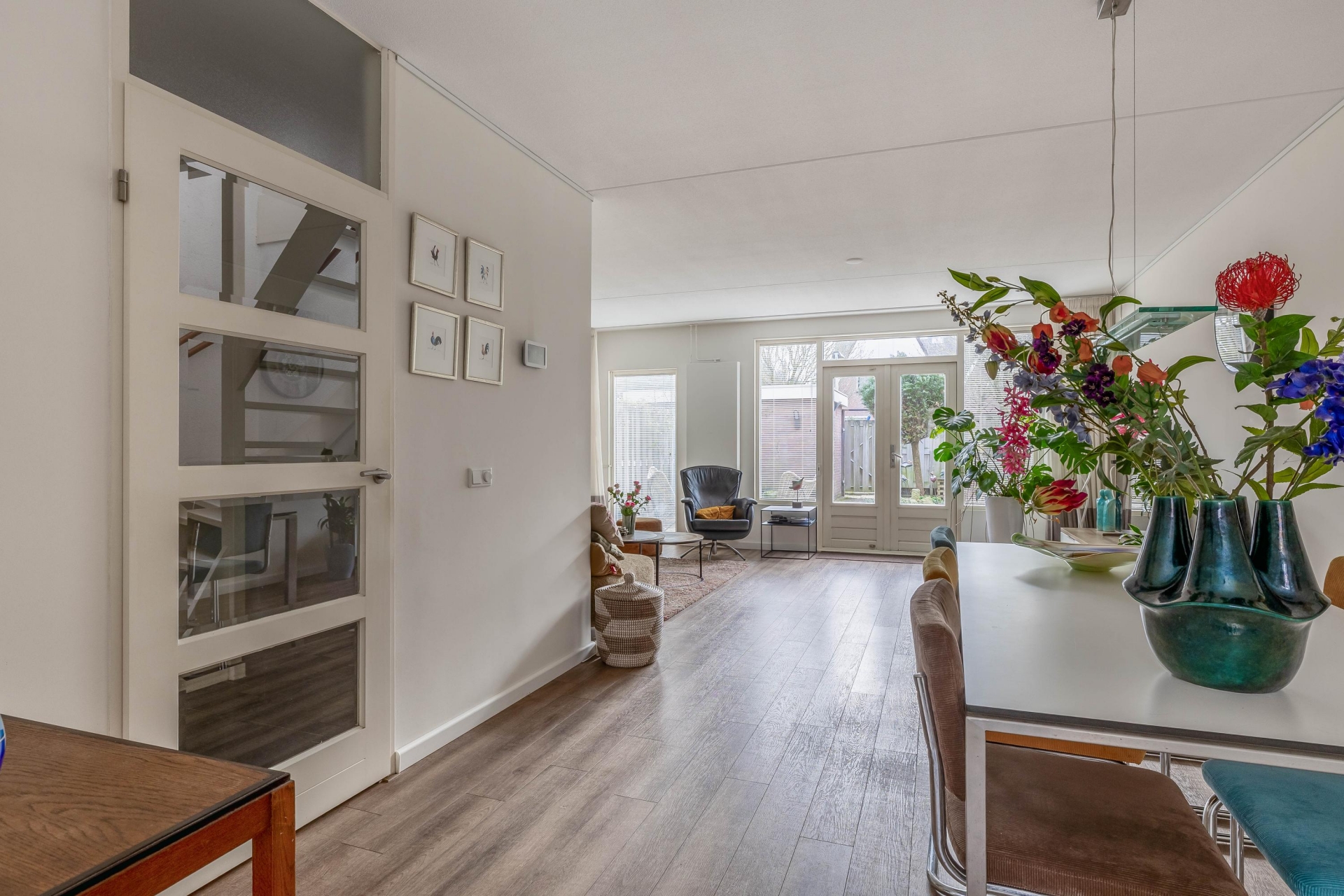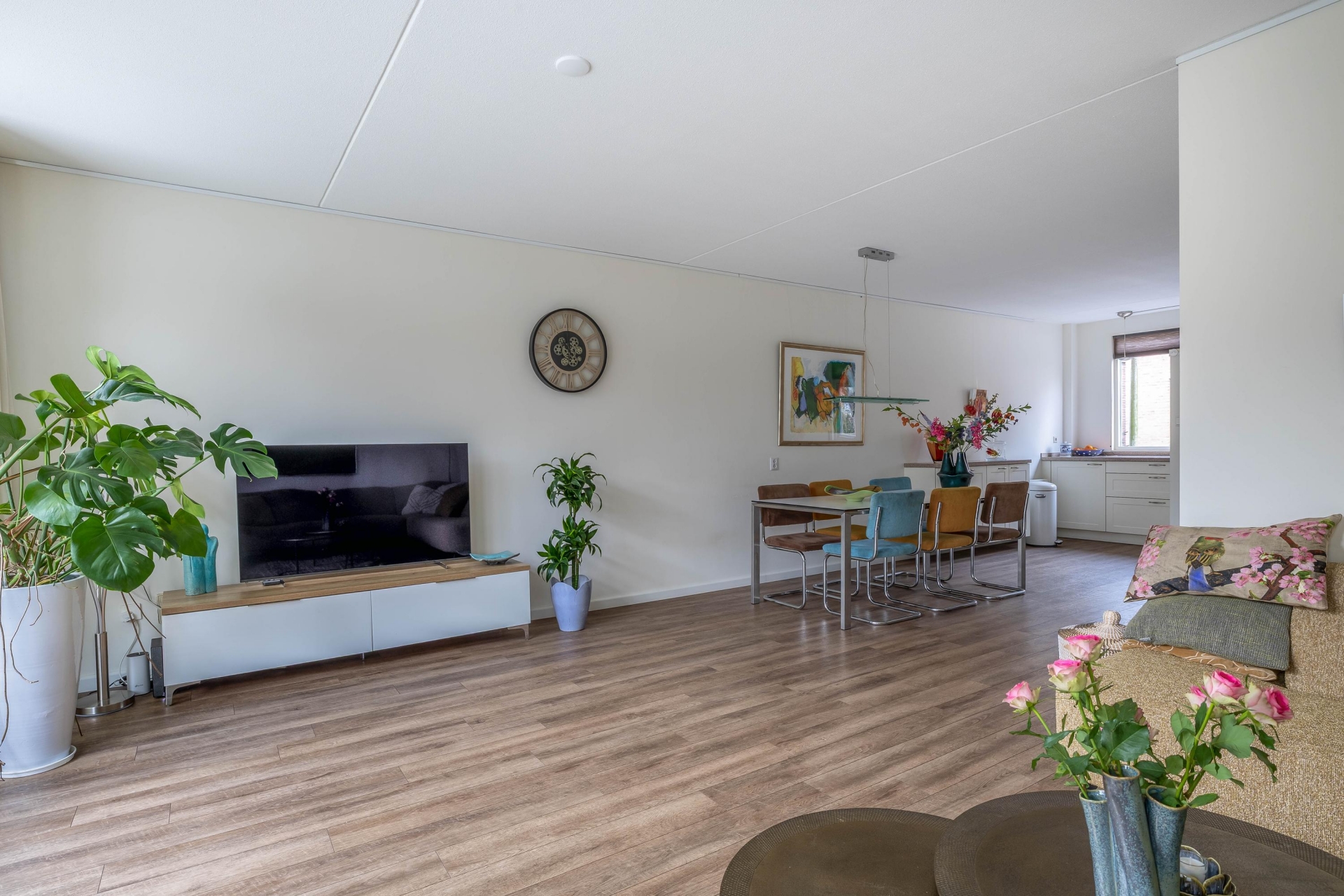- Lichte, tuingerichte woonkamer met open keuken;