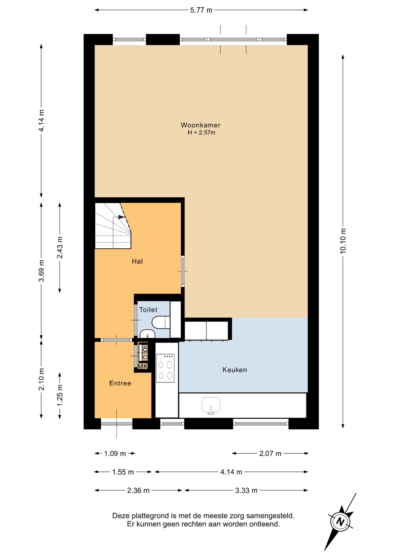 “Deze informatie is door ons met de nodige zorgvuldigheid samengesteld. Onzerzijds wordt echter geen enkele aansprakelijkheid aanvaard voor enige onvolledigheid, onjuistheid of anderszins, dan wel de gevolgen daarvan. Alle opgegeven maten en oppervlakten zijn indicatief.”