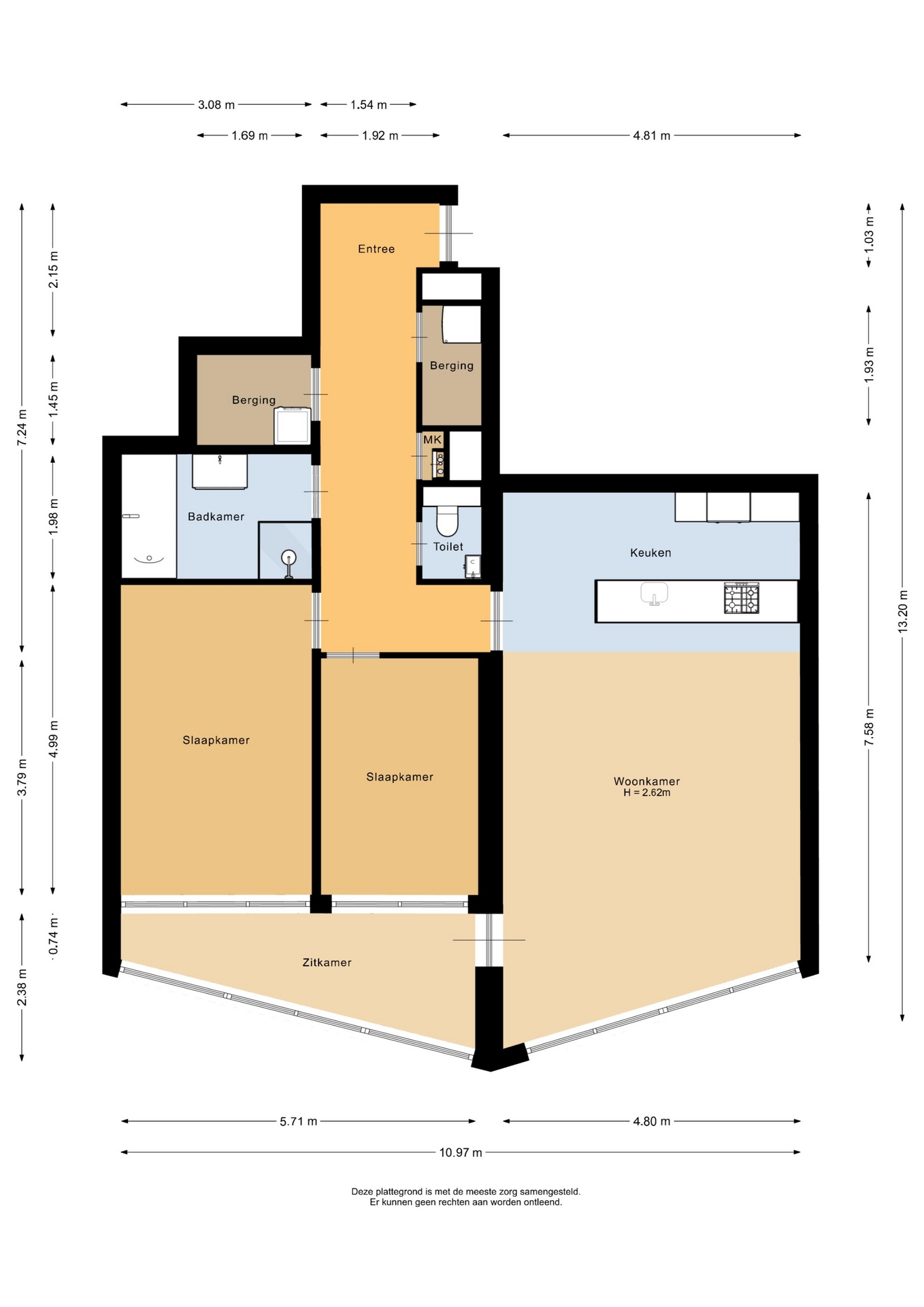“Deze informatie is door ons met de nodige zorgvuldigheid samengesteld. Onzerzijds wordt echter geen enkele aansprakelijkheid aanvaard voor enige onvolledigheid, onjuistheid of anderszins, dan wel de gevolgen daarvan. Alle opgegeven maten en oppervlakten zijn indicatief.”
