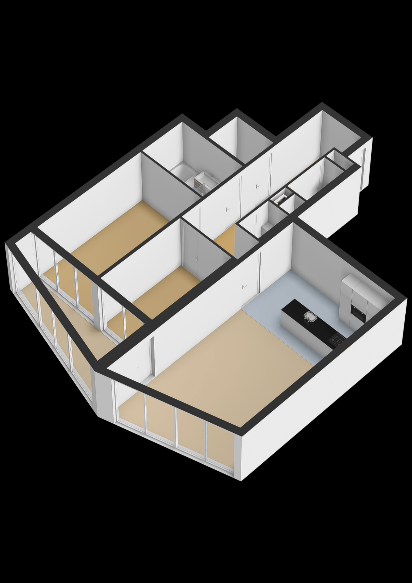 Het appartement telt in totaal vier kamers, waarvan twee zijn ingericht als volwaardige slaapkamers. De grootste slaapkamer is ruim opgezet en ligt aan de rustige kant van het appartement perfect als master bedroom. De tweede slaapkamer is ideaal als logeerkamer of werkkamer. Daarnaast is er nog een extra zitkamer/loggia die voor verschillende doeleinden gebruikt kan worden. De badkamer is netjes en comfortabel ingericht met een douche, wastafel en modern tegelwerk. Het toilet is separaat, wat prettig is voor bezoek.