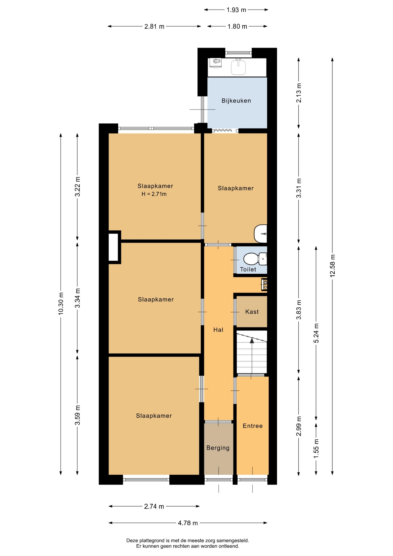 “Deze informatie is door ons met de nodige zorgvuldigheid samengesteld. Onzerzijds wordt echter geen enkele aansprakelijkheid aanvaard voor enige onvolledigheid, onjuistheid of anderszins, dan wel de gevolgen daarvan. Alle opgegeven maten en oppervlakten zijn indicatief.”