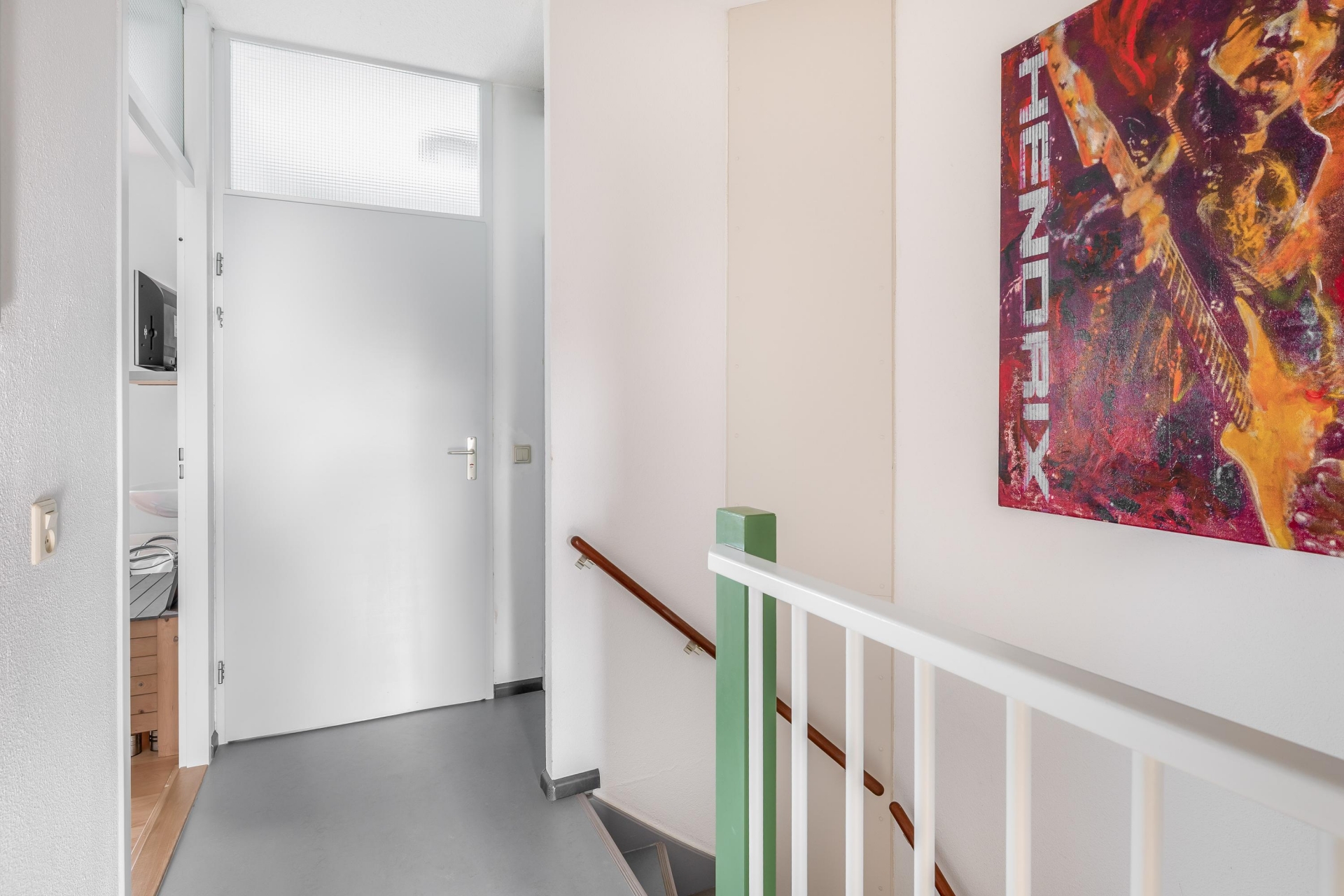 -Entree, hal (8m²) met nieuwe, uitgebreide meterkast, trapopgang en toiletruimte met staand closet en fontein.