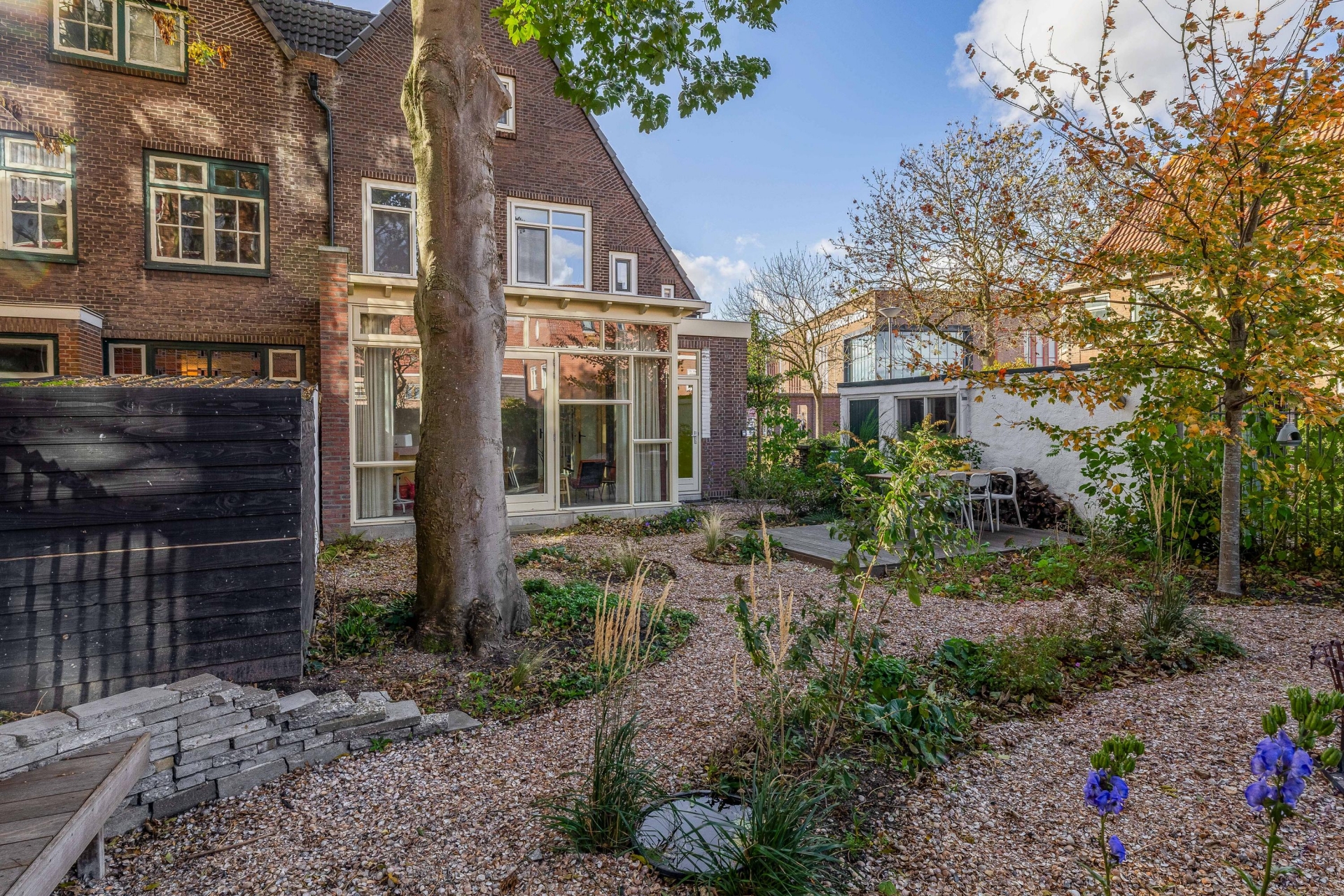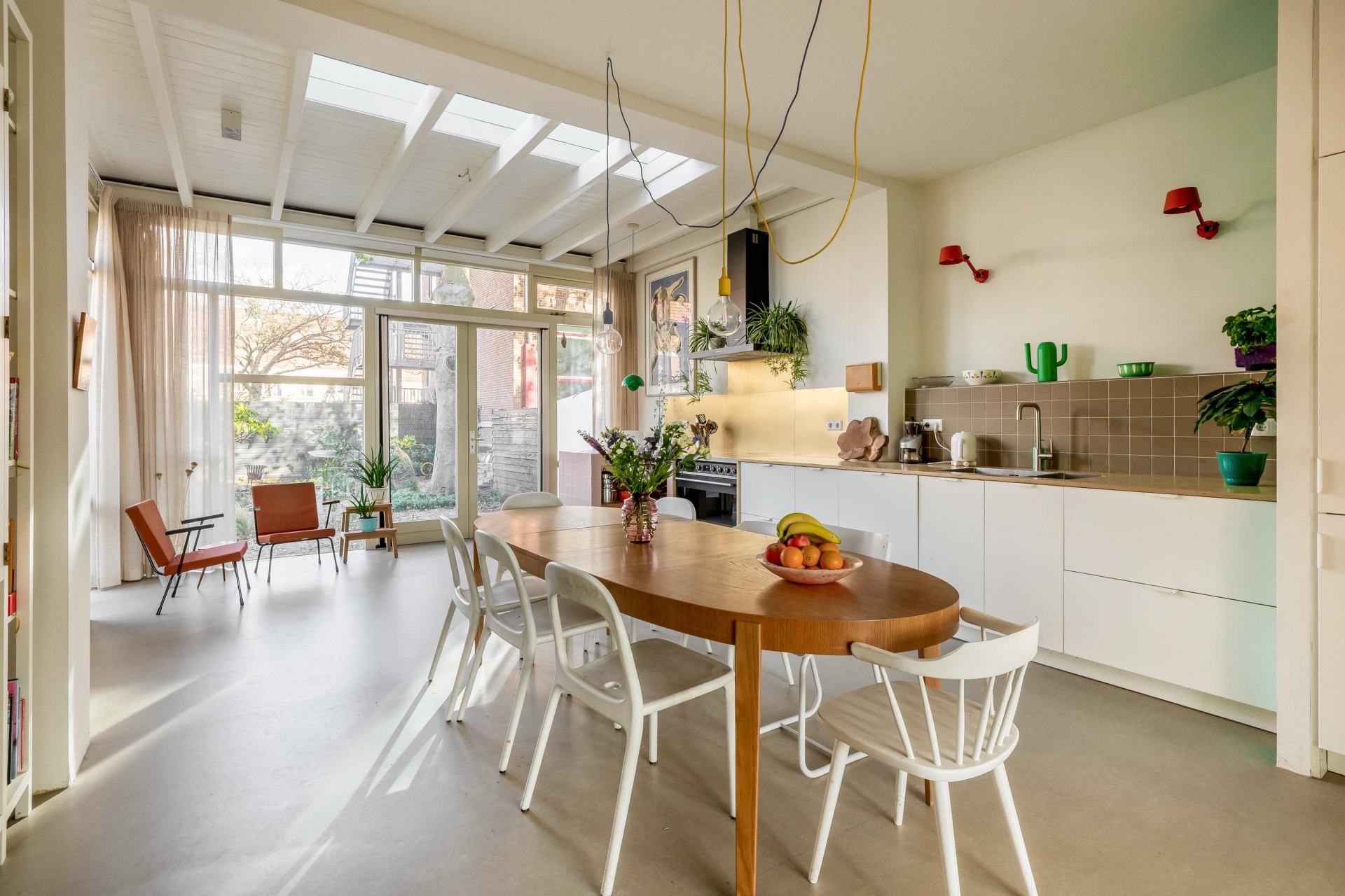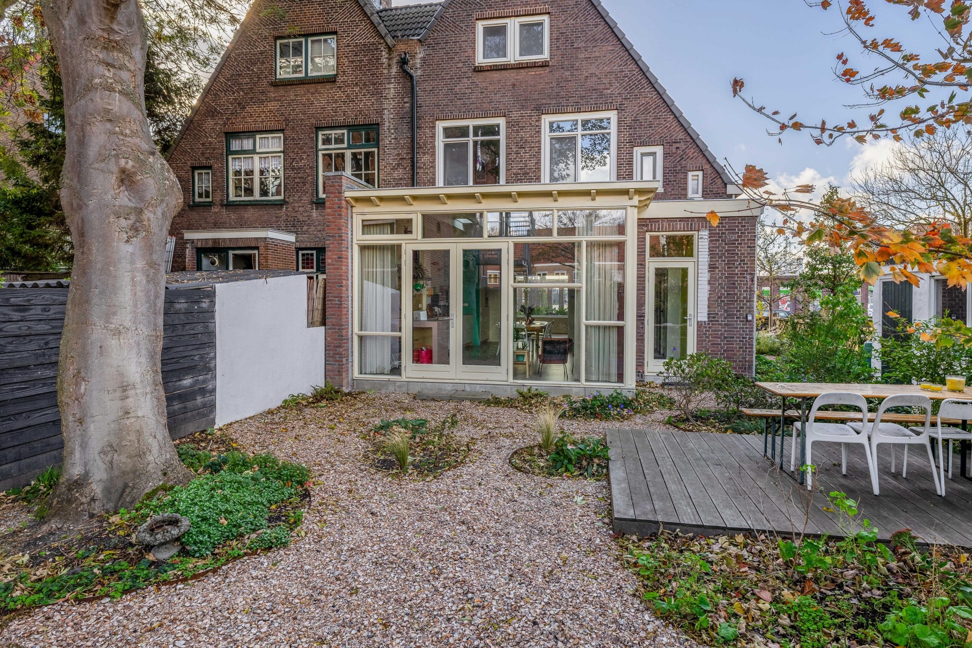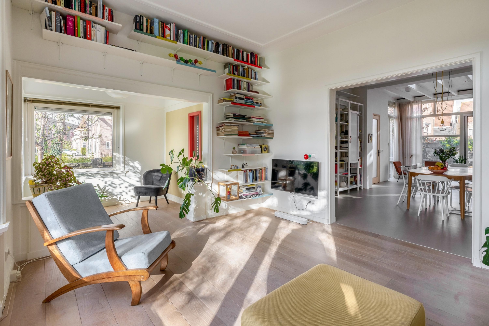 Deze sfeervolle 2-onder-1-kap woning uit 1915 combineert het beste van twee werelden: authentieke details zoals originele erkers en houten vloeren gaan hier hand in hand met modern wooncomfort. De huidige bewoners hebben in 2022 een stijlvolle uitbouw gerealiseerd met een fantastische woonkeuken als resultaat. Ook is toen een luxe hoekkeuken geplaatst en zijn er extra leefmeters gecreëerd met veel lichtinval. De houten vloer in de en-suite woonkamer, de hoge plafonds en de vele ramen zorgen voor een warme, open sfeer.
